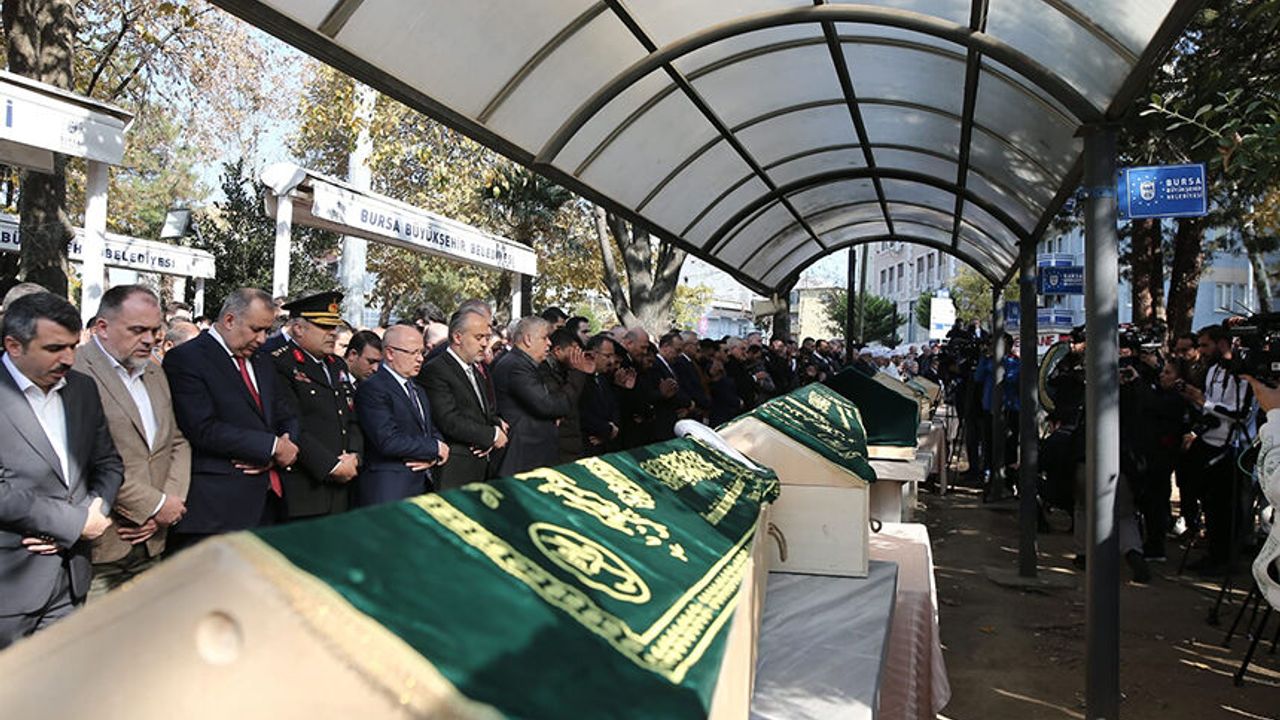 Bursa'da dün gece yaşanan yangın faciasında hayatını kaybeden 8'i çocuk 9 kişi İçişleri Bakanı Süleyman Soylu'nun da katıldığı cenaze namazanın ardından son yolculuğuna uğurlandı. Suriyeli ailenin yakınları yanyana dizilen tabutların başında gözyaşı döktüler. İçişleri Bakanı Süleyman Soylu, yangında eşi ve 6 çocuğunu kaybeden kağıt toplayıcısı Hüseyin El Cesim'e sarılarak teselli etmeye çalıştı. Dün gece merkez Yıldırım İlçesi Değirmenönü Mahallesi'nde sobadan çıktığı ifade edilen yangında 30 yaşındaki Amine El Cesim, yaşları 1 ile 11 arasında değişen 6 çocuğu ve 2 yeğeninin cenazeleri Adli Tıp Kurumu'nda otopsi işlemlerinin ardından Mihraplı Camisi'ne getirildi. Tabutlar yan yana konulduğunda El Cesim ailesinin fertleri gözyaşlarına boğuldular. Yakınları tabuta sarılınca ortaya hüzünlü görüntüler çıktı. Ankara'dan helikopterle Bursa'ya gelen İçişleri Bakanı Süleyman Soylu da Mihraplı Camisi'ndeki cenaze törenine katıldı. Bakan Soylu, kağıt toplayarak geçimini sağlayan 32 yaşındaki baba Hüseyin El Cesim'e sarılarak teselli etmeye çalıştı. Cenaze törenine Bakan Soylu ile birlikte Bursa Valisi Yakup Canbolat, Bursa Büyükşehir Belediye Başkanı Alinur Aktaş, Yıldırım Belediye Başkanı Oktay Yılmaz, Bursa Cumhuriyet Başsavcısı Ramazan Solmaz, Bursa Emniyet Müdürü Tacettin Aslan da katıldı. Öğle namazına müteakip kılınan cenaze namazlarının ardından El Cesim ailesinin fertlerinin naaşları toprağa verilmek üzere Erdoğanköy Şehir Mezarlığı'na götürüldü. Olayda hayatını kaybeden Suriyeli 8 çocuğun olaydan bir süre önce mutlu günlerinde çektirdikleri fotoğraflar da görenlerin yüreğini burktu. (İHA)