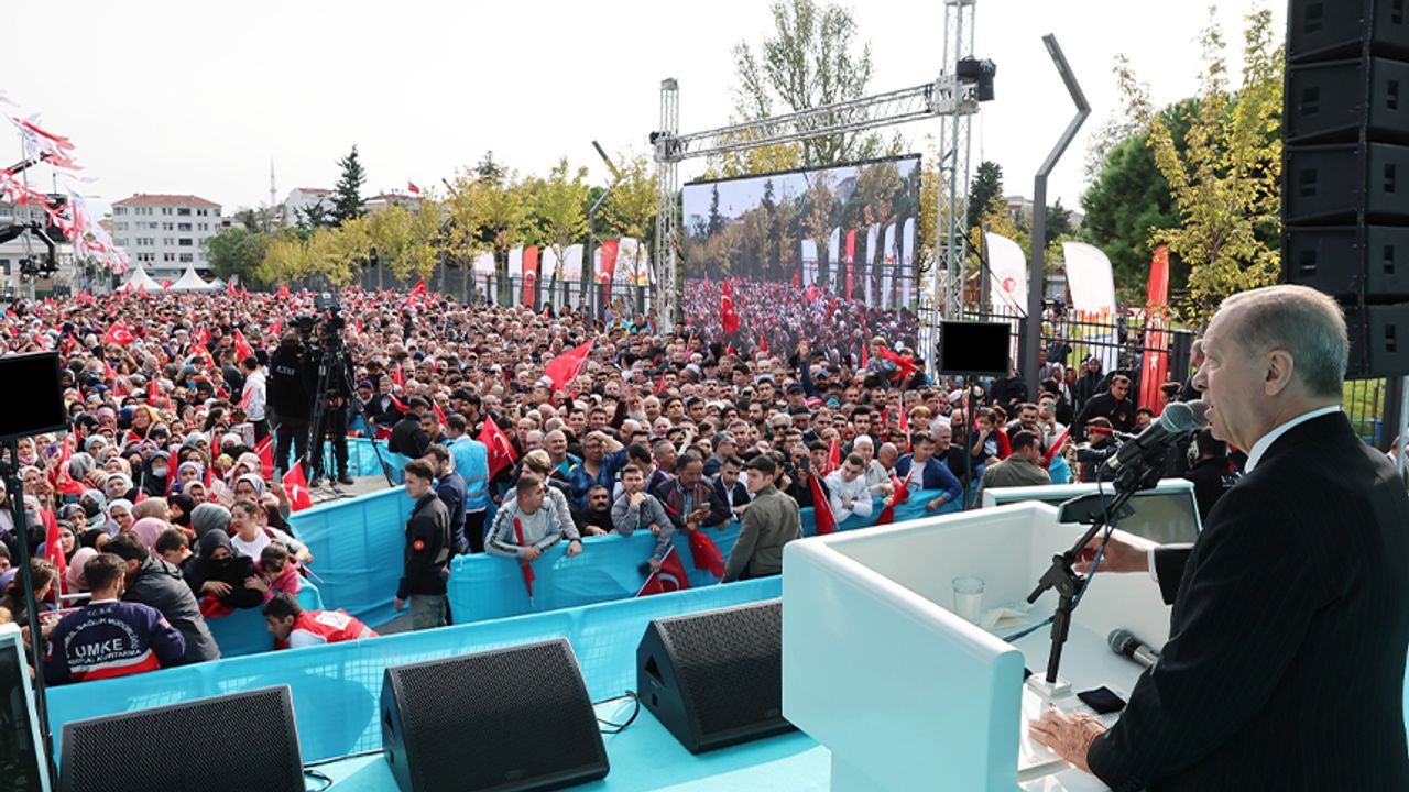 Şimdi de Türkiye yüzyılı ile tüm bu yatırımları taçlandırıyoruz. Ülkemizin dünkü meselelerini hatırlayın; güvenlik kaygıları vardı, terör örgütleri cirit atıyordu. Bu tehditlerin hepsini bitirdik mi, bitirdik. İnsanlarımızın eğitimden sağlığa, ulaşımdan spora her alanda temel hizmetlere erişme sıkıntısı vardı. Yaptığımız eserlerle bunları da çözdük mü, çözdük. İnsanların ülkesinin büyüklüğünü, gücünü görme hayali vardı. Bunu da sağladık mı” diye konuştu.