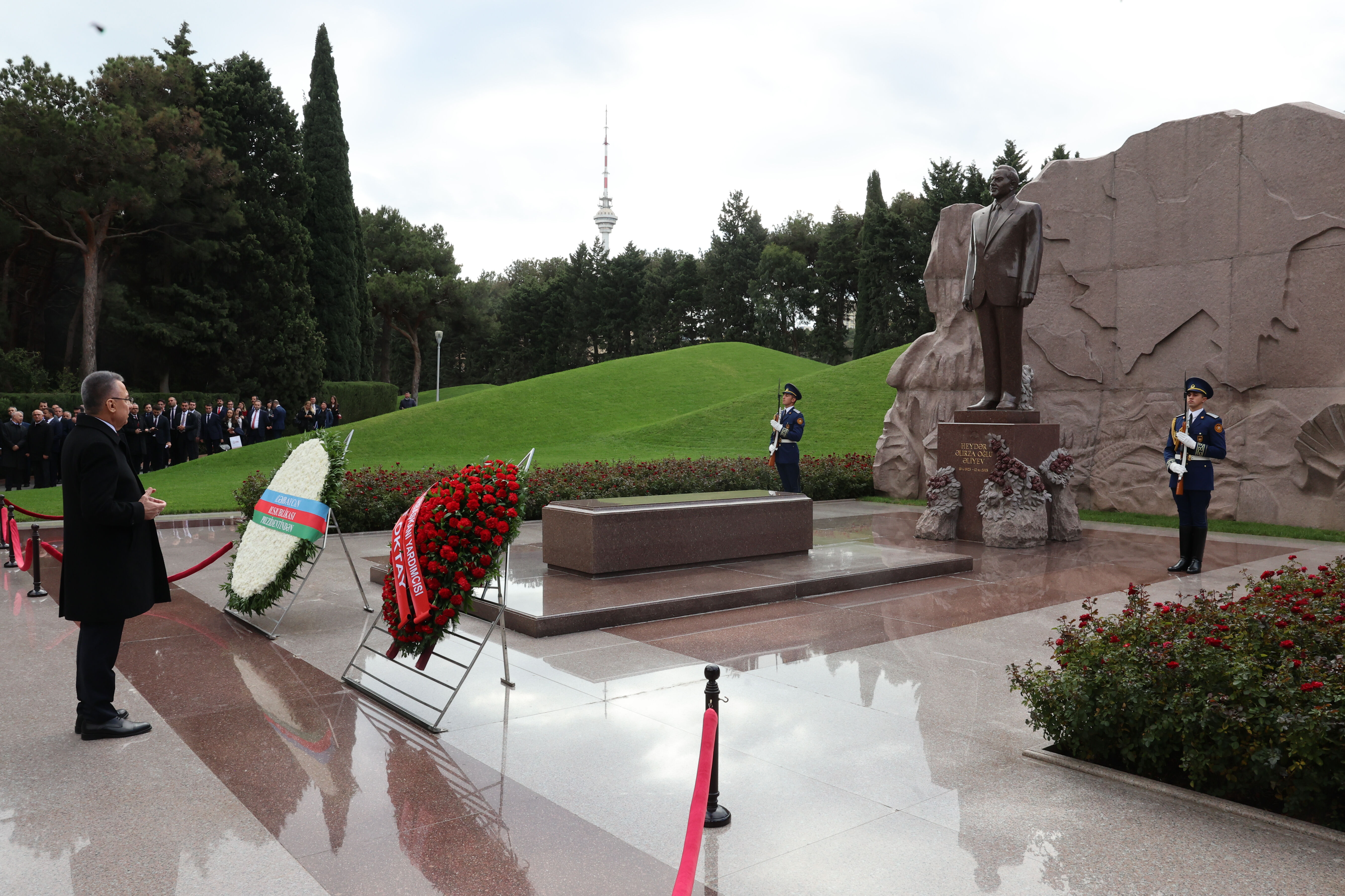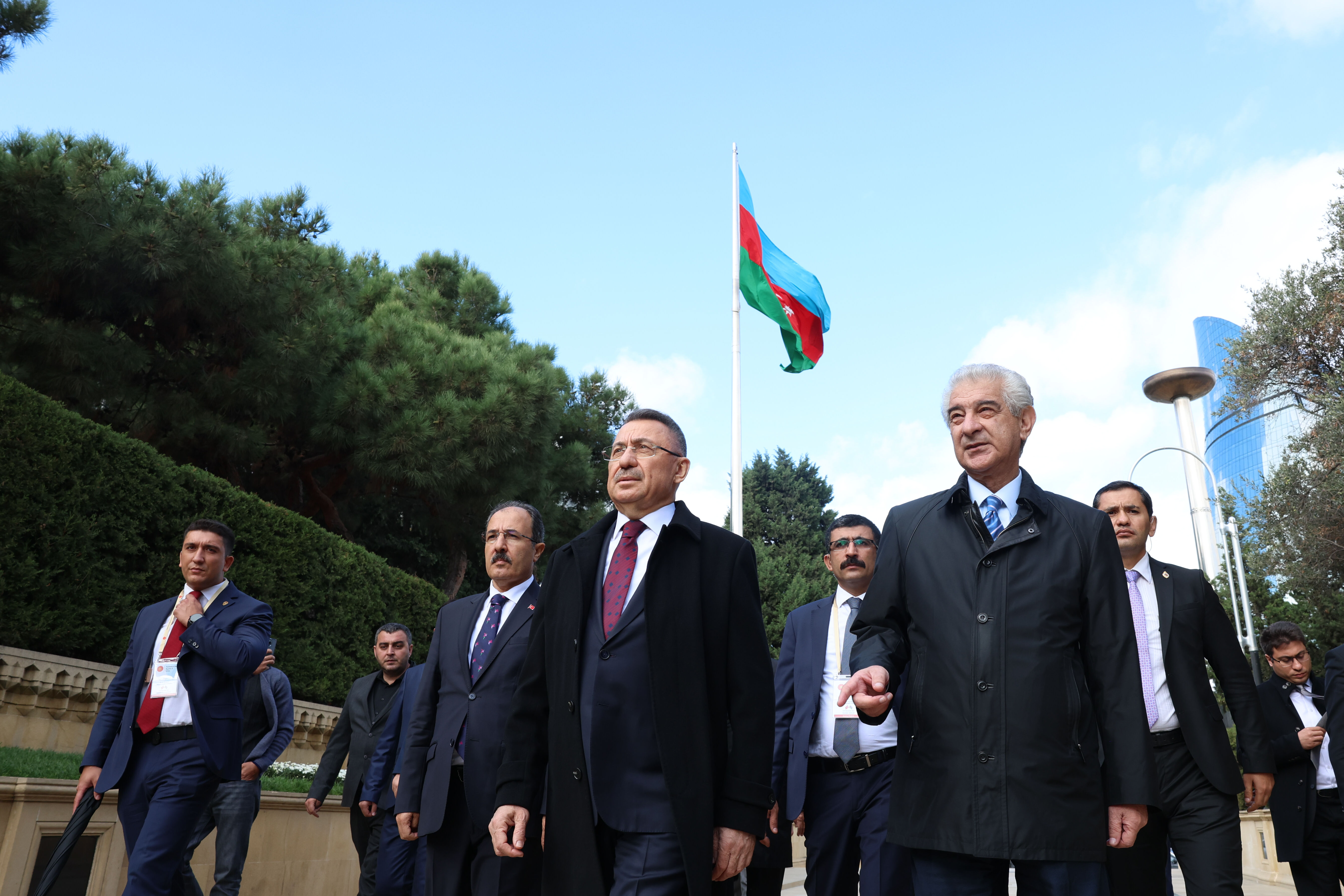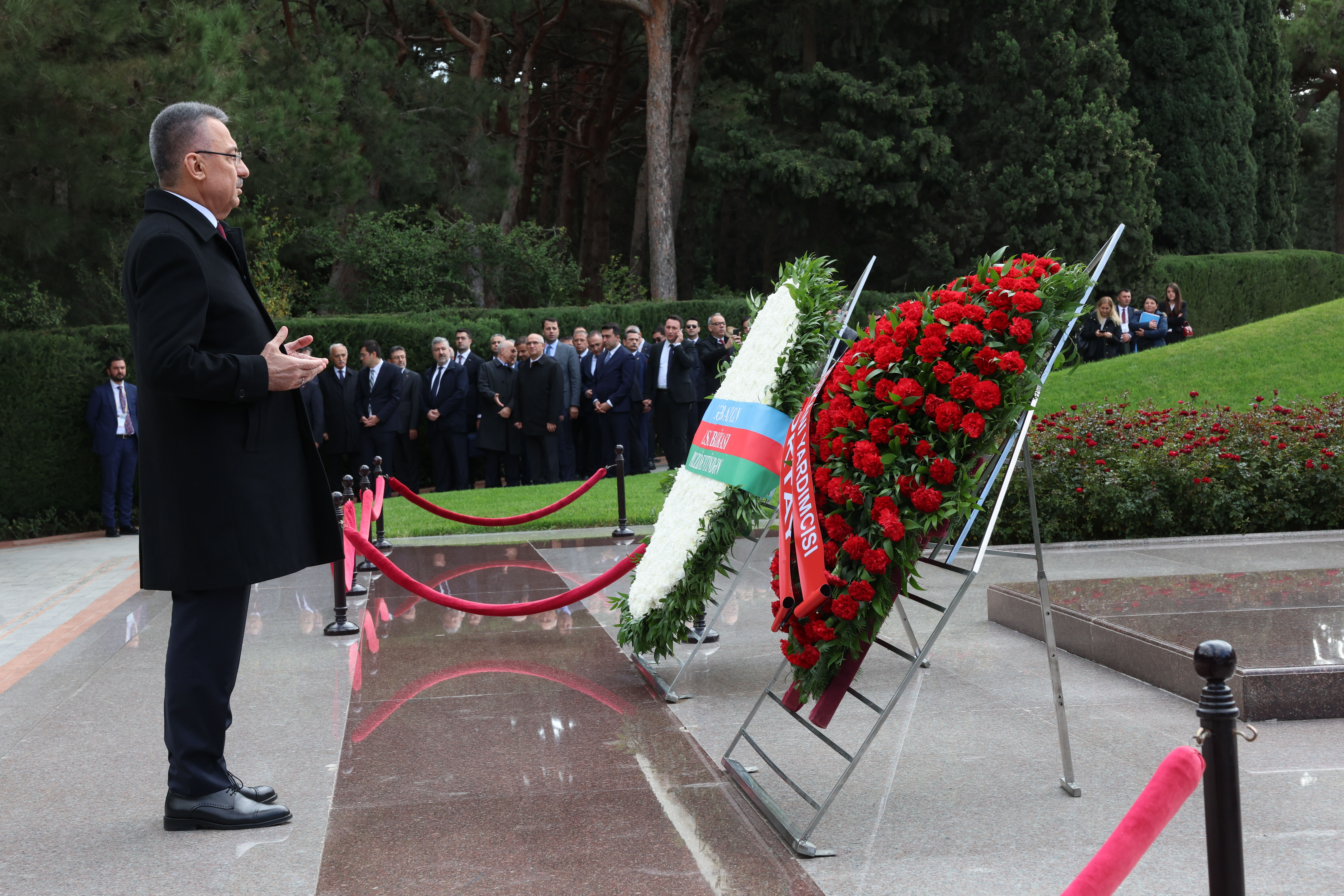 Cumhurbaşkanı Yardımcısı Oktay, görüşmenin ardından, Azerbaycan Başbakan Yardımcısı Ali Ahmedov ve beraberindeki heyetle Azerbaycan'ın milli lideri Haydar Aliyev'in kabrini ziyaret ederek çelenk bıraktı.