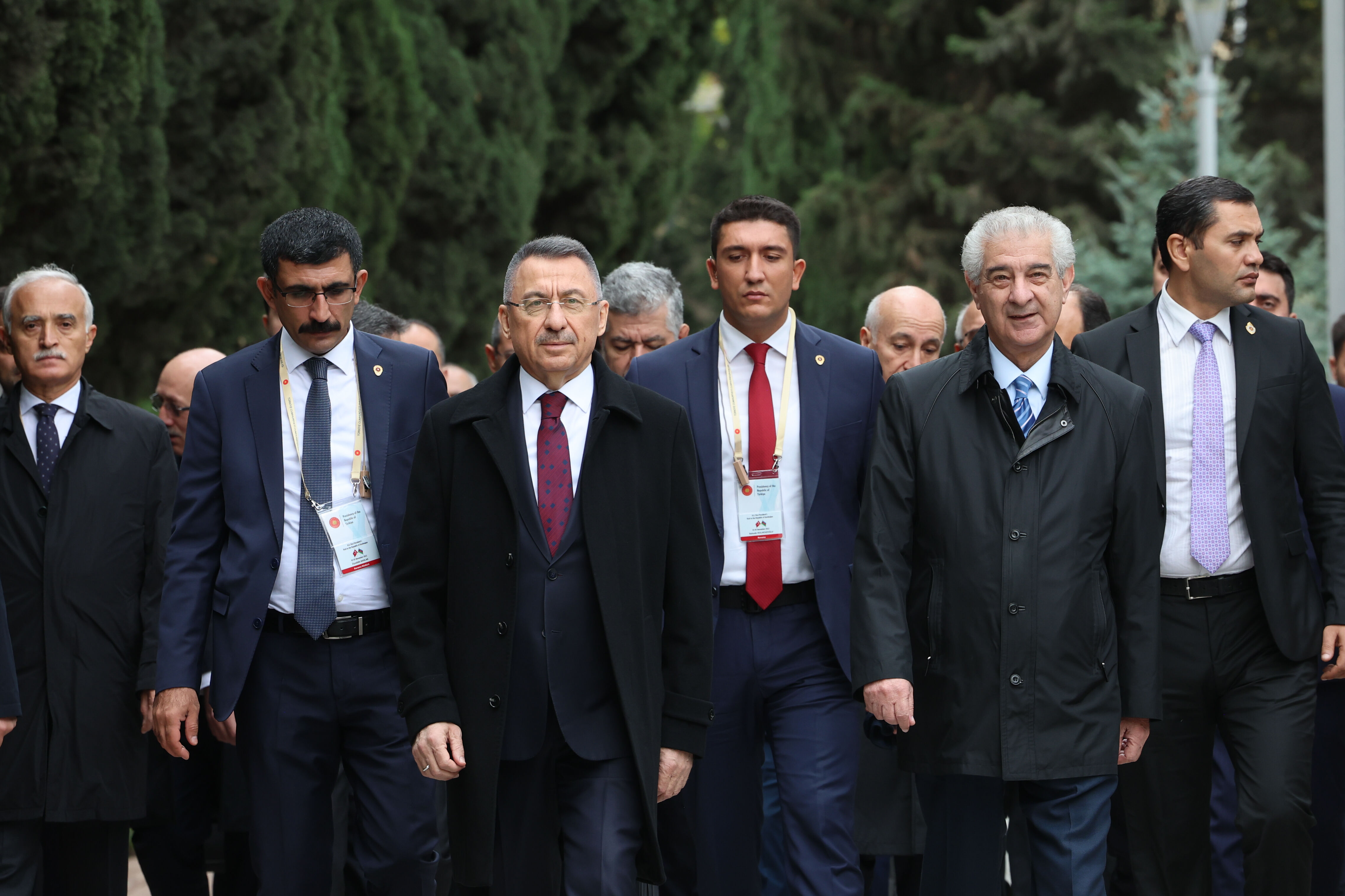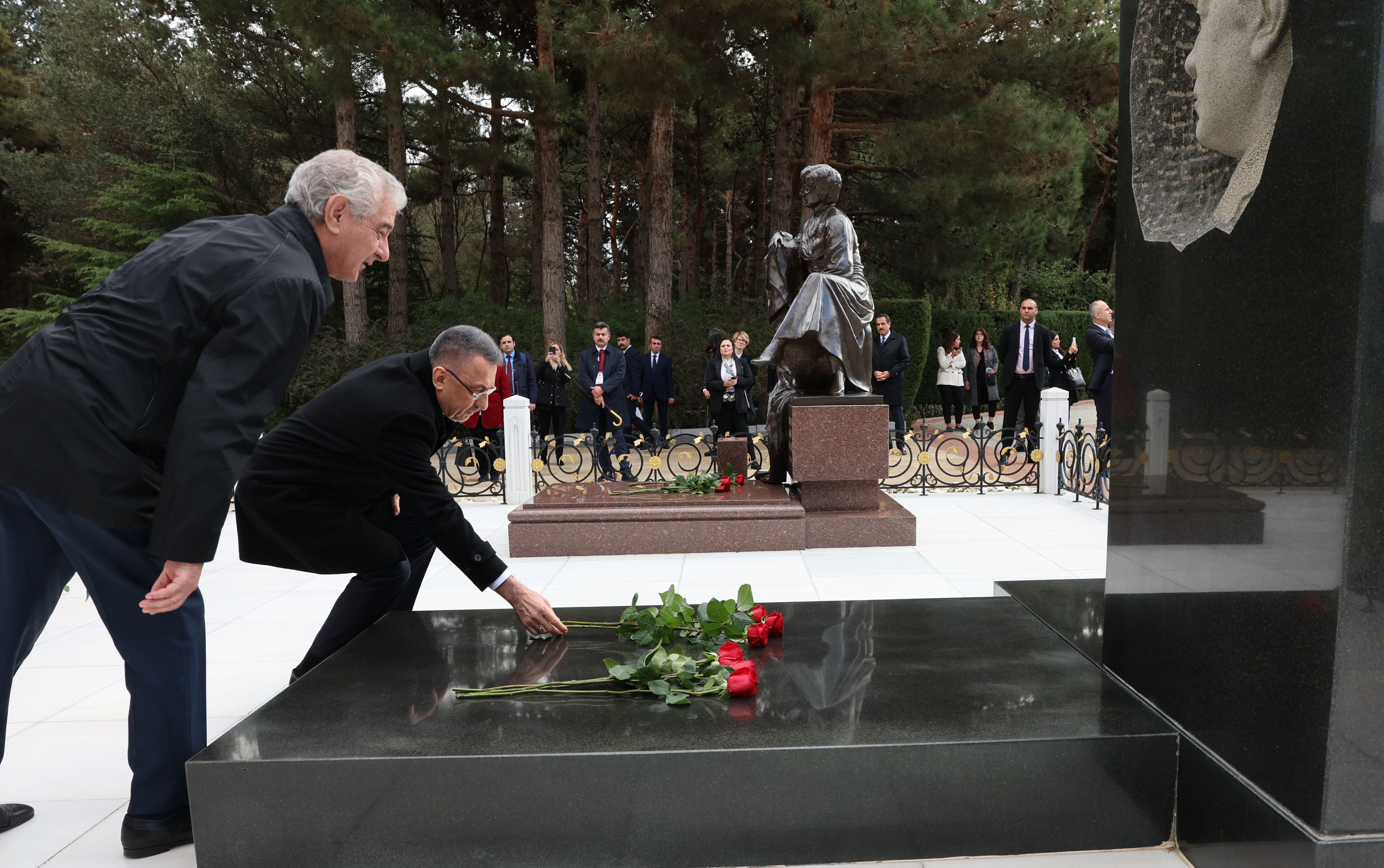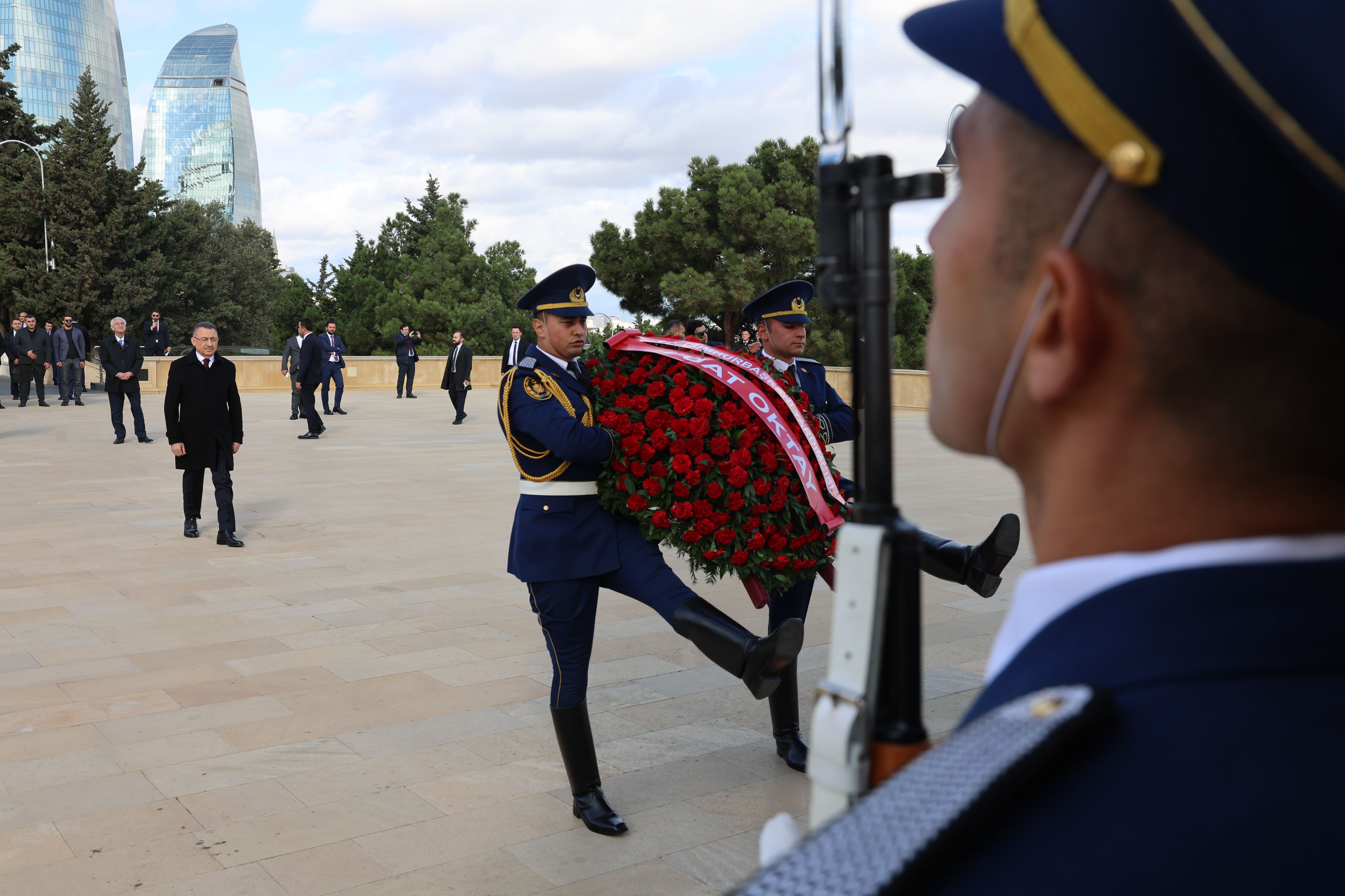 Cumhurbaşkanı Yardımcısı Oktay, görüşmenin ardından, Azerbaycan Başbakan Yardımcısı Ali Ahmedov ve beraberindeki heyetle Azerbaycan'ın milli lideri Haydar Aliyev'in kabrini ziyaret ederek çelenk bıraktı.