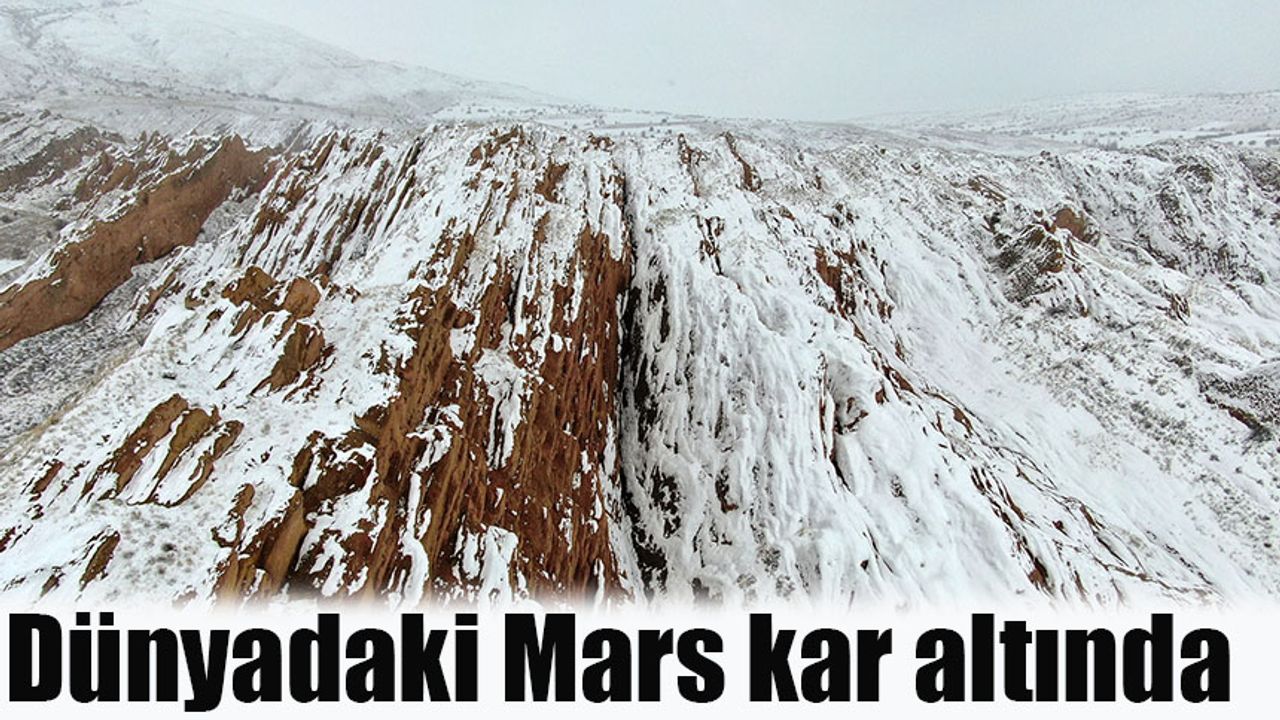 Sivas’ta etkili olan yoğun kar yağışı kenti beyaza bürüdü. Kent merkezine 15 kilometre uzaklıkta bulunan ve Dünyadaki mars olarak adlandırılan Eğribucak-Emirhan kayalıkları da karla örtündü. Yaz aylarında kızıl rengiyle büyüleyen kayalıklar şimdi ise beyaz görüntüsüyle de dikkat çekiyor. Ziyaretçilerine eşsiz bir manzara sunan Eğribucak-Emirhan kayalıkları kartpostallık görüntüler oluşturdu. Ortaya çıkan bu kış güzelliğinin tadını çıkartanlar fotoğraf çektirmeyi de ihmal etmedi.