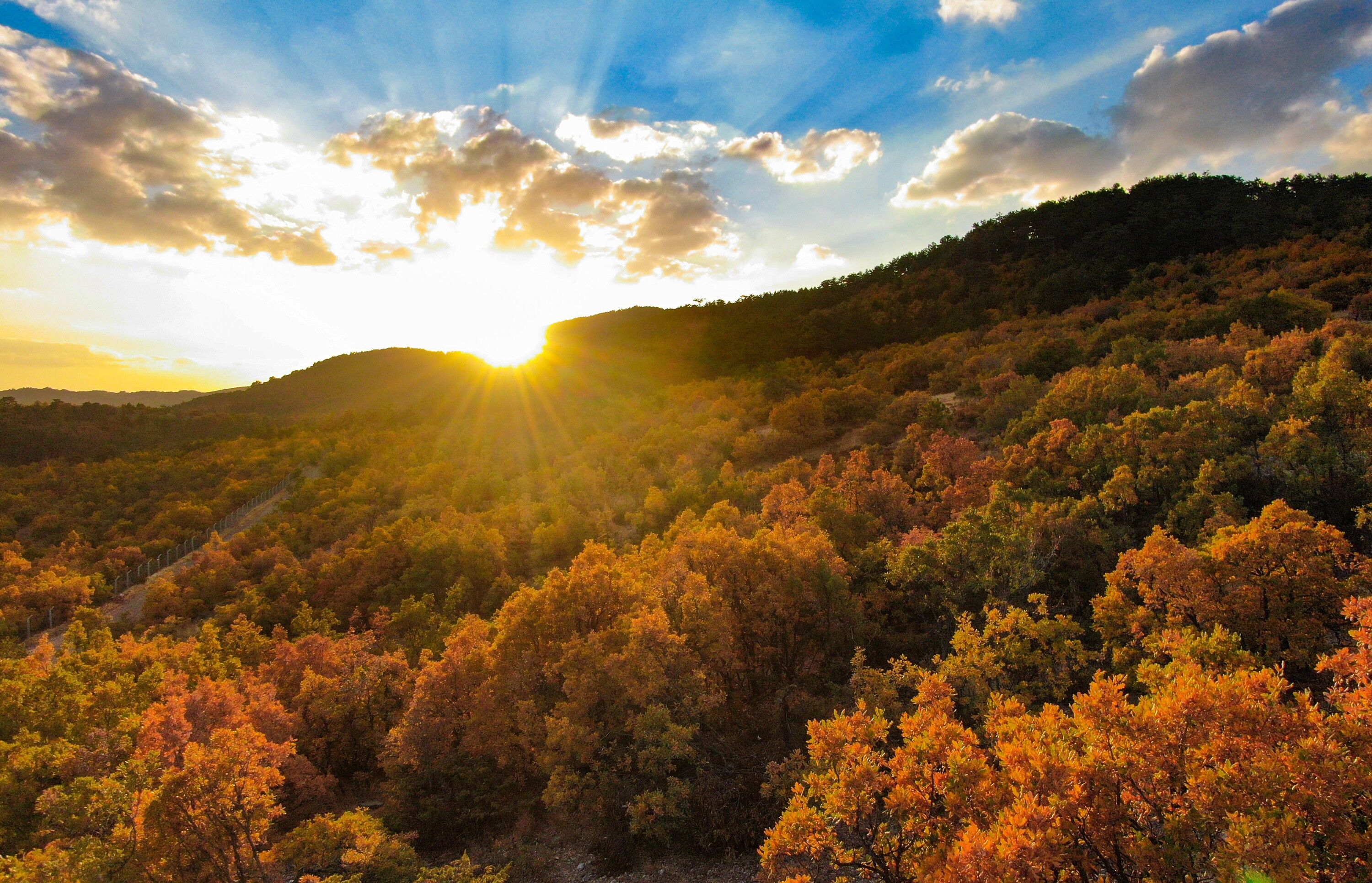 Rengarenk ağaçlar, yolda ilerleyen sürücülere güzel manzara izleme keyfi sunuyor. Dağlarındaki eşsiz sonbahar renkleri havadan dron ile görüntülendi.
