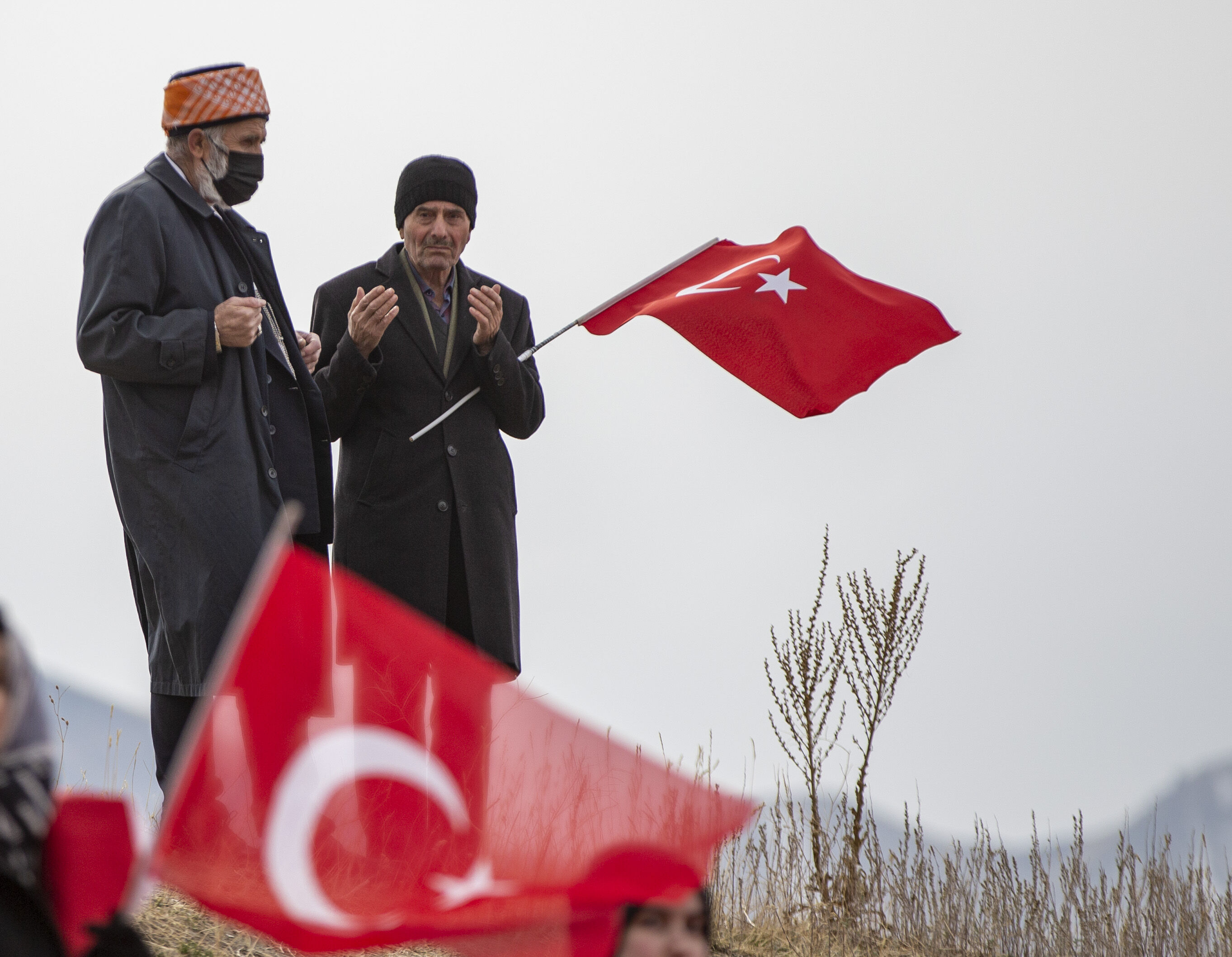 "93 Harbi" olarak da bilinen savaşın en çetin muharebelerinin yaşandığı ve ellerindeki baltalarla savaş meydanına koşan halkın desteğiyle düşmanın bozguna uğratıldığı tabyalardaki destansı zaferin anma etkinliğinde, saygı duruşu ve İstiklal Marşı'nın ardından Kur'an-ı Kerim okundu, dua edildi.