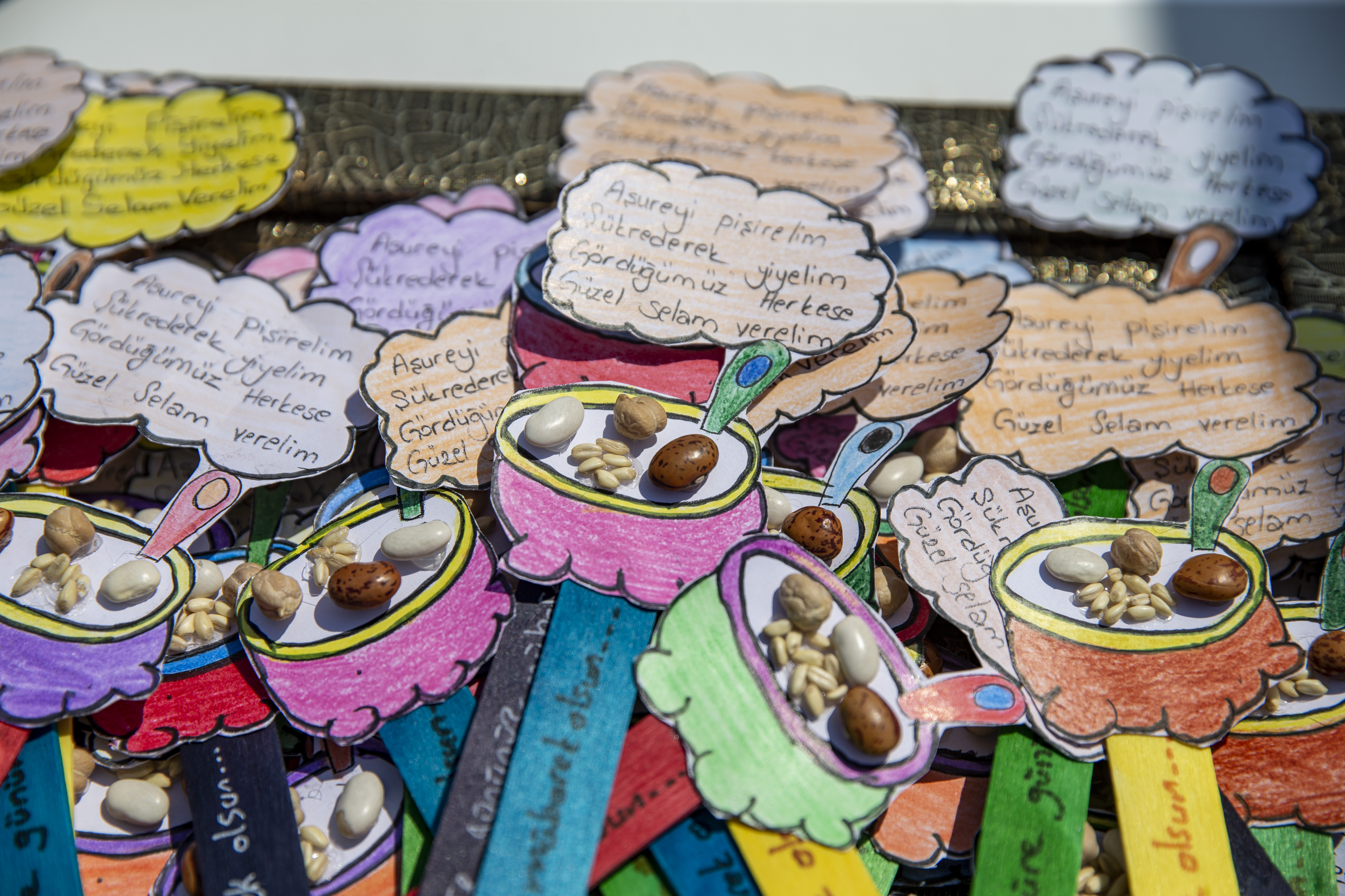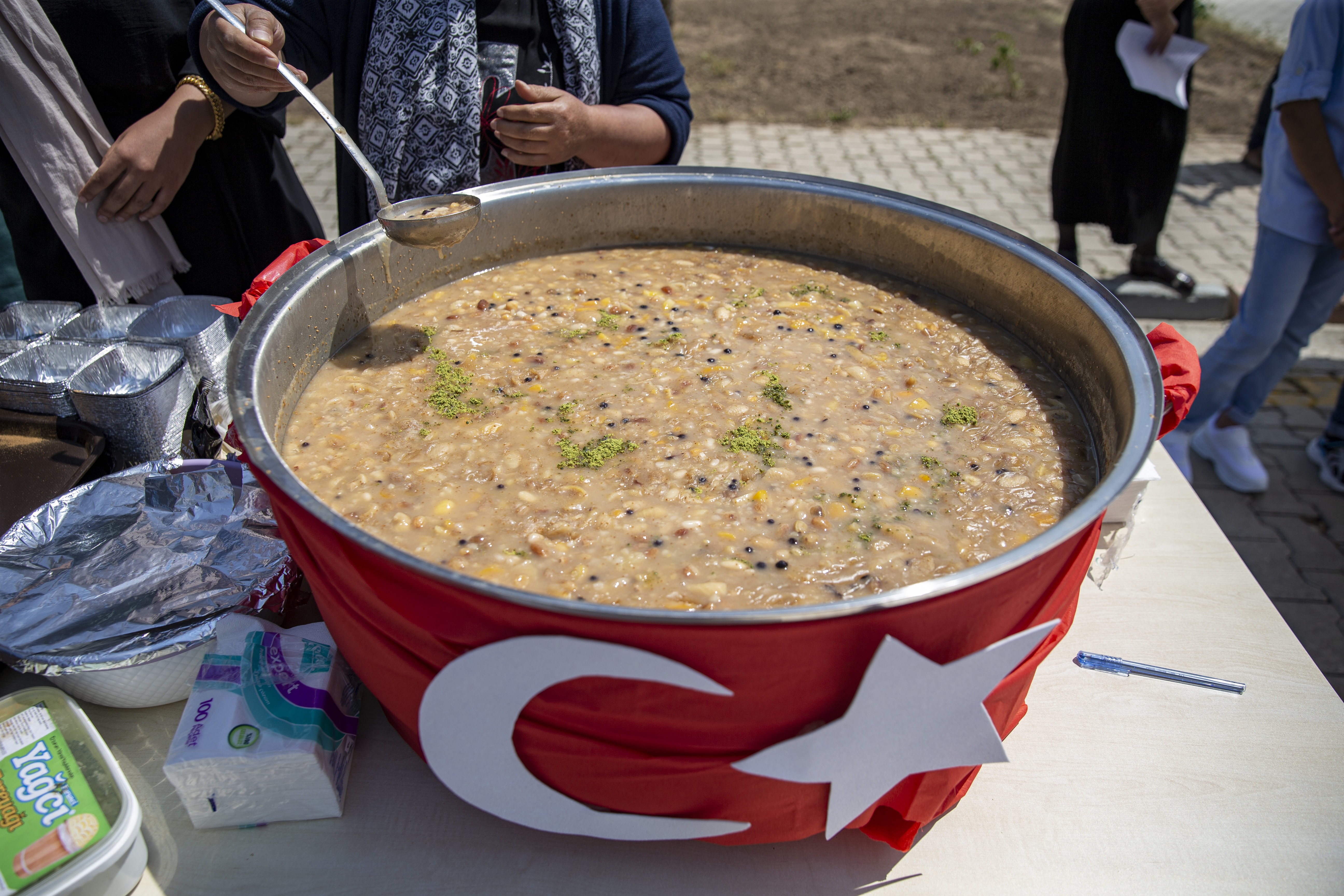 Konuşmaların ardından çocuklar, etkinliğe katılanlara çocuklar ablalarıyla birlikte hazırladıkları aşureleri ikram etti.