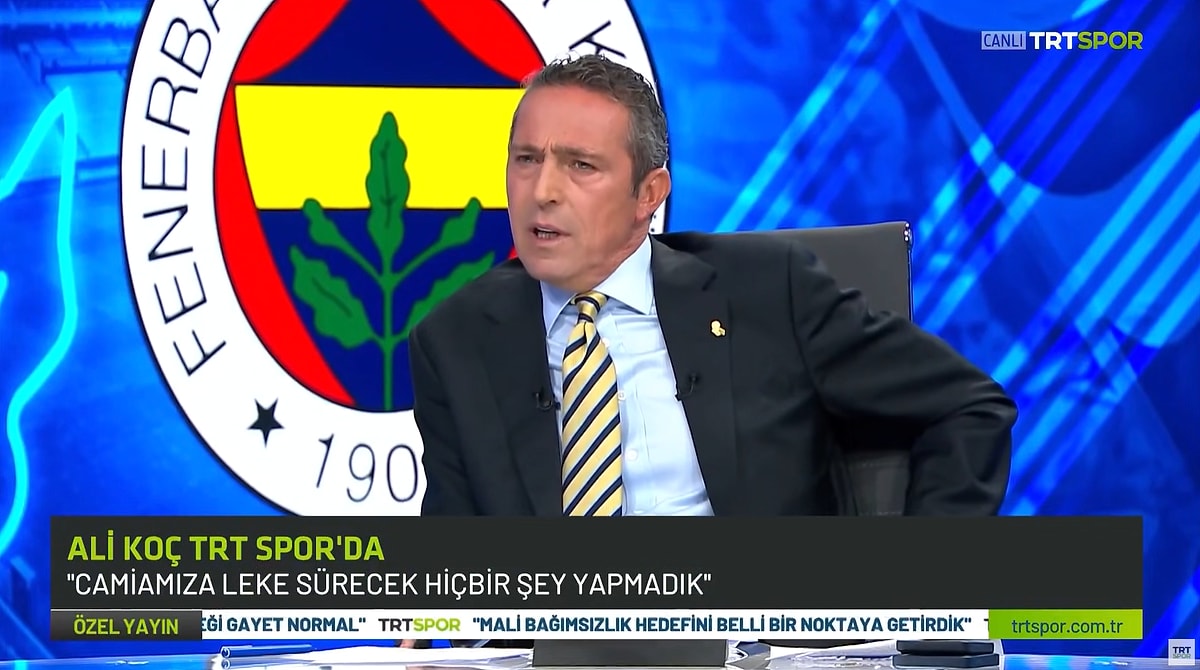ŞOK- Fenerbahçe Başkanı Ali Koç, TRT Spor ekranlarında katıldığı canlı yayında kulübün gündemine ilişkin önemli açıklamalarda bulundu. 2018 yılından bu yana başkanlık görevini sürdüren Koç; kulübün mali durumu, Jose Mourinho iddiaları, taraftar tepkileri ve istifa çağrılarına dair net mesajlar verdi.