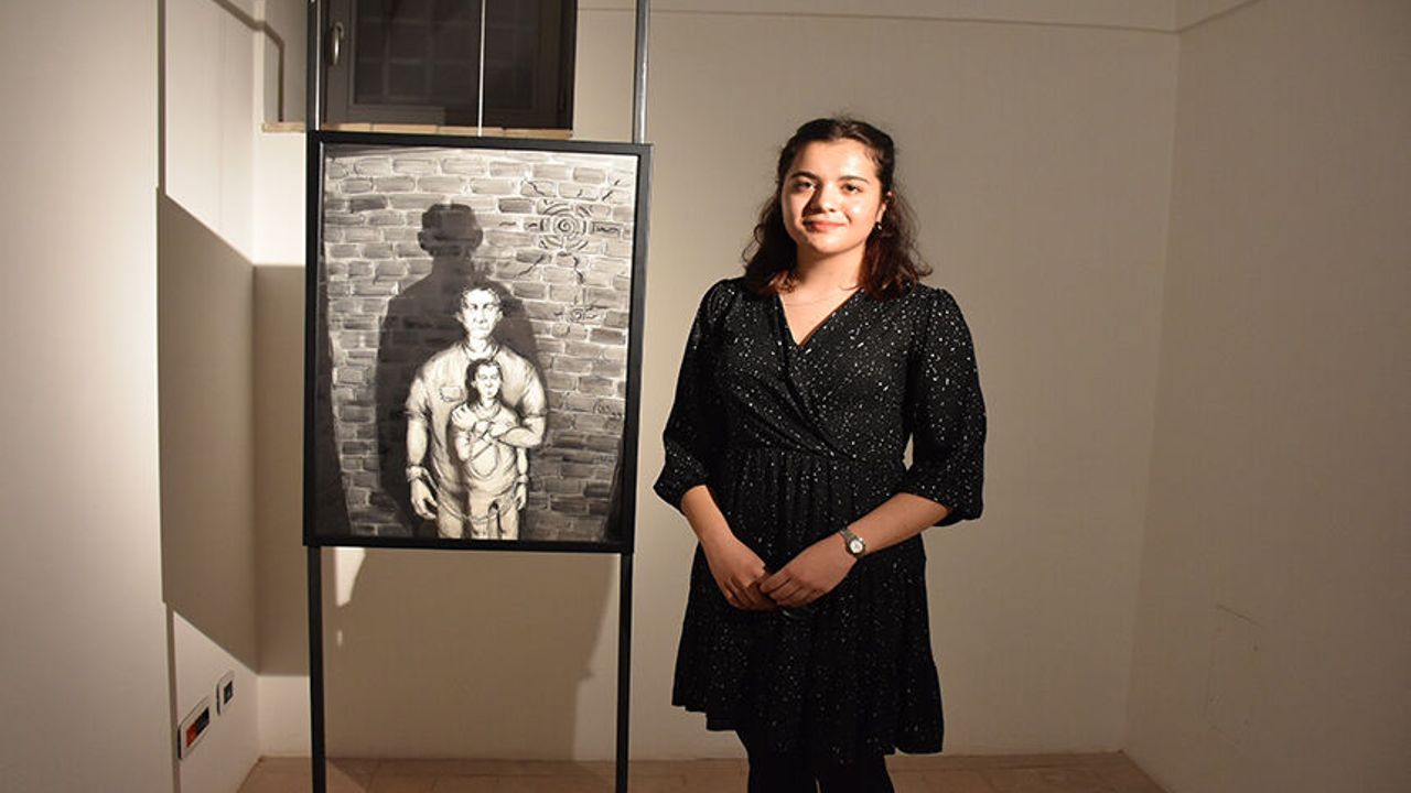 Karma sanat sergisine Türkiye adına Mimar Sinan Güzel Sanatlar Üniversitesi öǧrencisi Lena Demirhan (solda) katıldı.