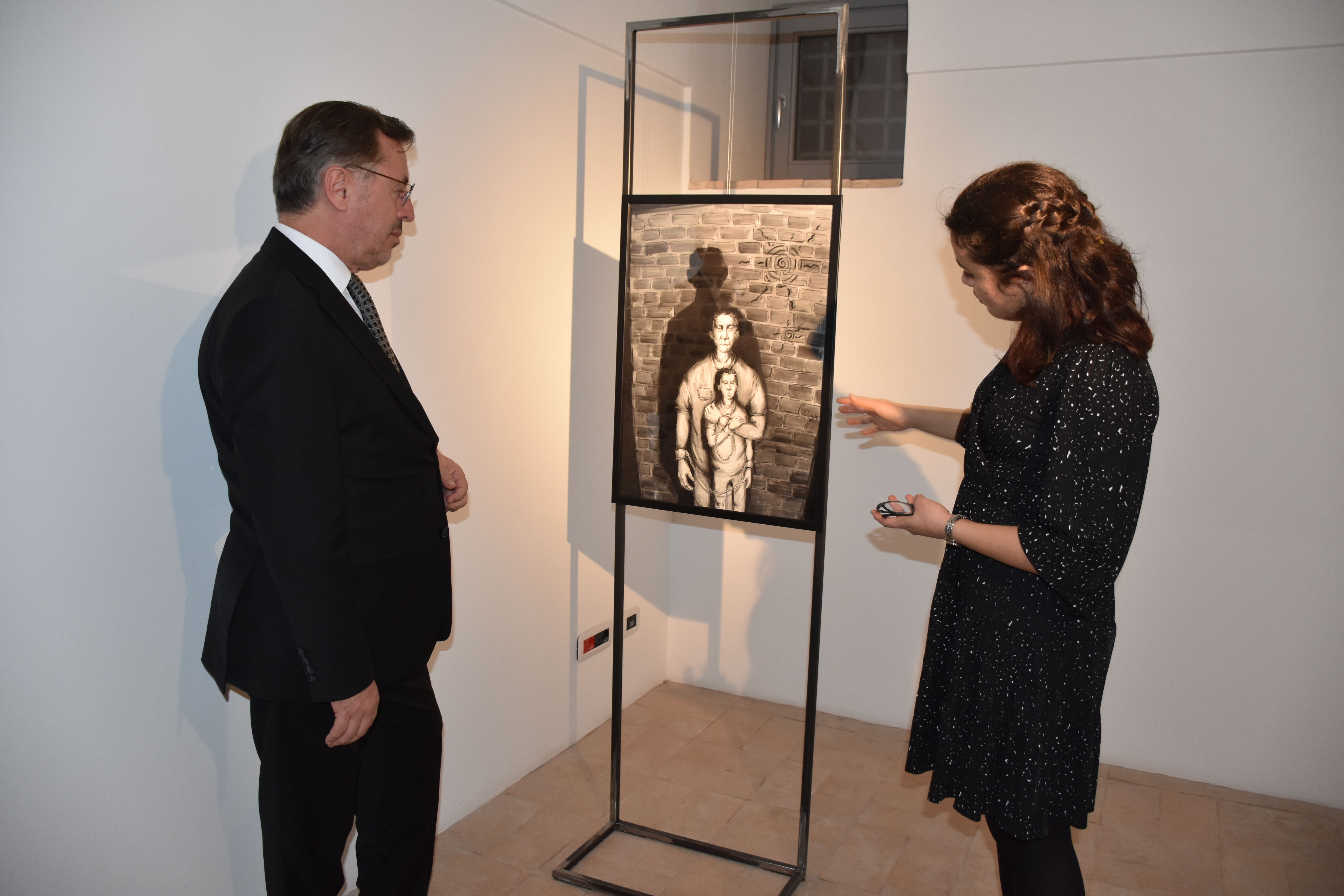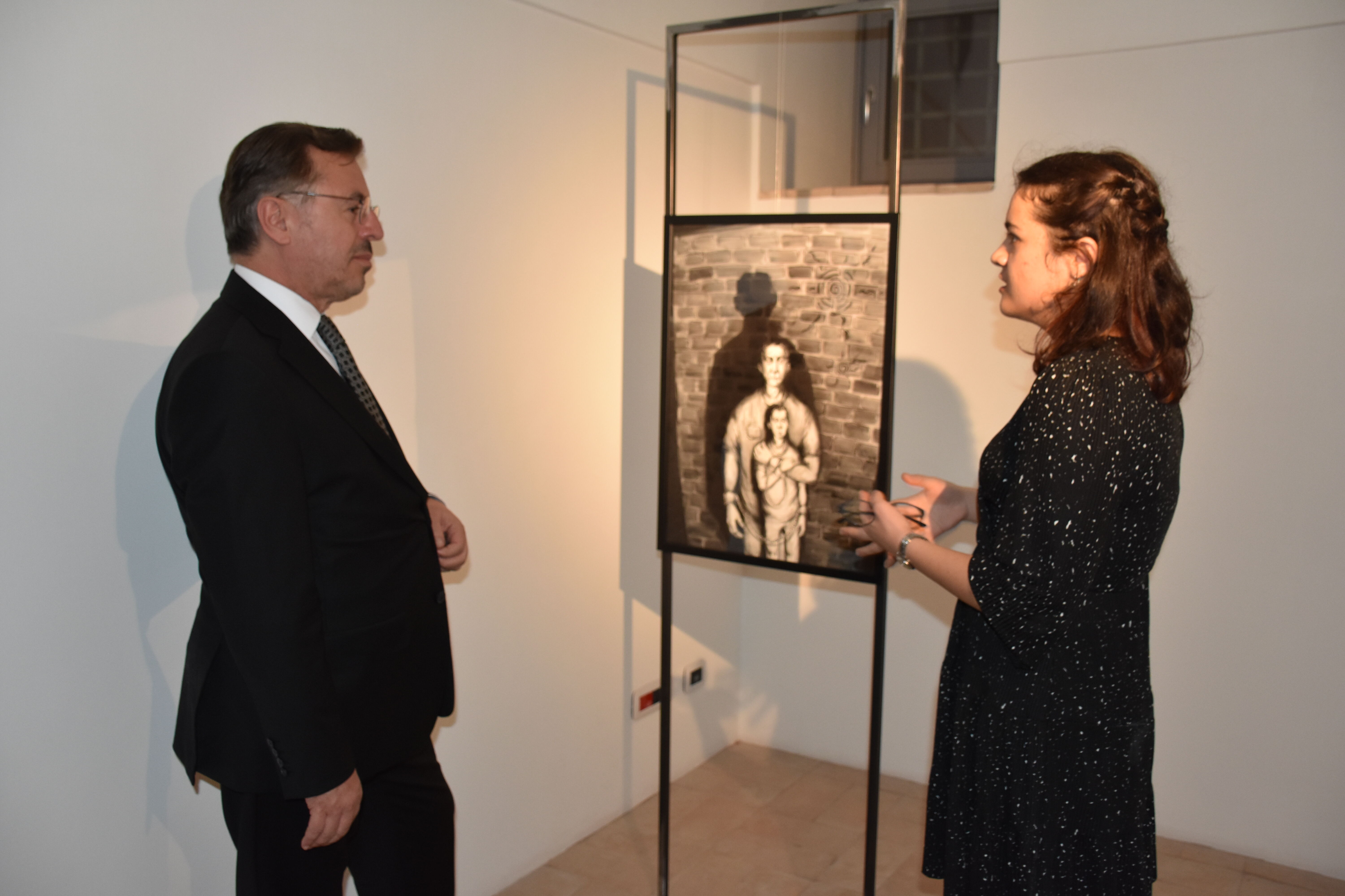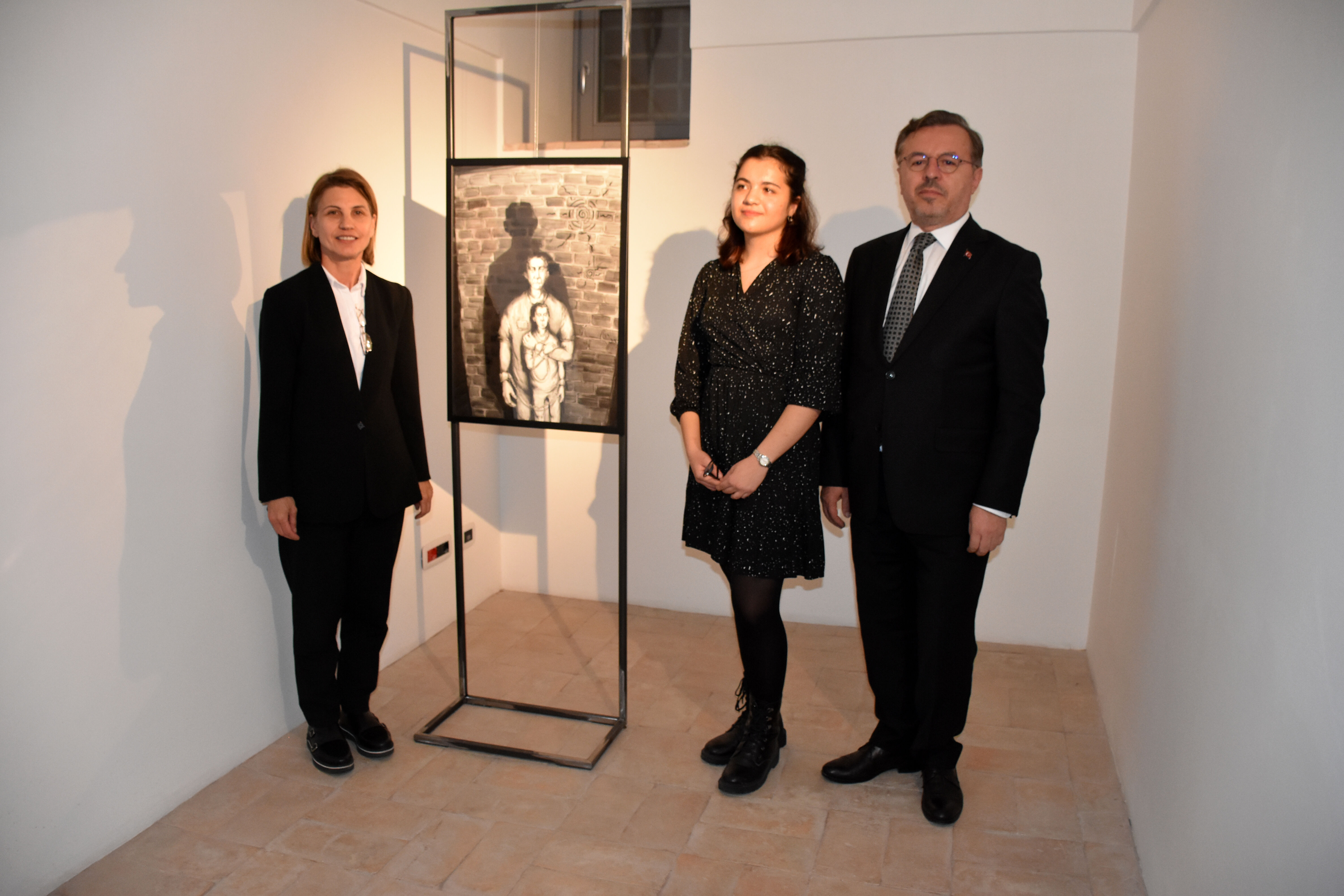 Roma'daki eski bir çocuk ve kadın ıslah evi olan, şimdilerde ise restorasyon enstitüsü olarak hizmet veren San Michele Enstitüsündeki serginin açılışında, Türkiye'nin Vatikan Büyükelçisi Lütfullah Göktaş (ortada) ve Yunus Emre Enstitüsü Roma Türk Kültür Merkezi Müdürü Sevim Aktaş (sağda) hazır bulundu.