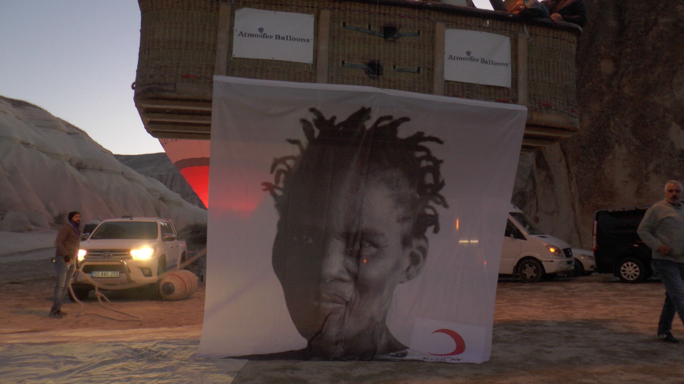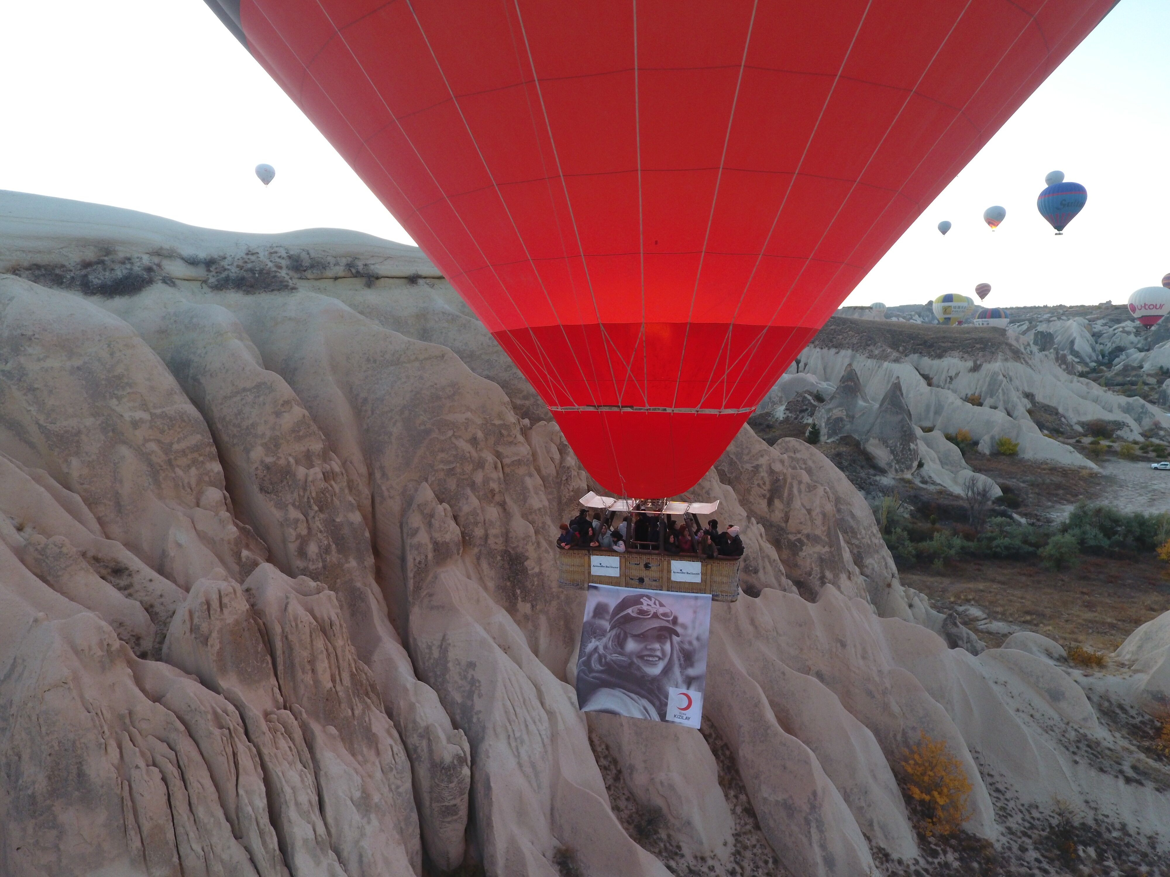 Türk Kızılay fotoğrafçıları tarafından dünyanın çeşitli coğrafyalarında çekilen 7 fotoğraf, Kapadokya bölgesinde havalanan sıcak hava balonlarına asılarak sergilendi. Kapadokya bölgesinde bulunan Meskendere Vadisi'nden havalanan 7 sıcak hava balonuna 7 fotoğraf asıldı.