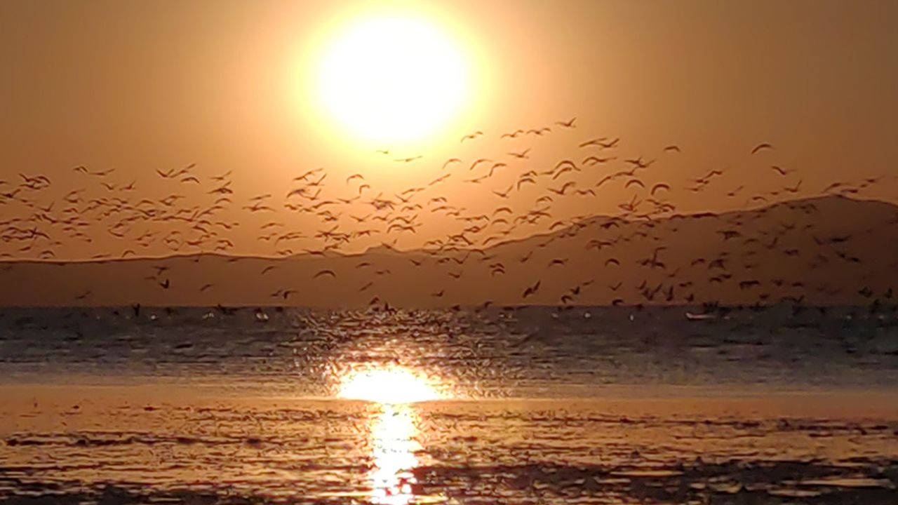 Van Gölü'nün 30 kilometre doğusunda bulunan bin 808 rakımdaki Erçek Gölü'nde oluşan kızıllık, havzanın narin misafirleri flamingolar ile güzel manzaralar oluşturdu.