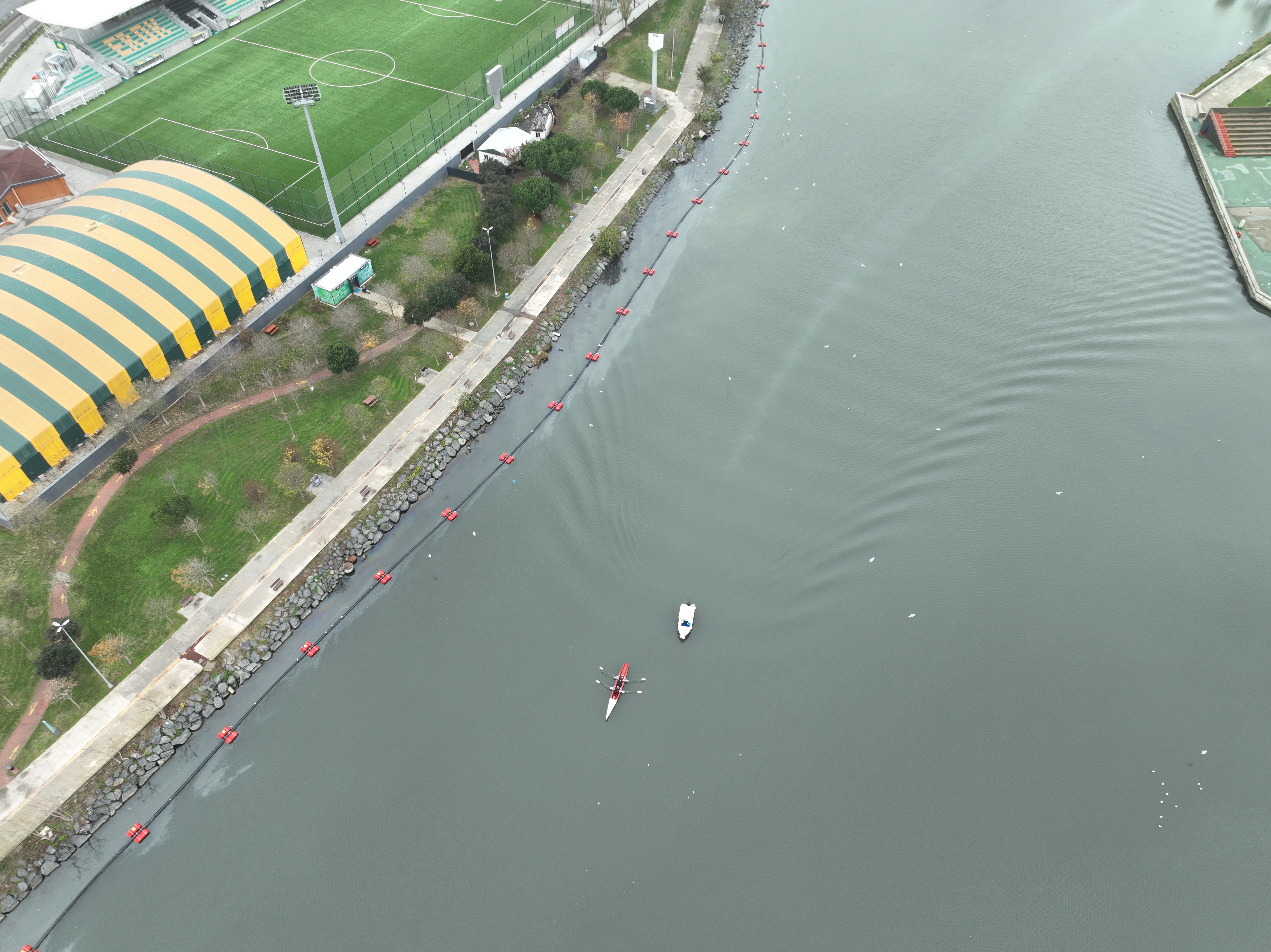 Havadan çekilen görüntülerde kirliliğin sahil şeridini kapladığı ve Haliç’in renginin değişmeye başladığı net bir şekilde gözler önüne seriliyor.
