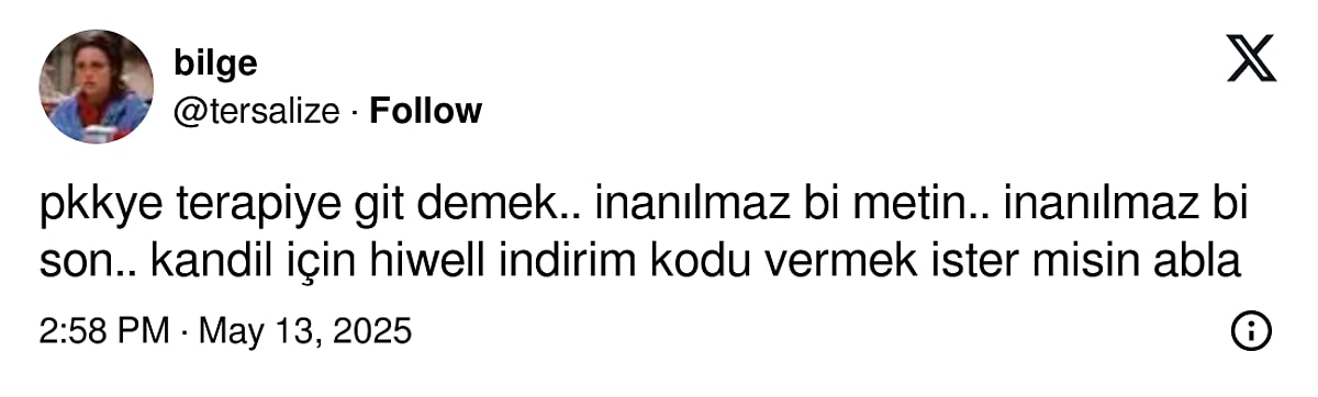 ŞOK - “Terörsüz Türkiye Projesi” kapsamında PKK’nın silahlı faaliyetlerine son vererek örgütü lağvettiğini açıklaması, Türkiye gündemini meşgul etmeye devam ederken, dikkat çekici bir yorum da oyuncu Hayal Köseoğlu’ndan geldi.