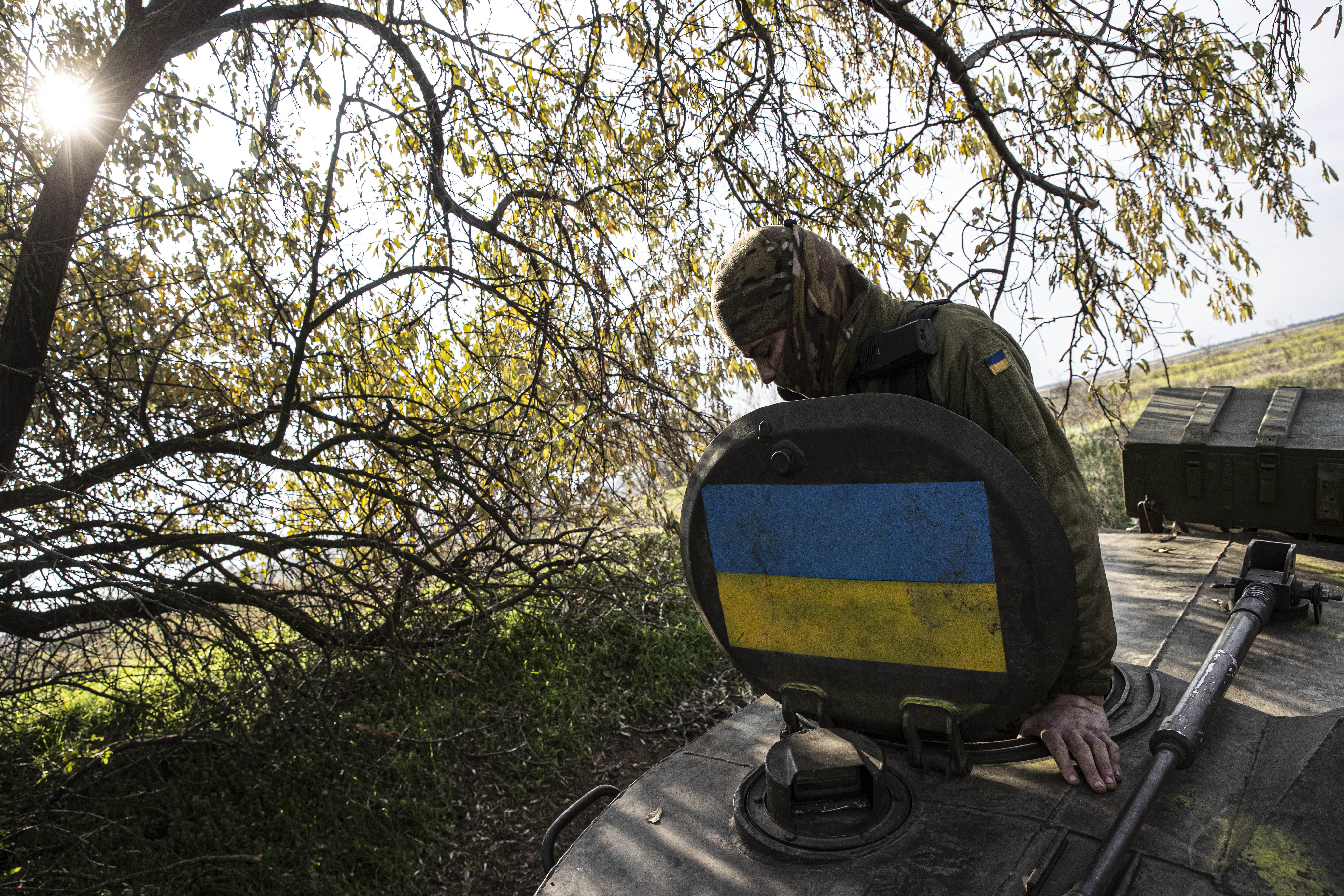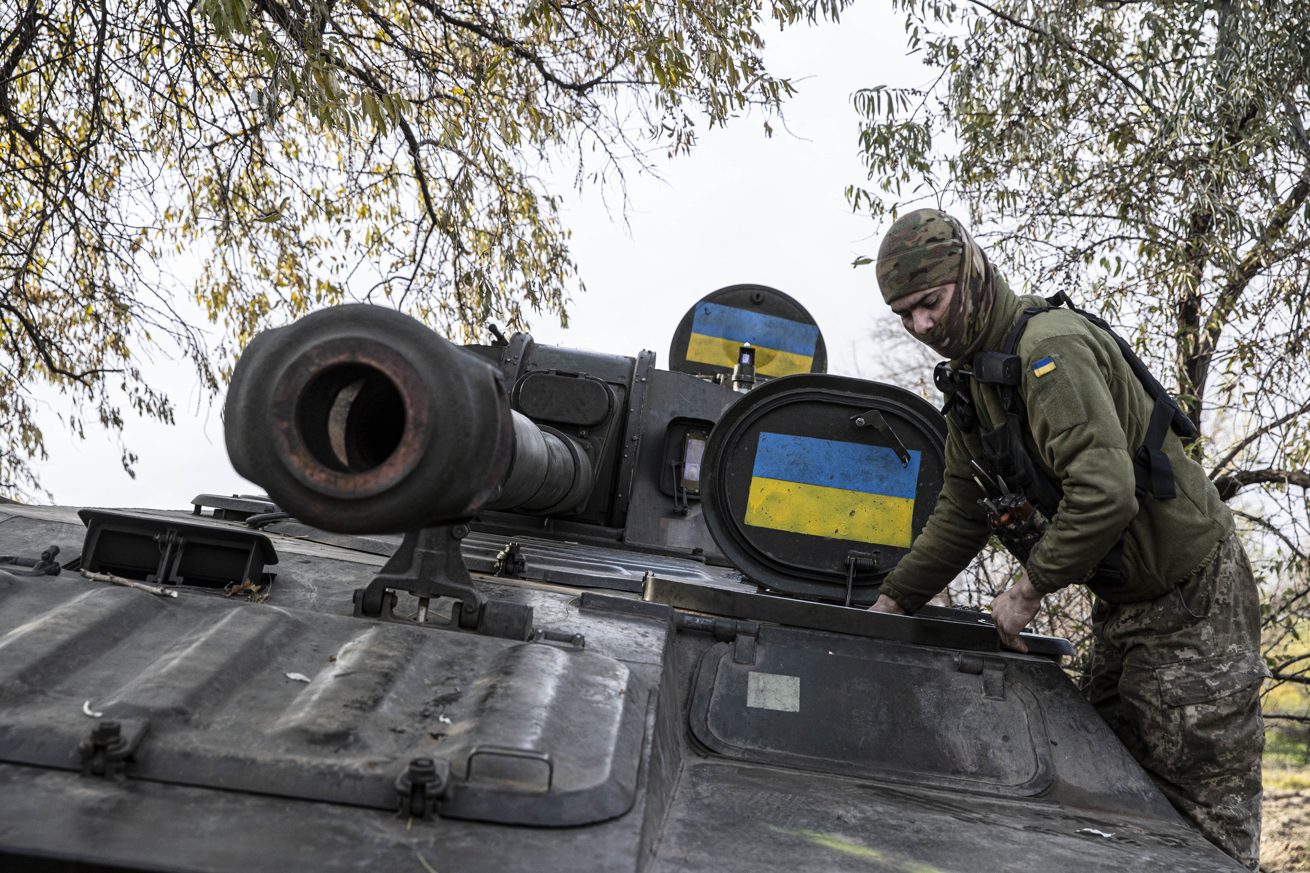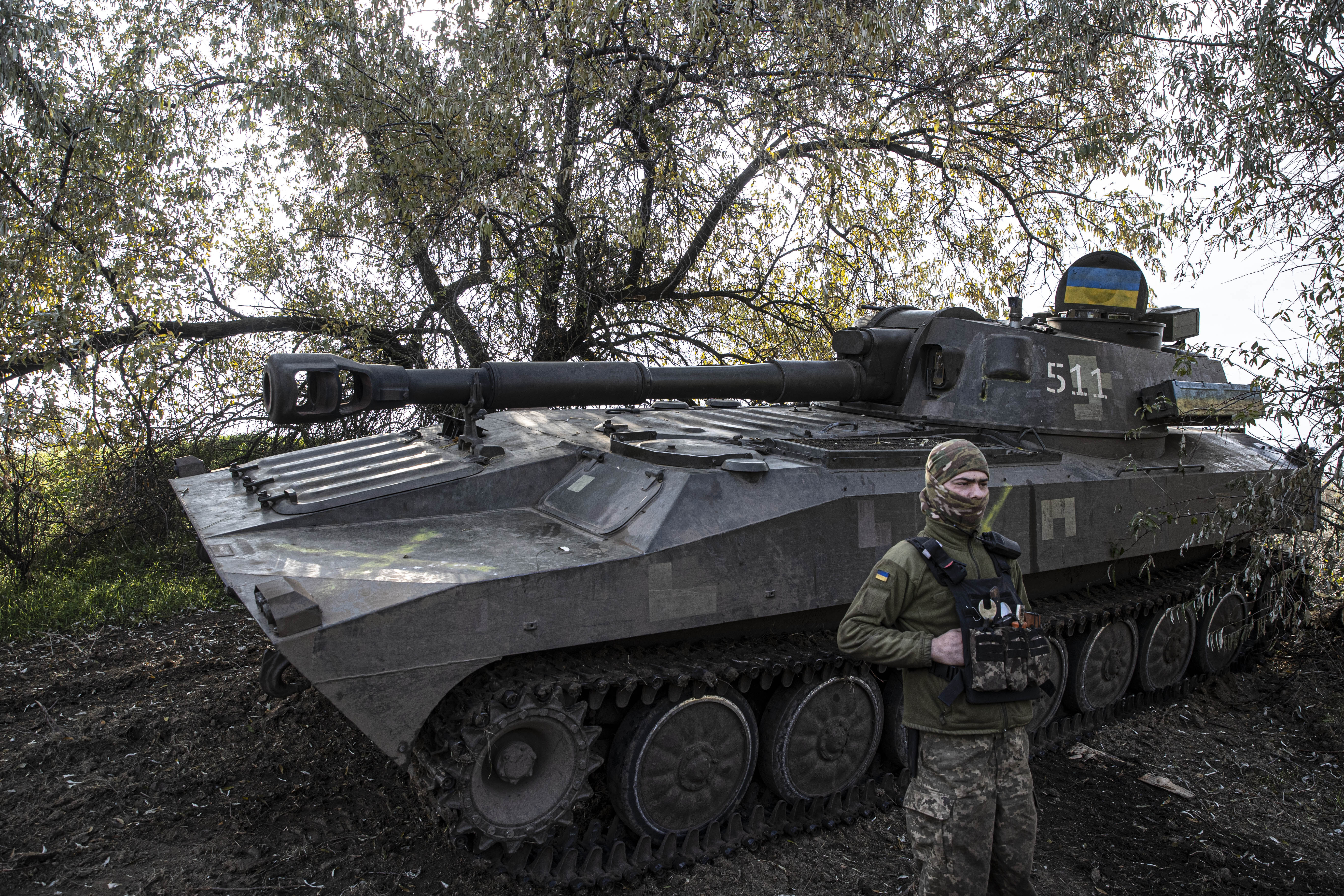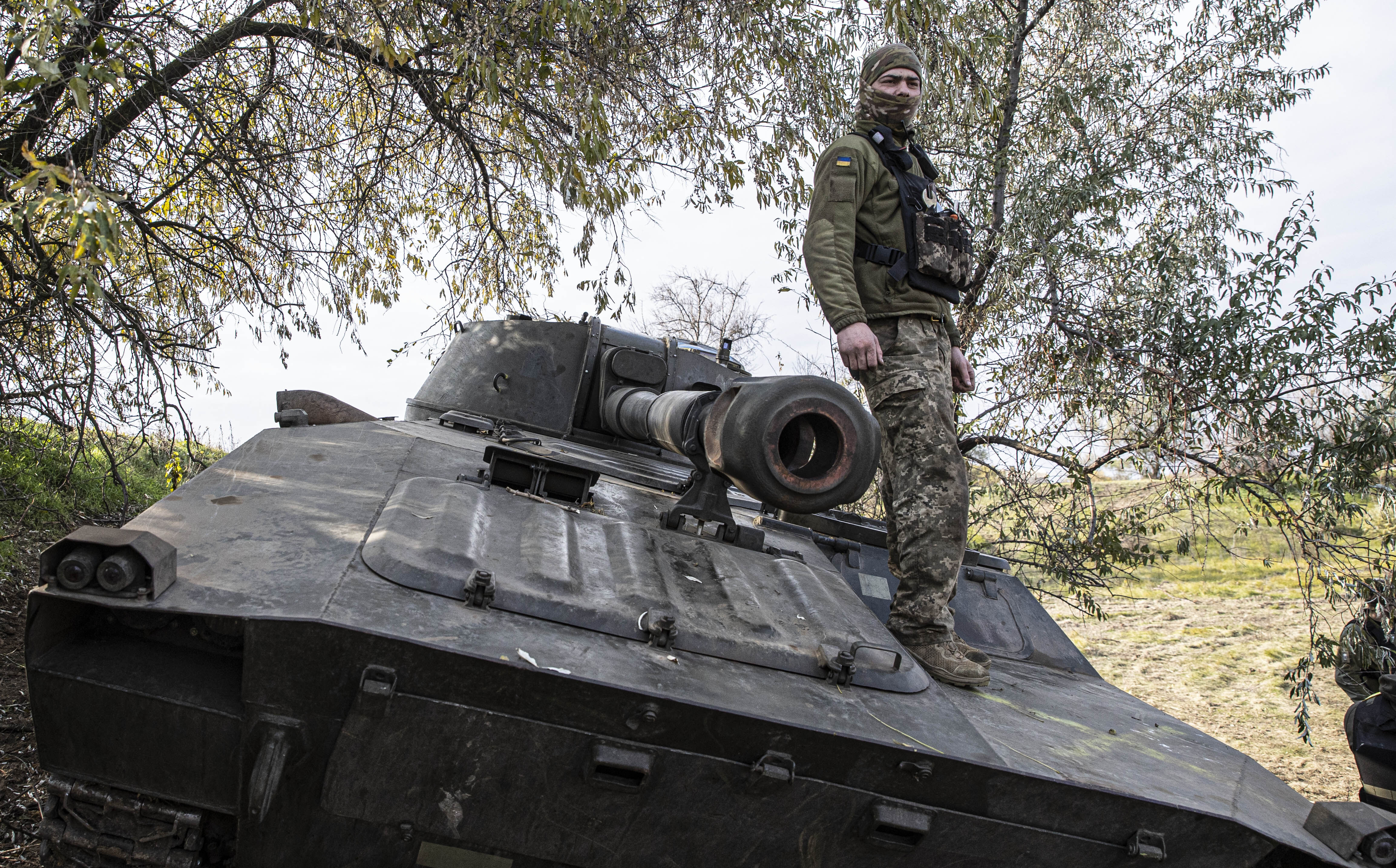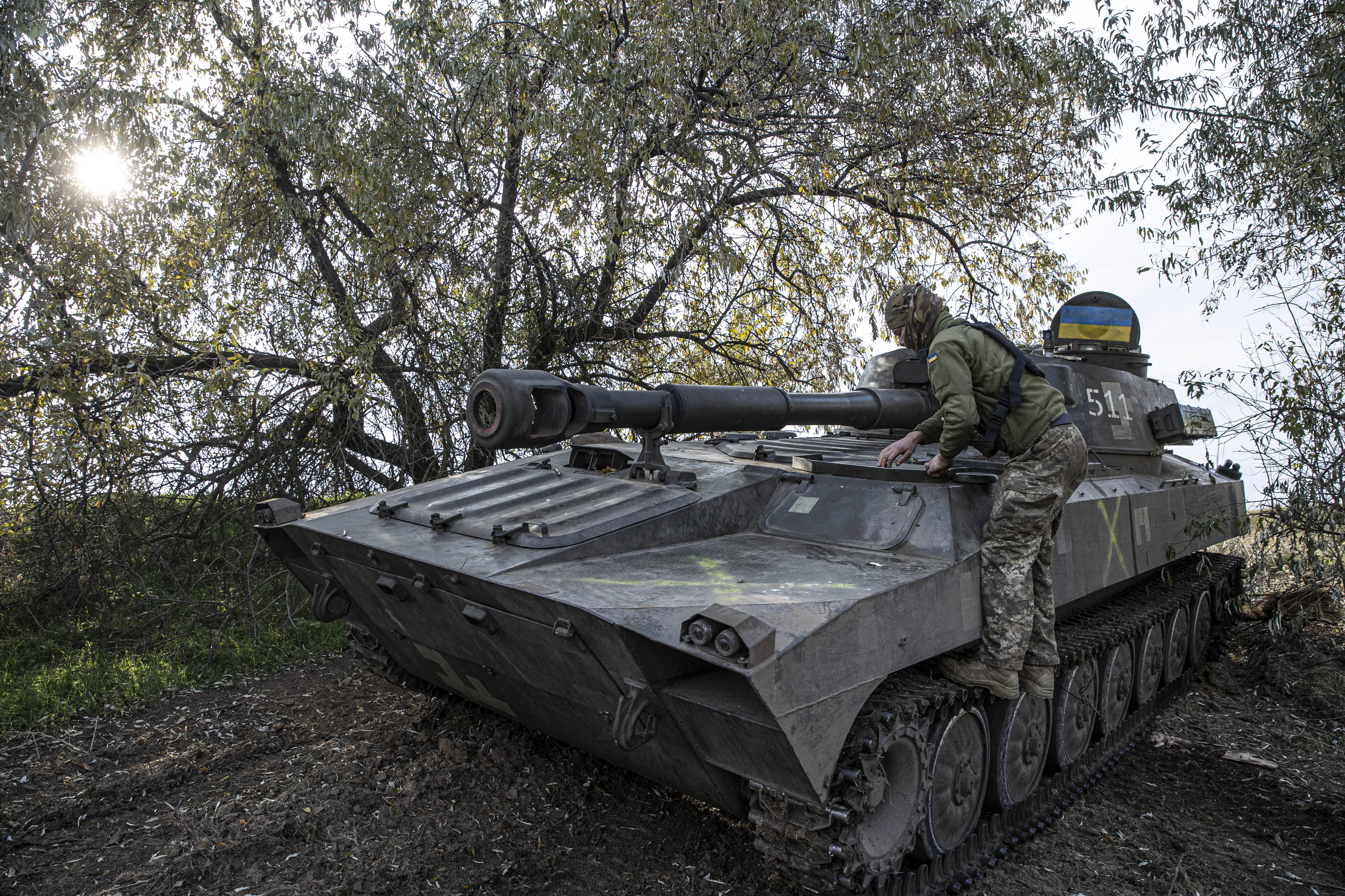 Anadolu Ajansı (AA) ekibi, savaş uçakları, askeri helikopterler ve tankların kullanıldığı Herson cephesinde konuşlanan Ukrayna ordusunun topçu bataryalarını görüntüledi.