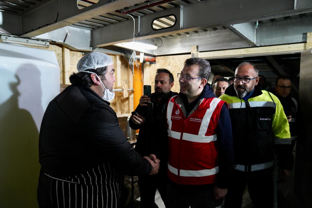 35 günlük ikiz bebekleri Gülsüm ve Göktuğ ile İBB gemisinde barınma olanağına kavuşan çiftle konuşan İmamoğlu, depremzedelere, “Burada emin ellerdesiniz. Hep beraber onları iyileştireceğiz. Yolları açık olsun. Onlar bizim için çok büyük umut. Onun için moralinizi yüksek tutun. Hep beraber ayağa kalkacağız. Allah bağışlasın” sözleriyle destek verdi. İmamoğlu mesai arkadaşlarına, “Burası çok özel bir yer. Emeğinize sağlık gerçekten. Bu özel halini, bizim gerçekten özel ihtiyacı olan insanlarımıza yaşatmamız lazım. Bunu siz koordine edeceksiniz” sözleriyle teşekkür etti.
