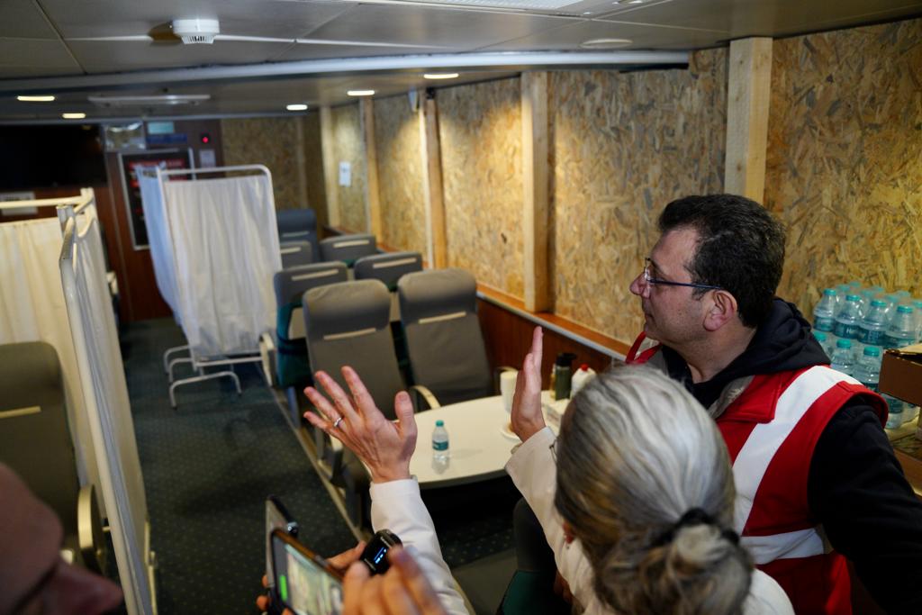 Gemiyi gezen, görev yapacak personelle sohbet eden ve gemide misafir edilen depremzedelerin acısına ortak olan İmamoğlu, sosyal medya hesaplarından yaptığı canlı yayında, “Çok hayırlı, değerli bir iş oldu. Bu feribotta insanlarımızı ağırlayacağız, konuk edeceğiz. Sağlığından giyimine, kuşamına, hijyeninden yemesine, içmesine onlara fırsat tanıyacağız. Çok da güzel olacak bu. Diğer feribotumuzla insanları nakledeceğiz. İlk çalışma yapılmış galiba. Ege'ye ve İstanbul'a devam edecek şekilde. Güzel bir iş oldu. Emeği geçen, fikrinden buraya gelişine kadar, bütün çalışma arkadaşlarıma, yönetici arkadaşlarıma teşekkür ediyorum” ifadelerini kullandı.