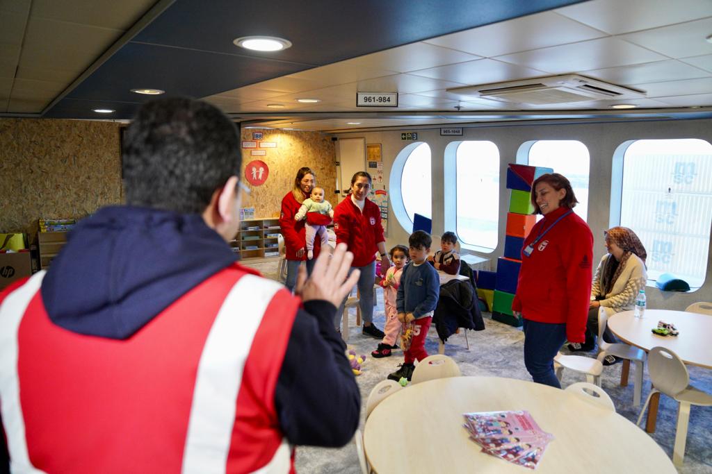 Gemilerden Orhangazi feribotunun yaşam alanı, Osmangazi’nin ise transfer amaçlı planlandığını belirten Dedetaş, “Özellikle sağlık, rehabilitasyon ve kreş hizmetlerini profesyonel personelimizle yürüteceğiz. Samandağ ve Antakya’da dışarıda yaşayan vatandaşlarımız gemimizde misafir edilecek. Ne kadar kalmak istiyorlarsa Orhangazi gemisinin içindeki yaşamları devam edecek. Transfer olmak istiyorlarsa, Osmangazi gemisi ile liman planlamalarını yapacağız. Gemileri 250 kişilik bir ekiple 24 saatte hazırladık. Temizlik, güvenlik, mutfak, sağlık hizmetleri ile geminin kendi personeli toplam 109 kişi hizmet verecek” dedi. Dedetaş’ın verdiği bilgilere göre; Orhangazi gemisinde 3 öğün, bin 200 kişilik yemek çıkartabilecek. Gemide; mutfak, duş ve tuvaletler, revir ve psikolojik danışma odaları, bir tanker yakıt yer alıyor. Gemi içerisinde deprem felaketinden etkilenen çocuklar için de oyun alanları oluşturuldu. Gemide mürettebat, sağlık personeli, psikolog, şoför, mutfak personeli, güvenlik personeli ve kreş öğretmeni ile toplam 109 personel afetzedelere destek olacak.