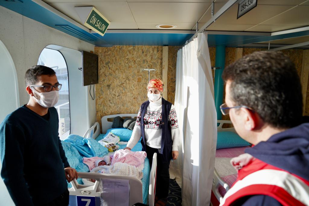 İBB’nin deprem felaketini yaşayan Hatay ve çevresinde görev yapmak için yola çıkardığı, Orhangazi ve Osmangazi gemileri İskenderun Limanı’na ulaştı. Osmangazi gemisi, tahliye edilmek isteyen depremzedeleri alıp limandan ayrılırken, Orhangazi gemisi de ilk konuklarını ağırlamaya başladı. İçinde barınma, sağlık, rehabilitasyon ve kreş gibi hizmetlerin verildiği geminin ilk konukları, 35 günlük Gülsüm ve Göktuğ bebekler oldu. İkizlerin anne-babasına geçmiş olsun dileklerini ileten İBB Başkanı Ekrem İmamoğlu, genç çifte, “Burada emin ellerdesiniz. Hep beraber onları iyileştireceğiz. Yolları açık olsun. Onlar bizim için çok büyük umut. Onun için moralinizi yüksek tutun. Hep beraber ayağa kalkacağız. Allah bağışlasın” sözleriyle destek verdi. İmamoğlu mesai arkadaşlarına da “Burası çok özel bir yer. Emeğinize sağlık gerçekten. Bu özel halini, bizim gerçekten özel ihtiyacı olan insanlarımıza yaşatmamız lazım. Bunu siz koordine edeceksiniz” diyerek, teşekkür etti.