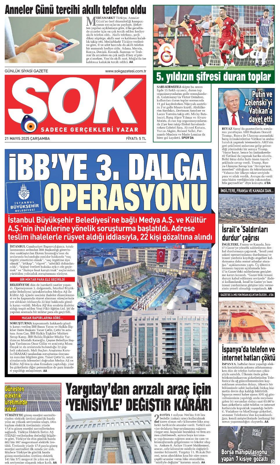 Gazetemiz ŞOK "İBB'ye 3. dalga operasyonu" manşetiyle bayilerde...
