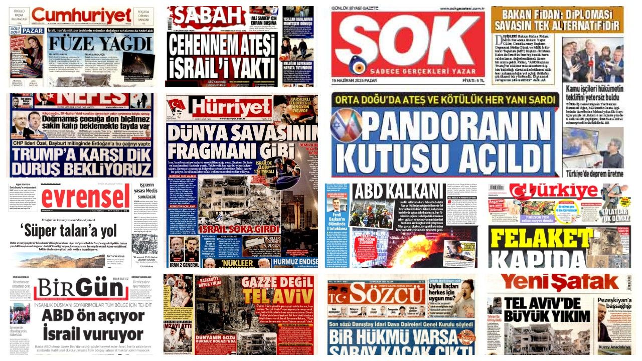 İran'ın İsrail'e misilleme saldırıları gazetelerin manşetlerine yansırken iki ülke arasında süren gerilim ve çatışmanın bölgeye, dünyaya, ekonomiye etkileri de gazetelerin birinci sayfalarında yer aldı.