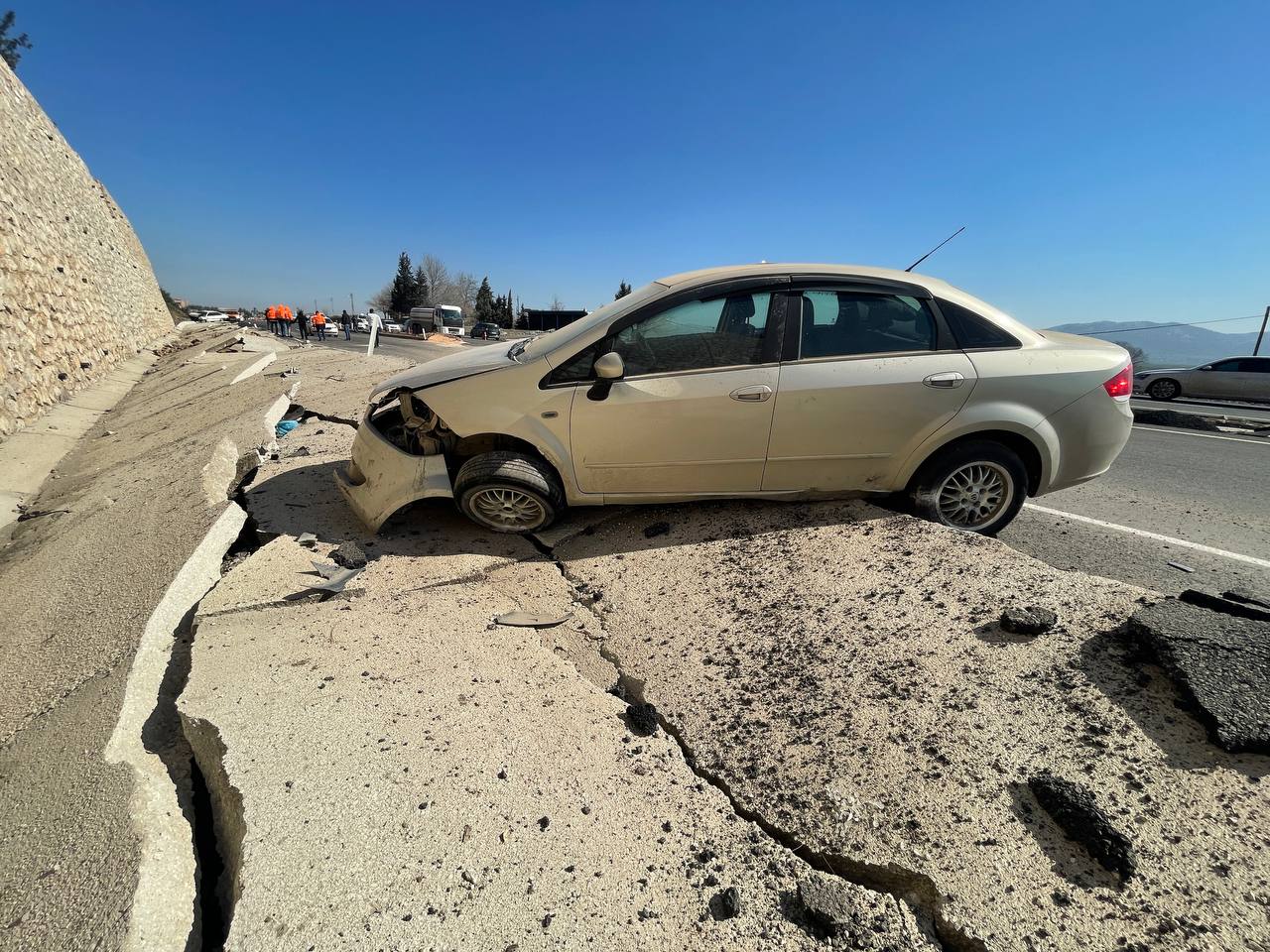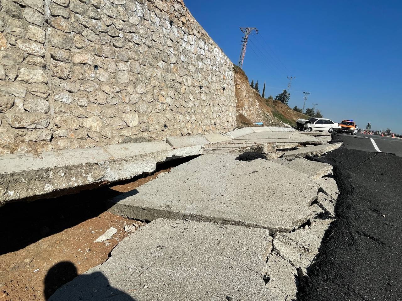 İslahiye-Hatay kara yolunda, "asrın felaketi" olarak nitelenen Kahramanmaraş merkezli depremlerin ardından yer yer 1,5 metrelik kabarmalar oluştu. (AA)