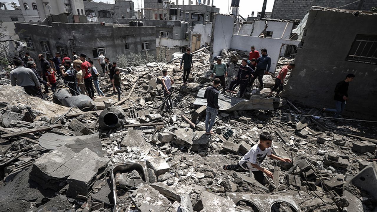 İsrail ordusu, Gazze Şeridi'nin kuzeyindeki Beyt Lahya kentinde bir binaya saldırı düzenledi. Filistinliler, saldırı sonucu enkaza dönen binadayı inceledi. aa
