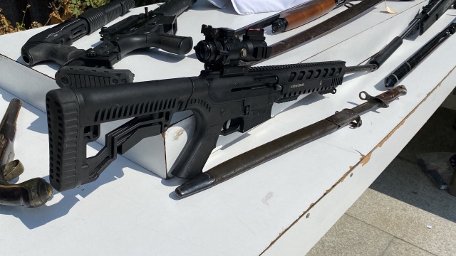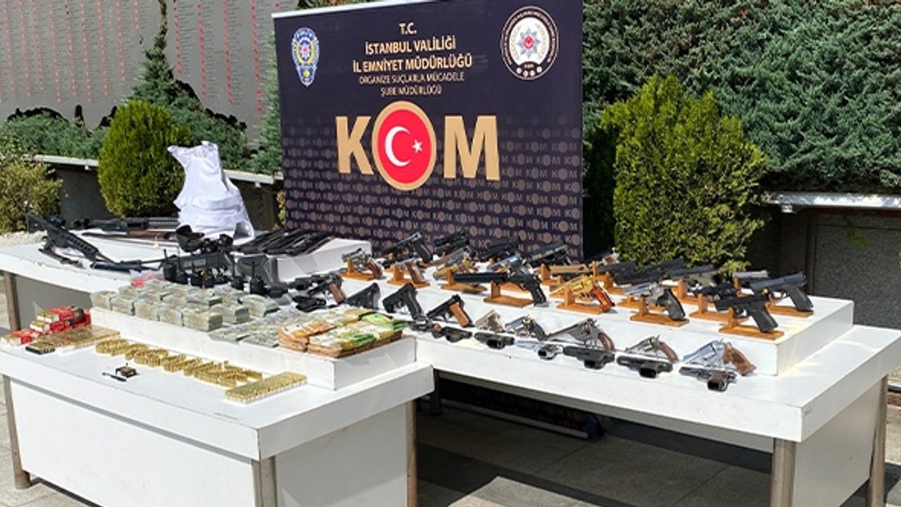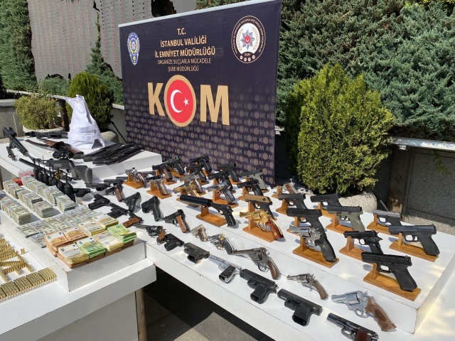 Kamuoyunda ‘Sarallar’ olarak bilinen çıkar amaçlı organize suç ağına yönelik düzenlenen operasyonda ele geçen silahlar ve malzemeler emniyette sergilendi.