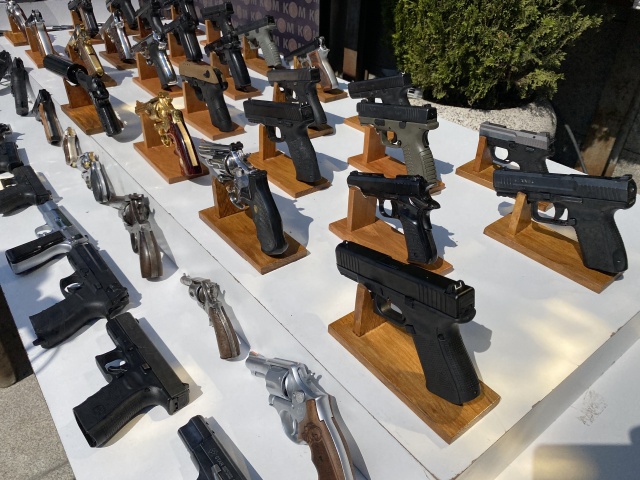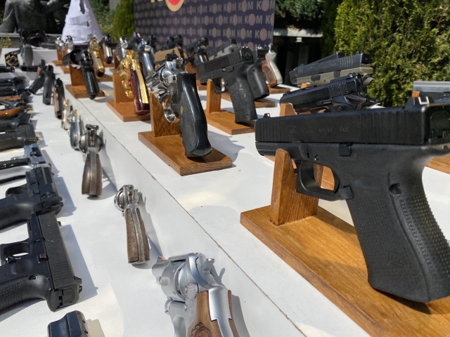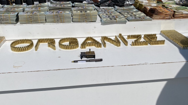 Sergilenenler arasında çok sayıda çek, senet ve dijital materyal ile 900 bin dolar ve 413 bin avronun yanı sıra 46 ruhsatsız tabanca, 6 av tüfeği, 7 kılıç, 7 telsiz, kalem şeklinde 1 suikast silahı, 1 susturucu, bin mermi, 3 hançer ve 1 balistik yelek yer alıyor. (iha)