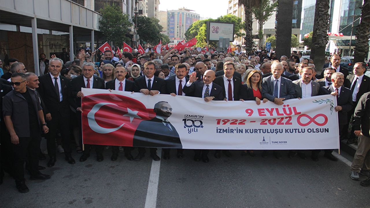 İzmir’in düşman işgalinden kurtuluşunun 100. yıldönümü, her yıl olduğu gibi yine coşkulu kutlamalara sahne oluyor. İzmir Büyükşehir Belediyesinin ev sahipliğinde düzenlenen etkinlikler, saat 09.00’da geleneksel Zafer Yürüyüşü ile başladı. Basmane Karakolu önünden başlayan yürüyüş, binlerce vatandaşın katılımıyla Cumhuriyet Meydanı'nda son buldu. Türk ordusunun İzmir’e girerken kullandığı tarihi güzergah üzerinde düzenlenen yürüyüşte Gaziler, Anafartalar ve İkiçeşmelik caddelerini takip eden İzmirliler, 350 metre uzunluğunda dev Türk bayrağı taşıdı.