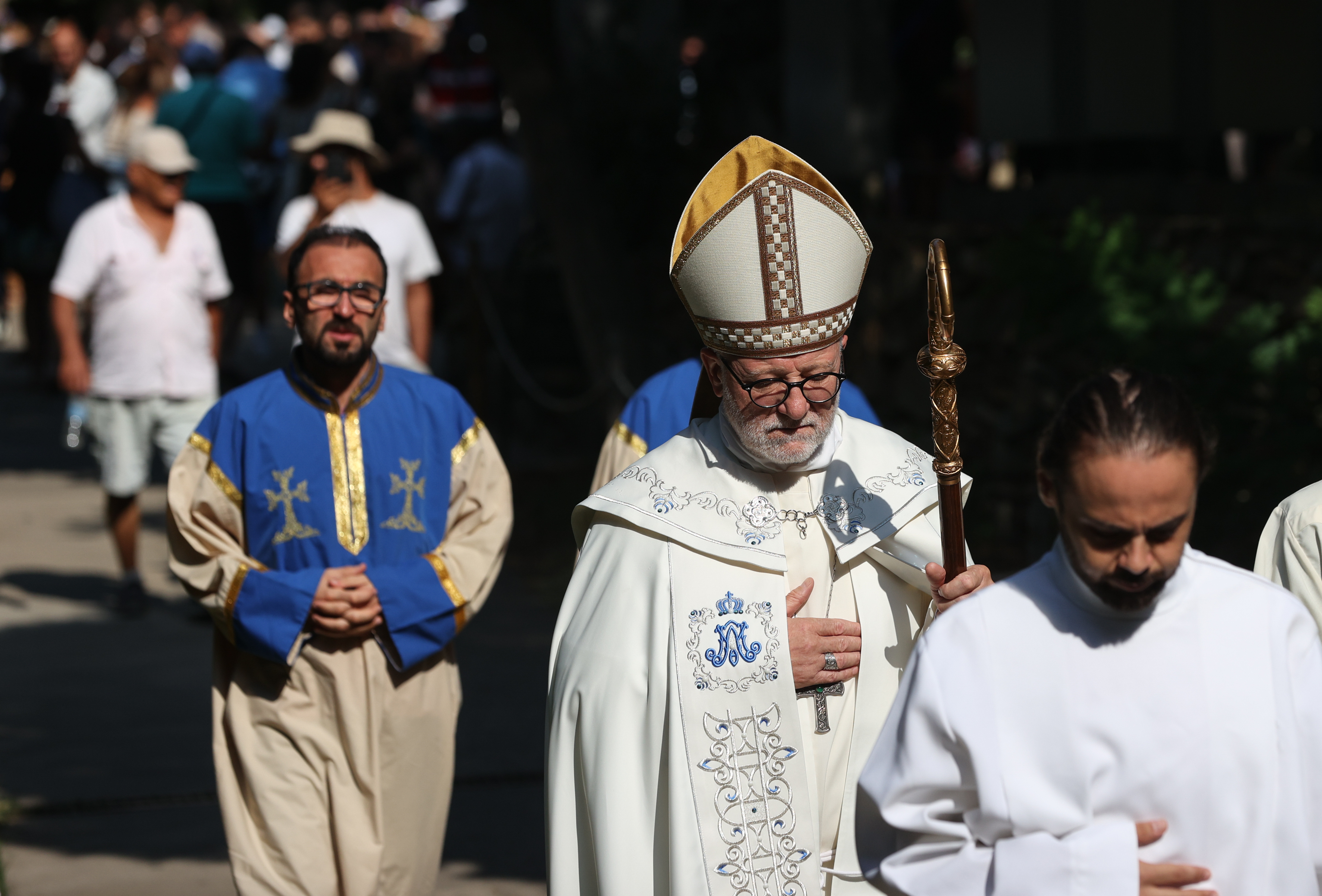 Kmetec, ayindeki konuşmasında Meryem Ana'nın göğe alınışını sevinçle kutladıklarını belirterek kilise öğretisinin "Meryem Ana'nın dünyevi yaşamı sonlandıktan sonra beden ve ruh olarak göğe alındığını" söylediğini kaydetti.