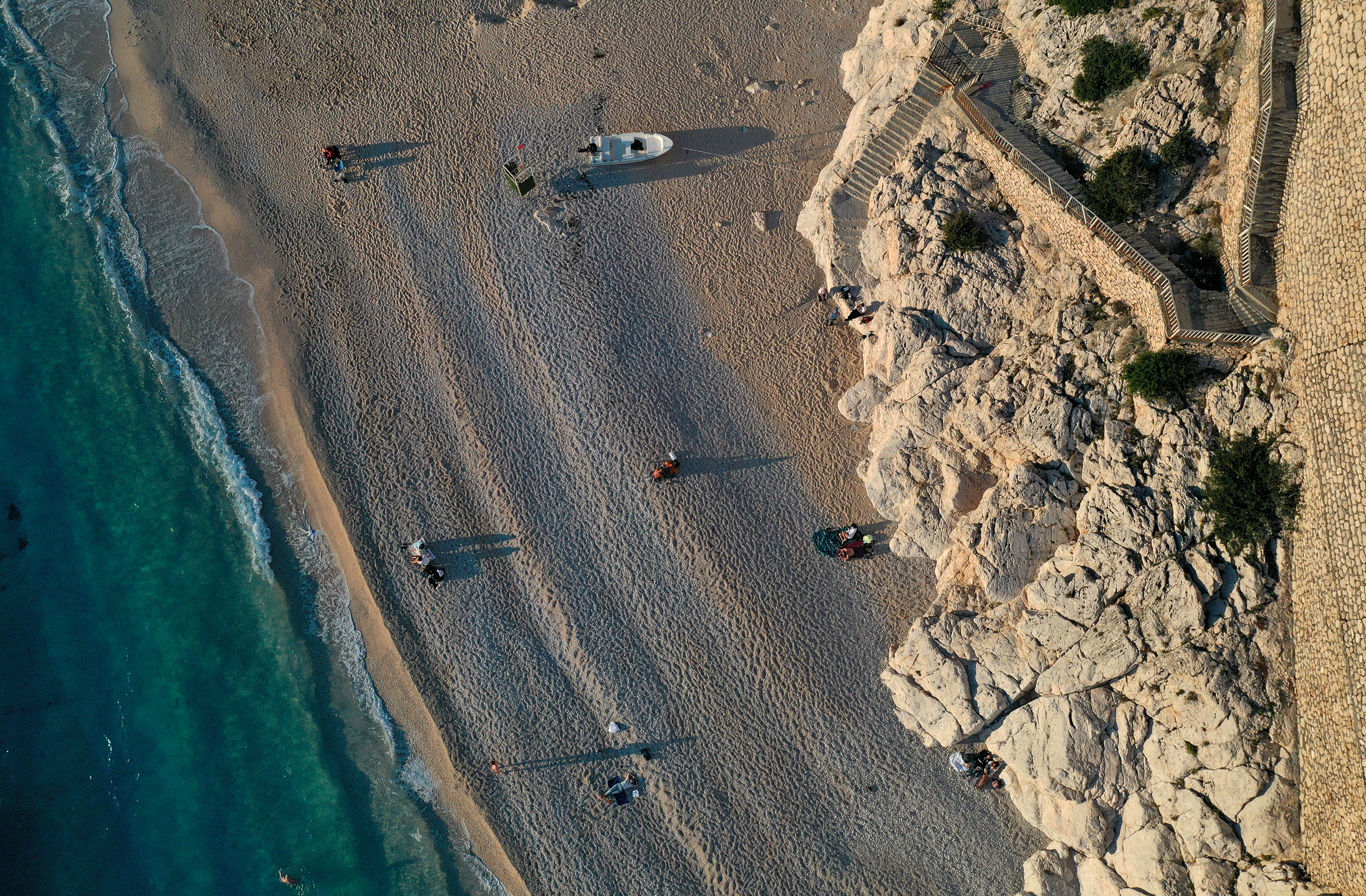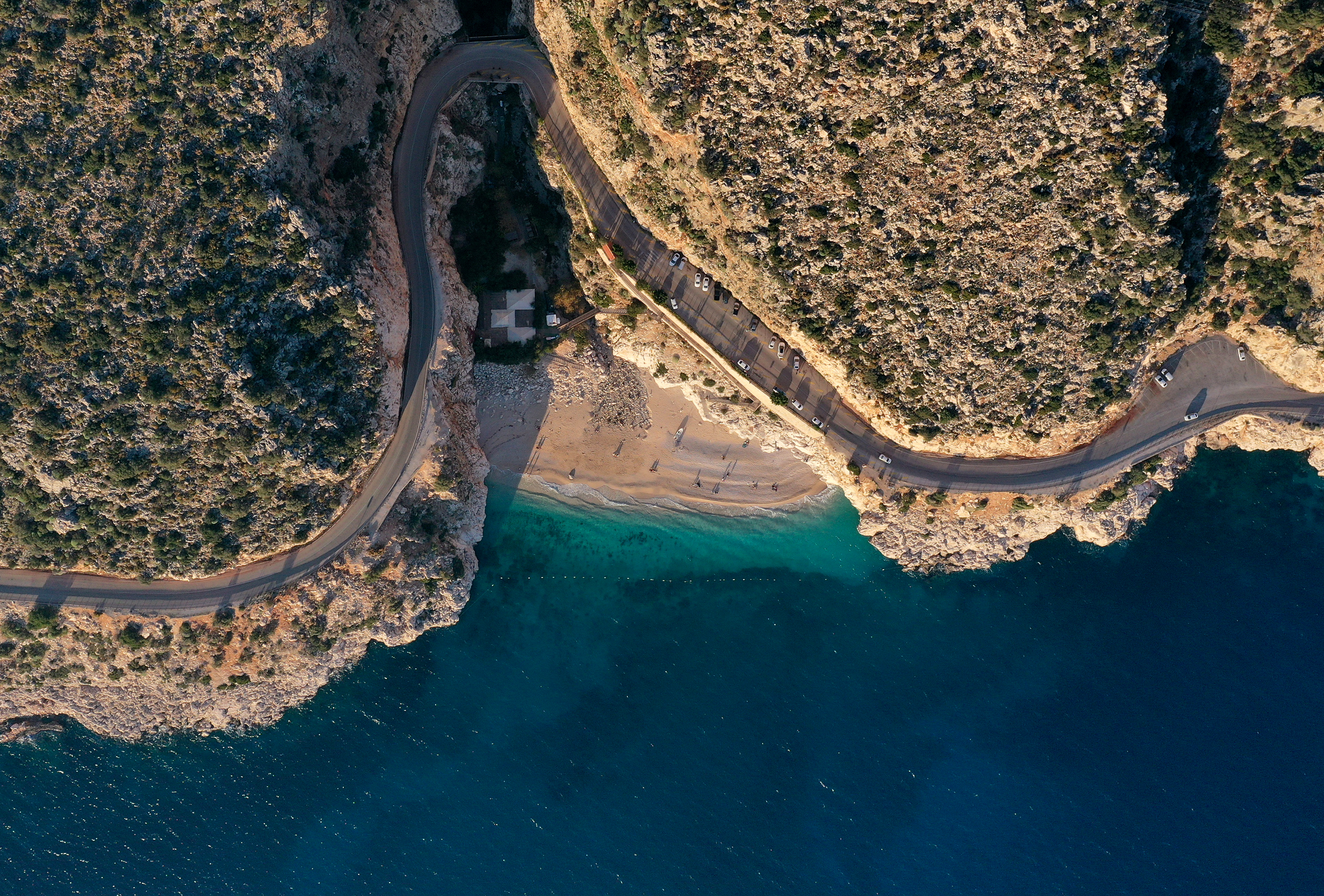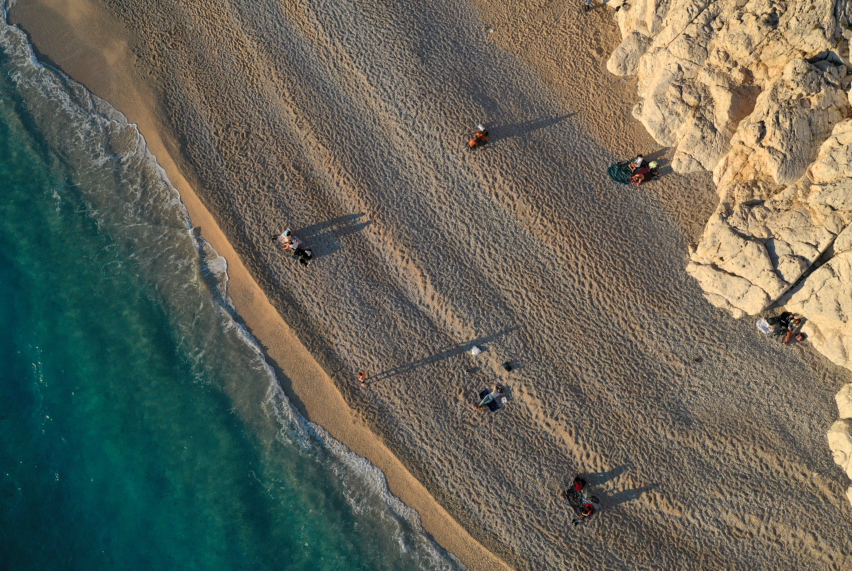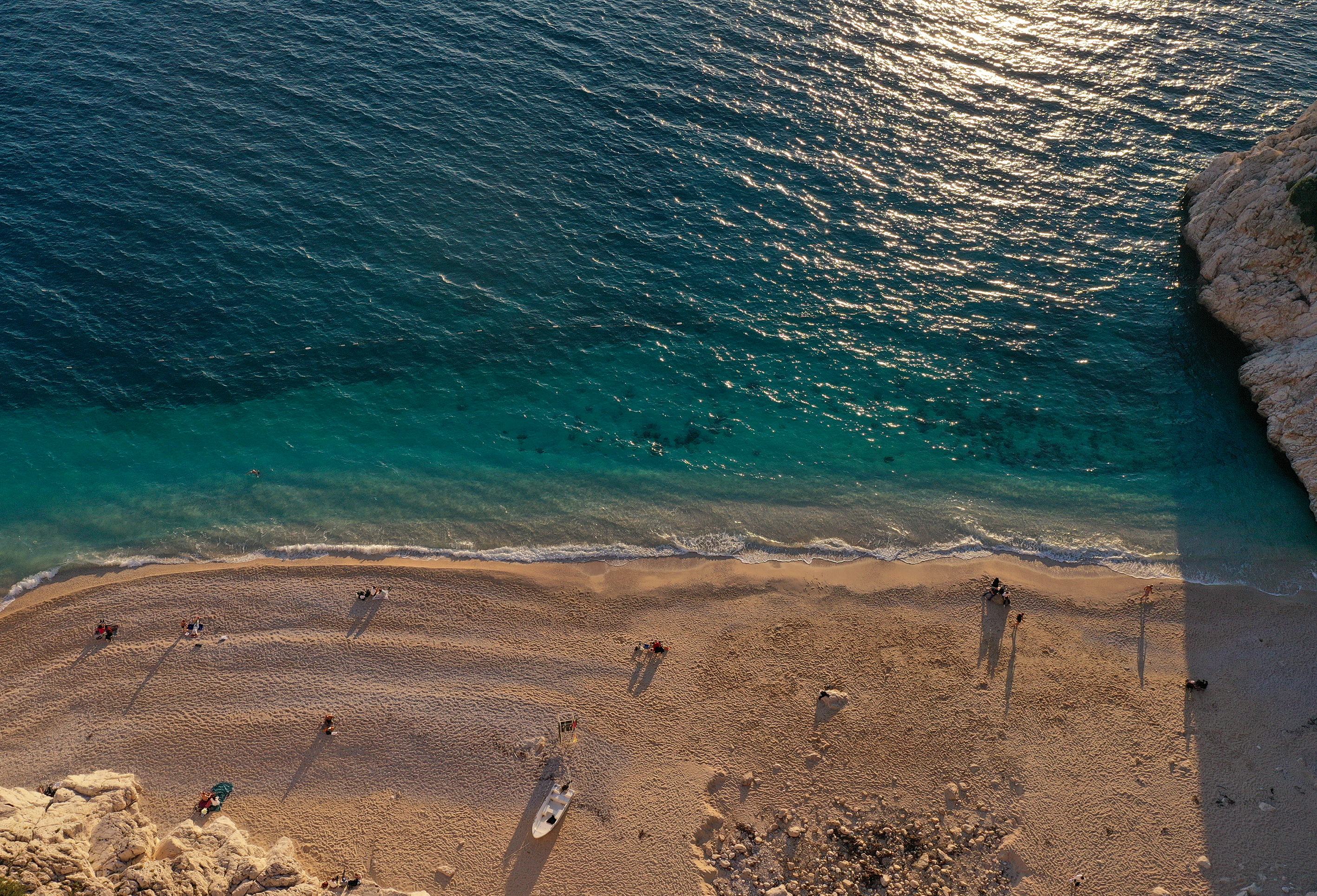 Kaputaş Plajı'nın turkuaz rengi ve gün batımı atmosferi, AA ekibince de dron ile görüntülendi.