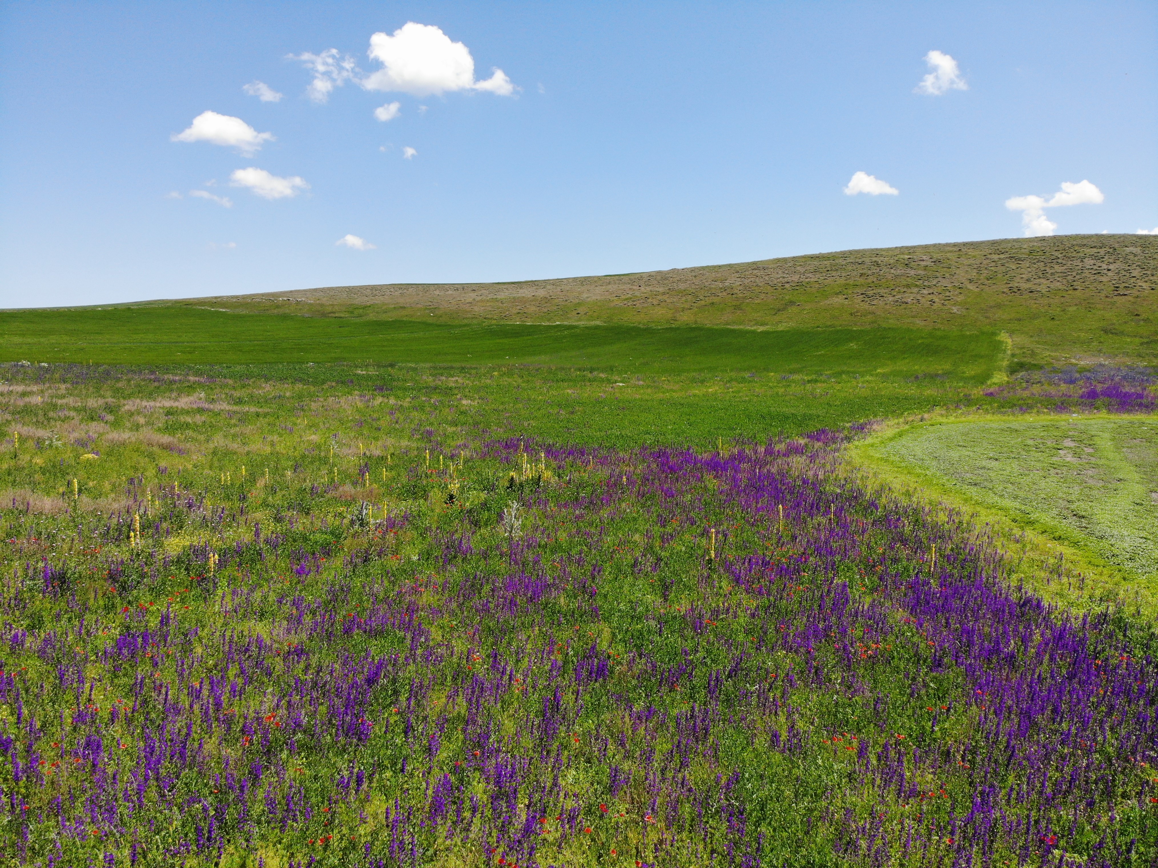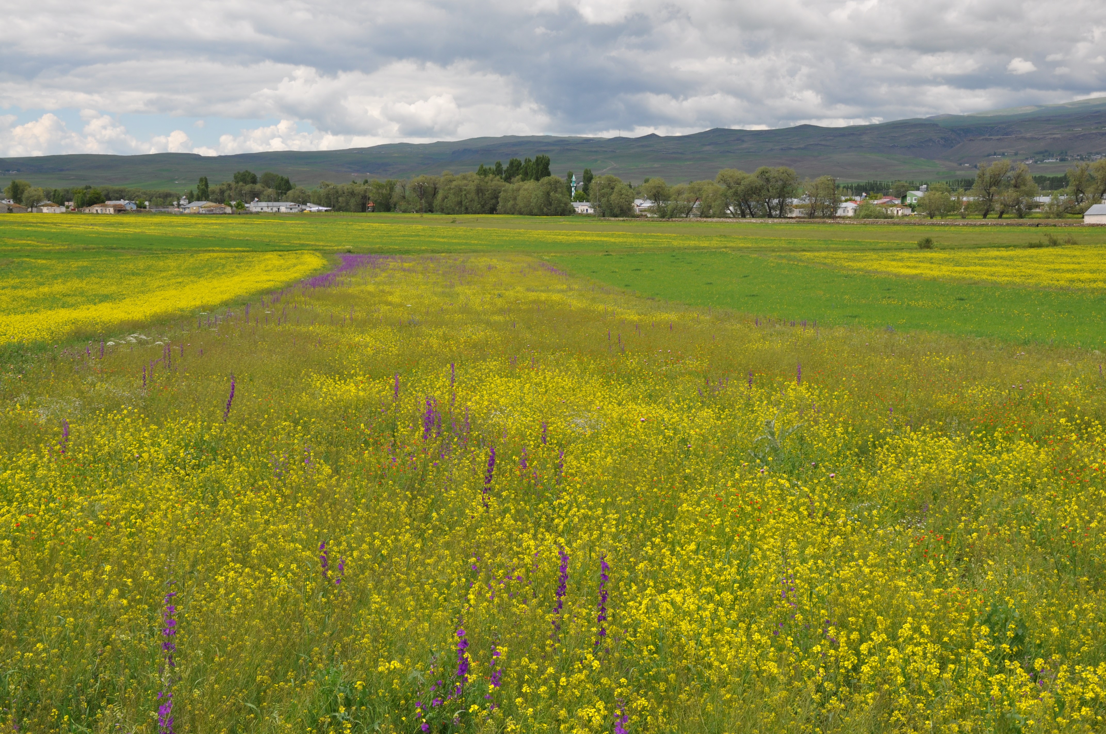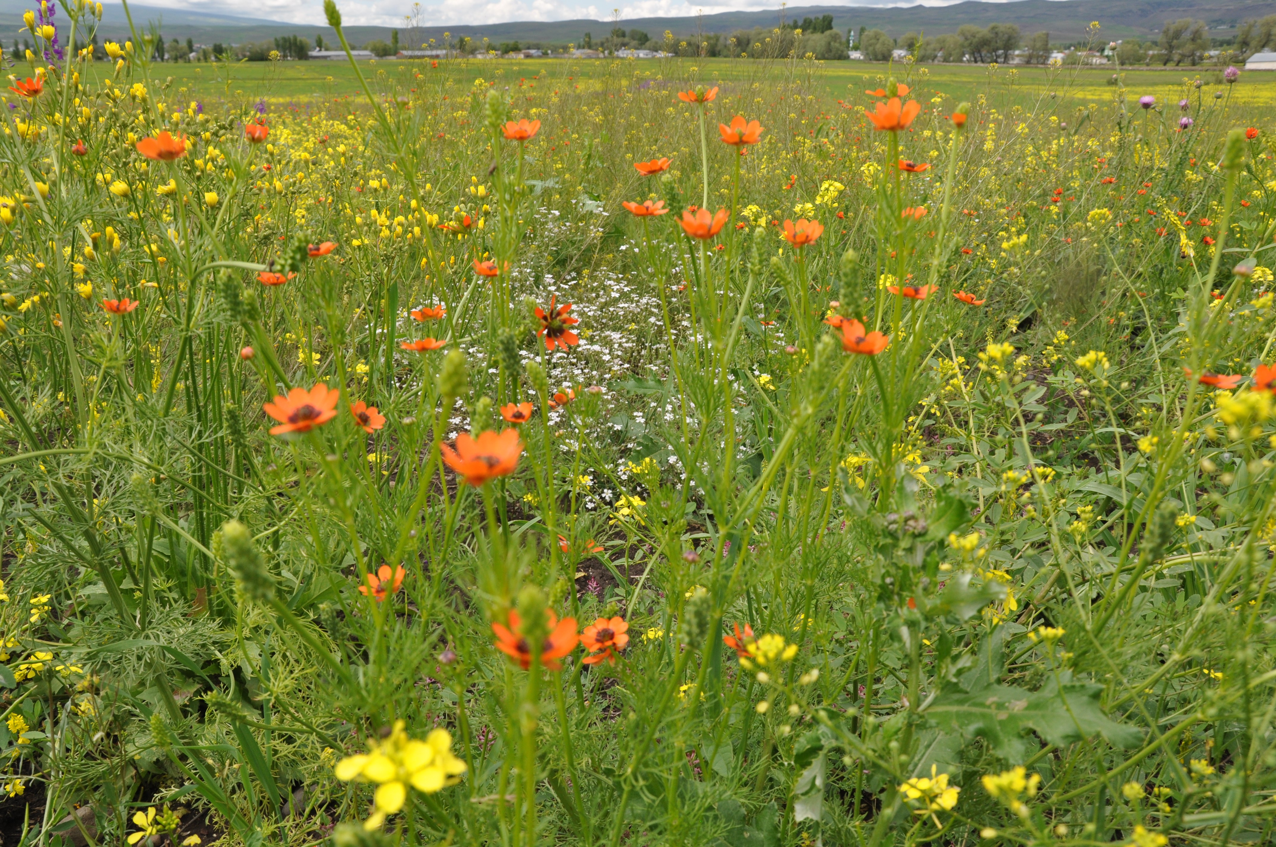 Tarlalarda açan sarı, beyaz, kırmızı ve mor çiçekler, yeşilin tonlarıyla muhteşem bir uyum içinde göze çarpmaktadır.