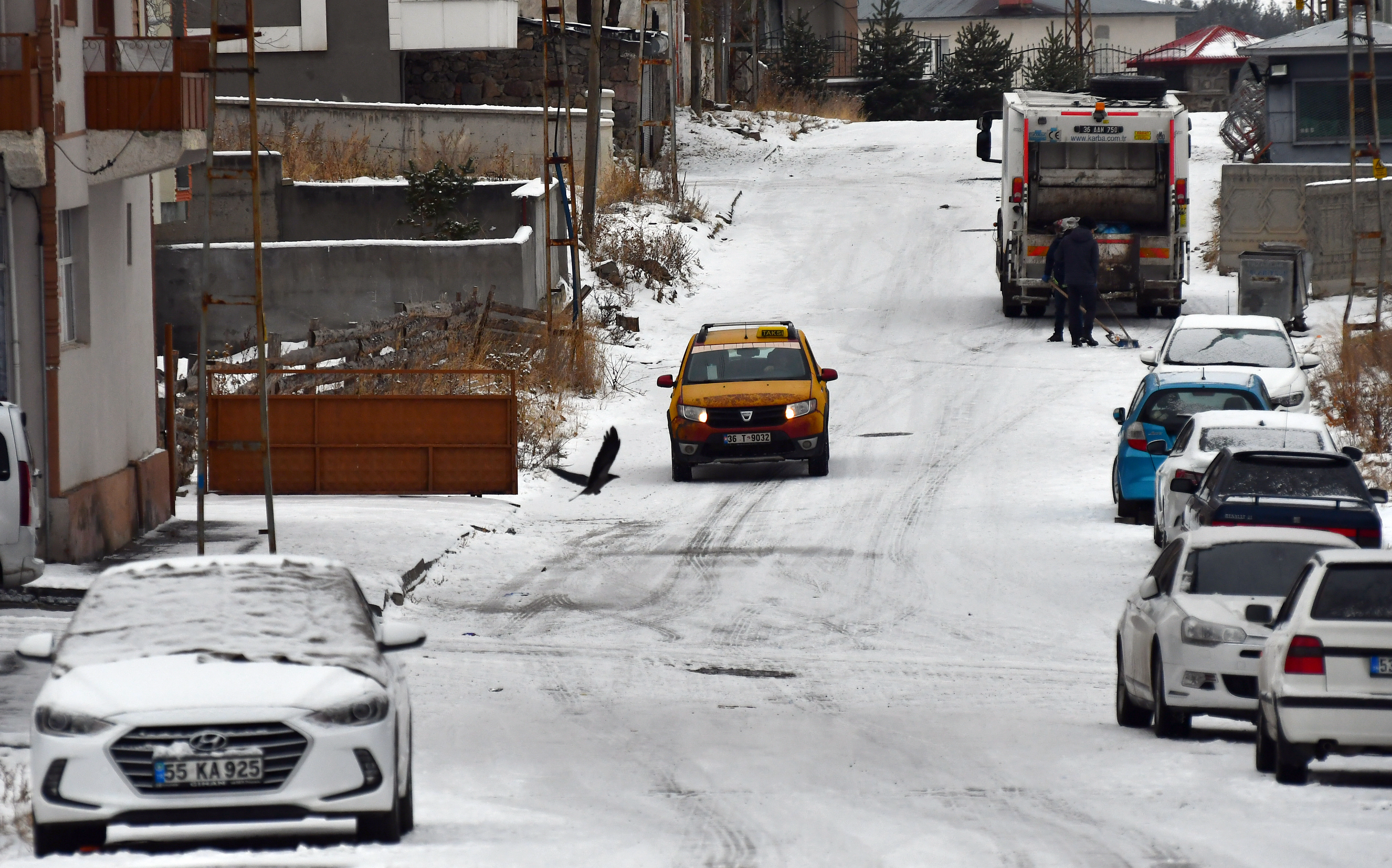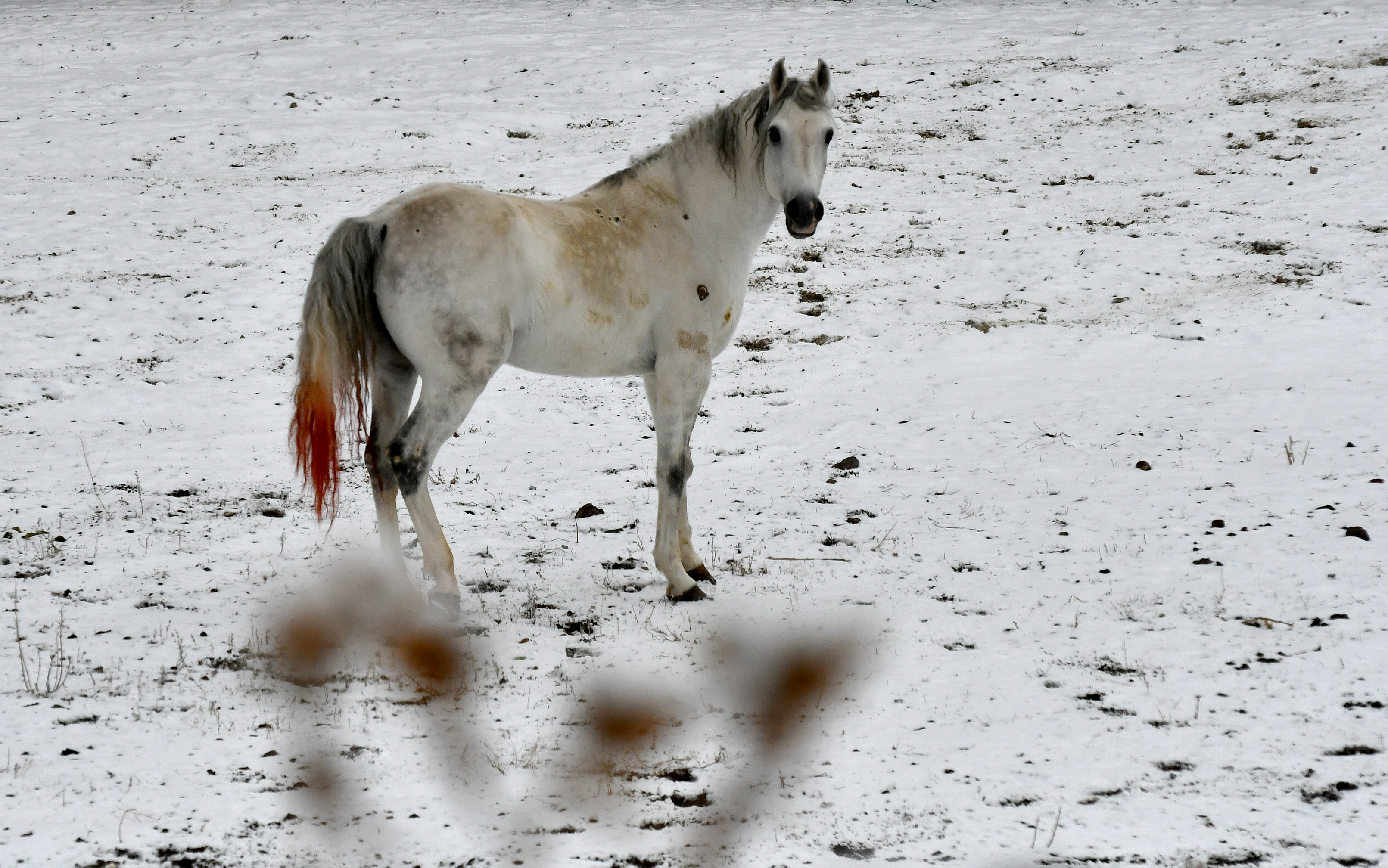 Kuşlar bitki tomurcuklarında yiyecek aradı.
