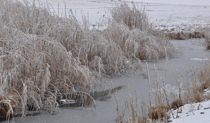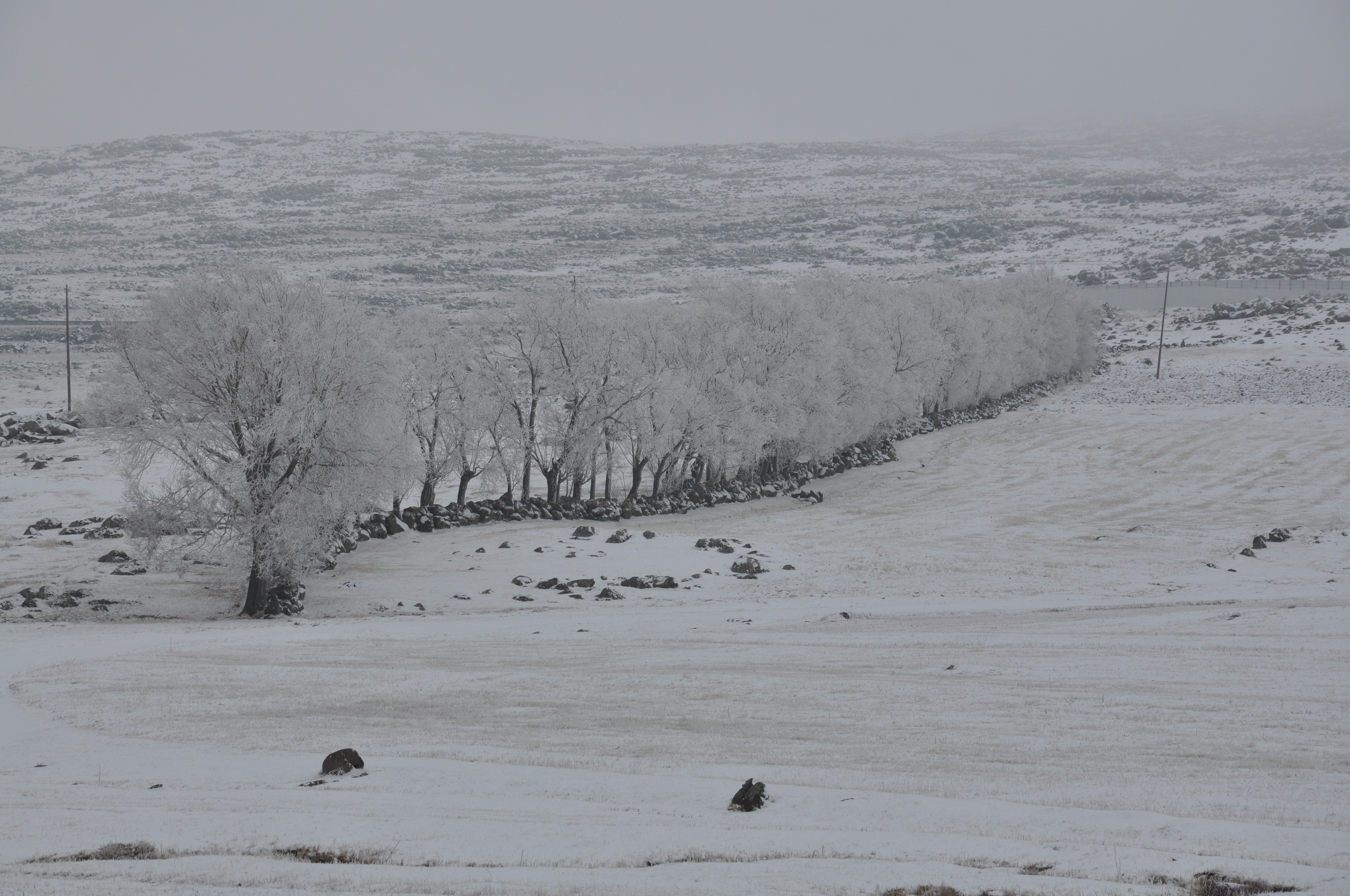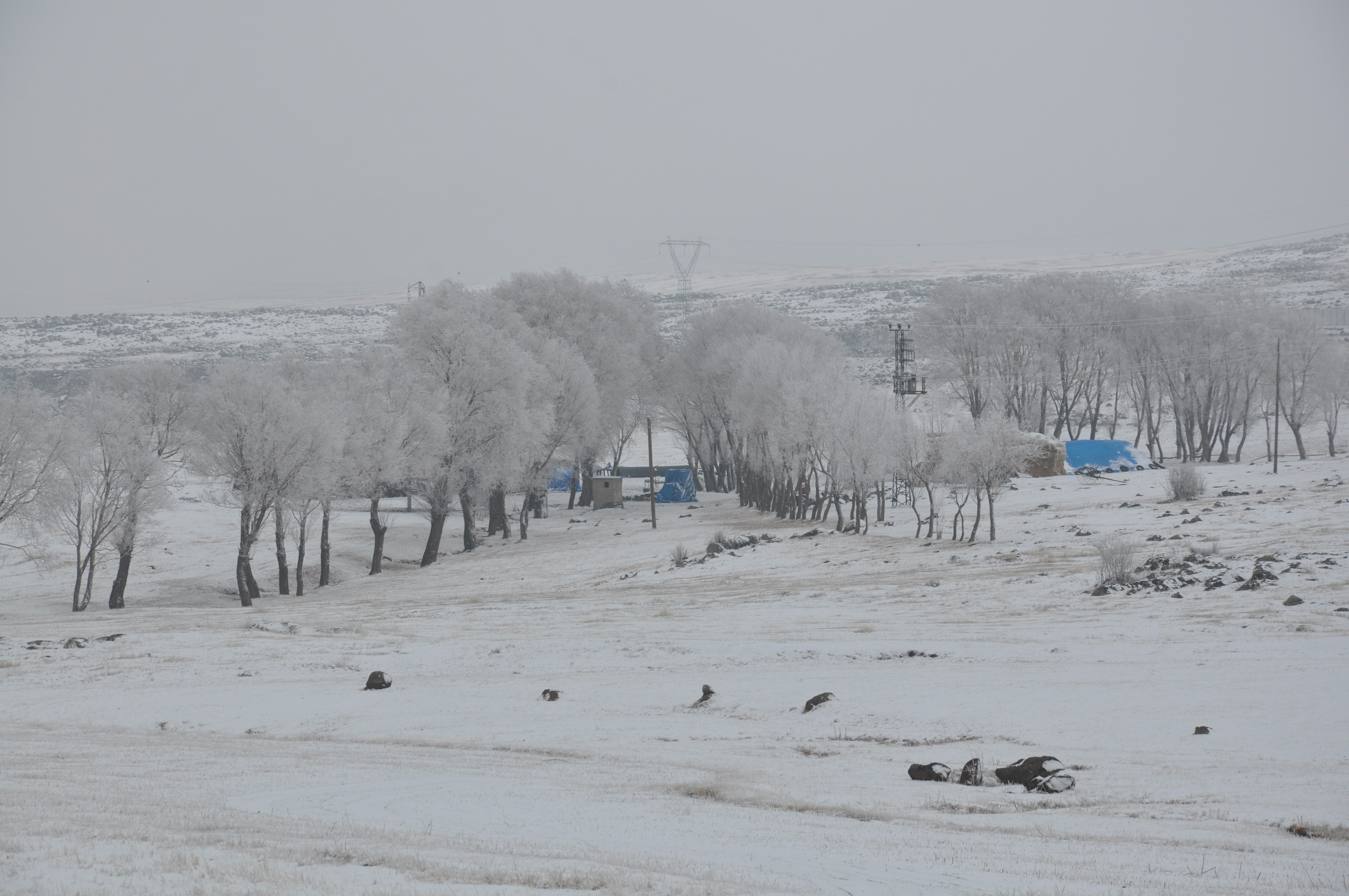 Kars’ta son günlerde etkili olan kar yağışı, soğuk hava ve sis hayatı olumsuz etkilemeye devam ediyor. Hava sıcaklığının yüksek kesimlerde eksi 10 dereceye düştüğü kentte Arpaçay ilçesine bağlı Taşbaşı köyü sınırlarında bulunan Lavaşın Gölü kısmen donarken, sis ve soğuktan ağaçlar kırağı tuttu.