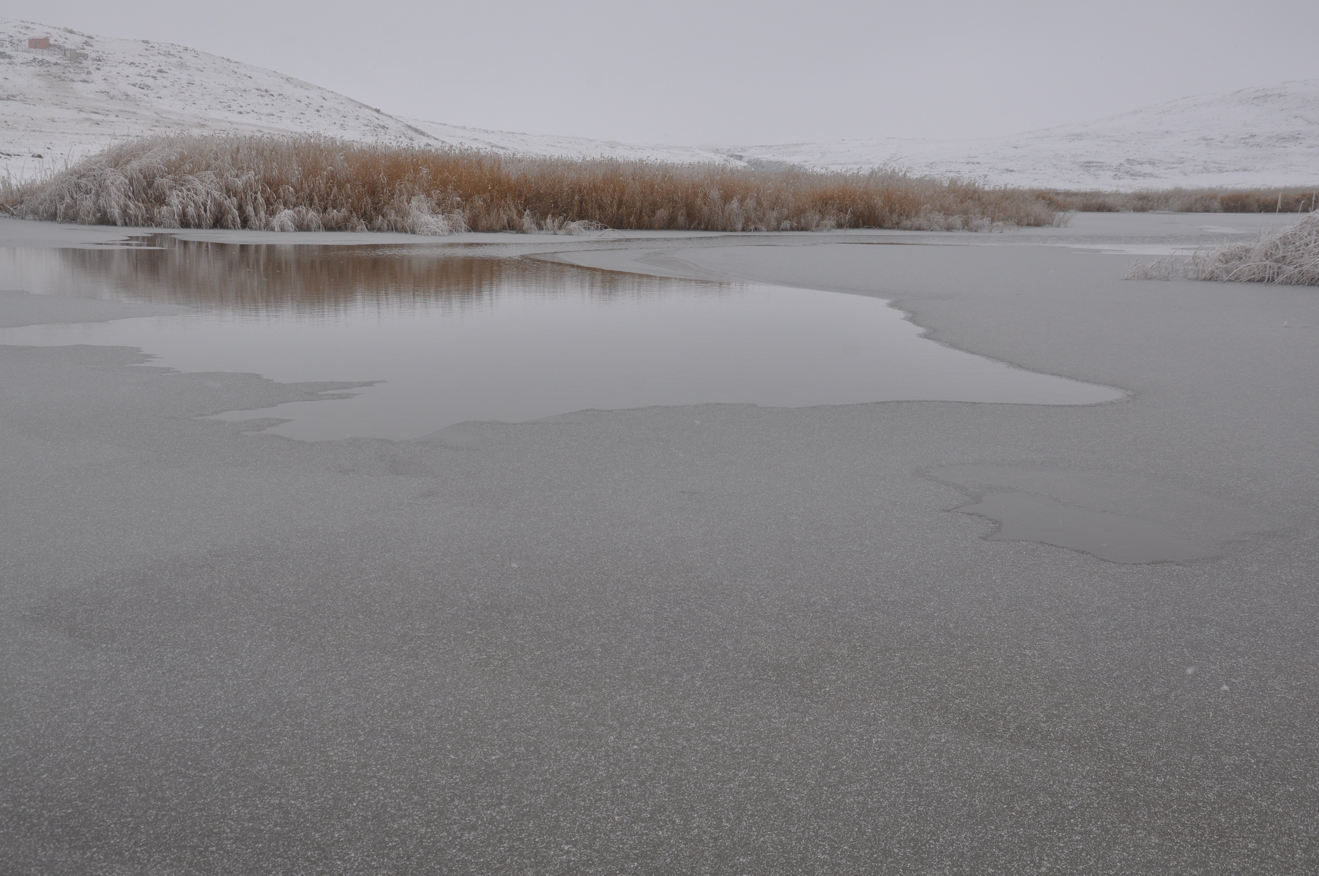 Kars’ta soğukların etkili olmaya başladığına ifade eden fotoğrafçı Serkan Erkoç, “Lavaşın Gölü’ndeyim, gece eksi 8 dereceyi gören soğuktan Lavaşın Gölü de nasibini aldı ve kısmen dondu. Ağaçlarda soğuktan kırağı var. Tabii bu her gün rastladığımız görüntü değil, fotoğraf çektim.