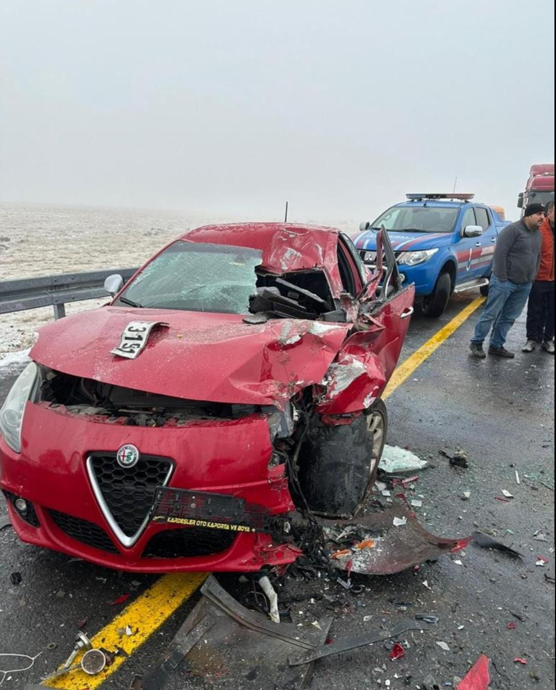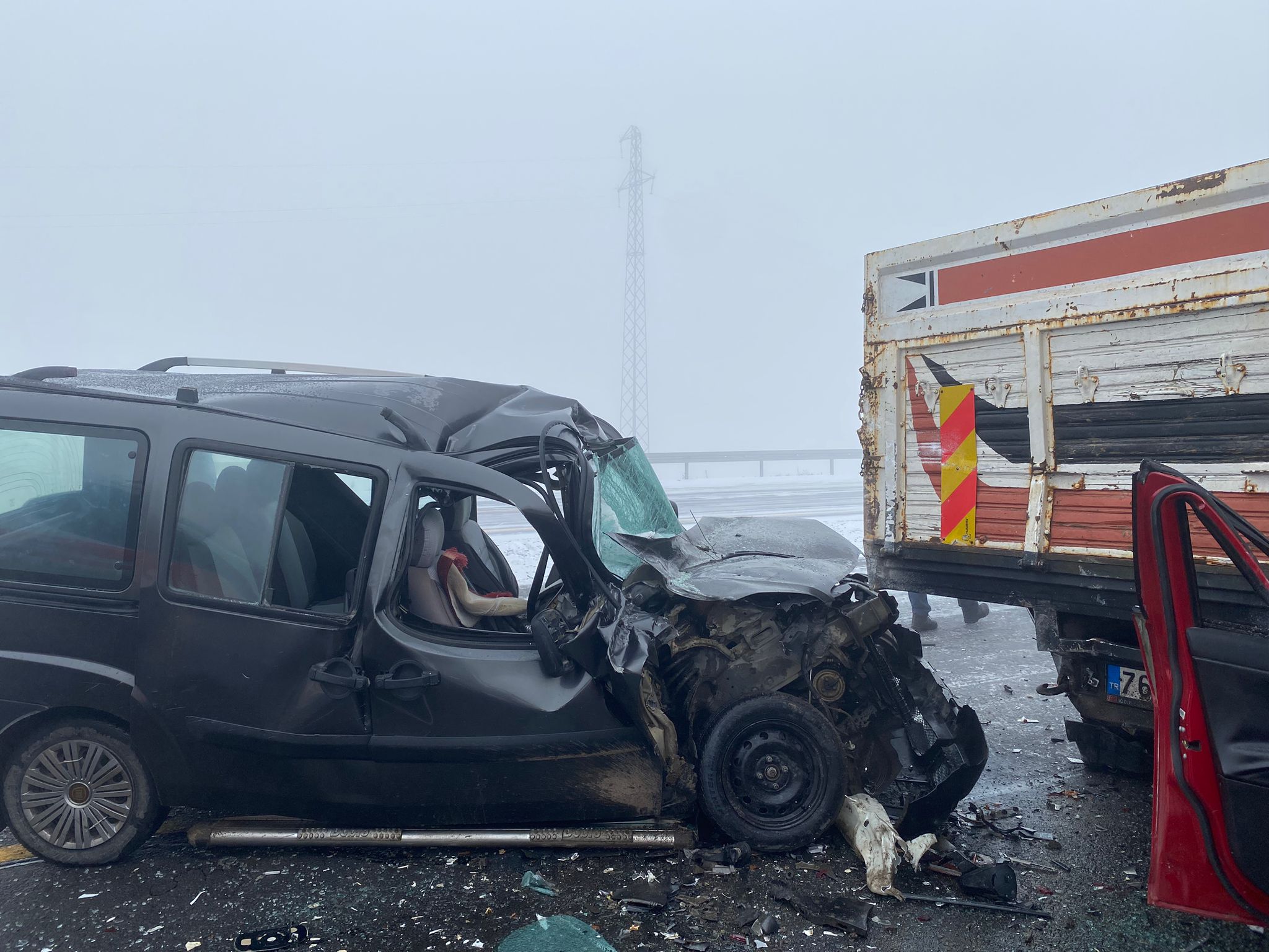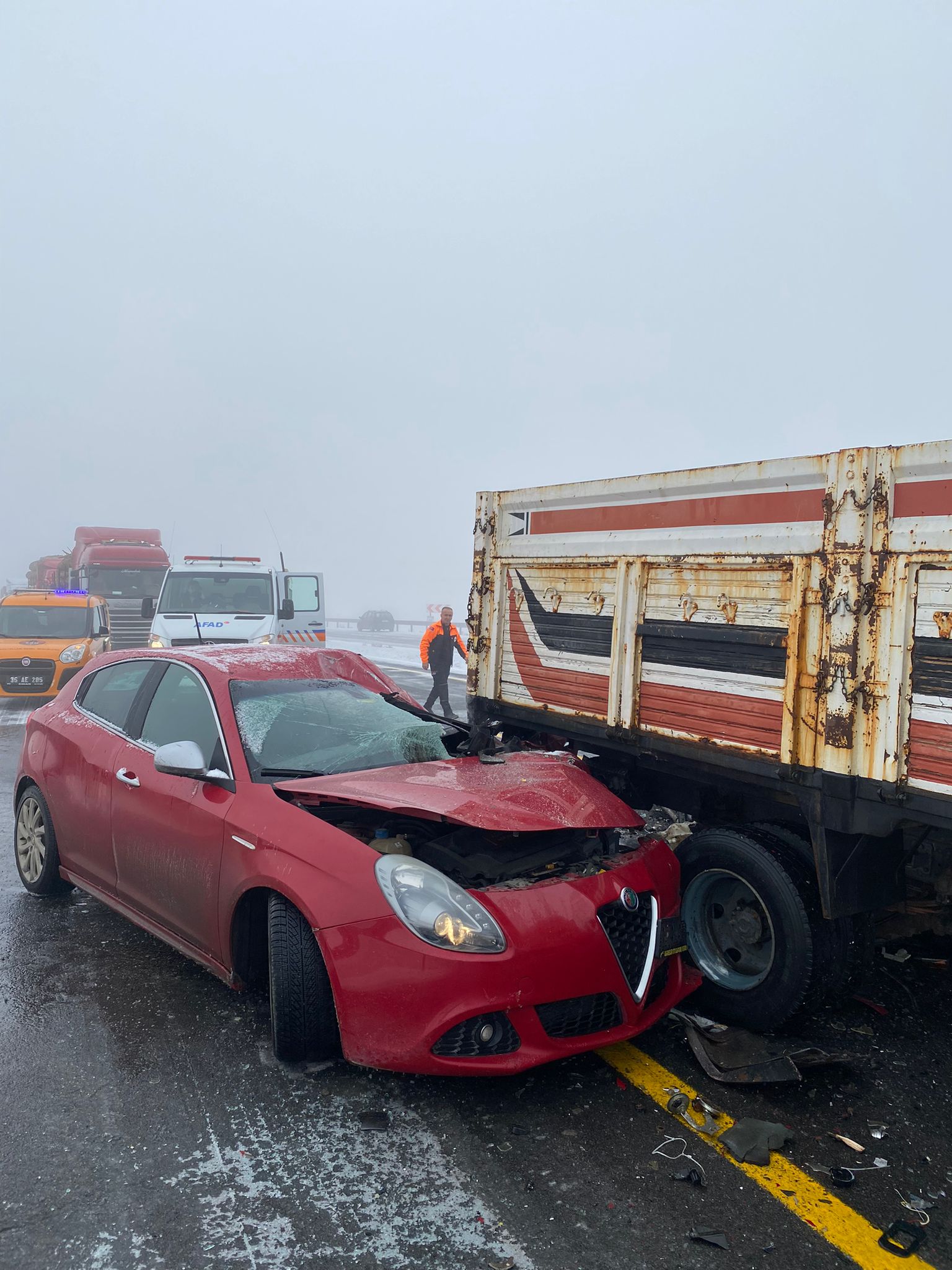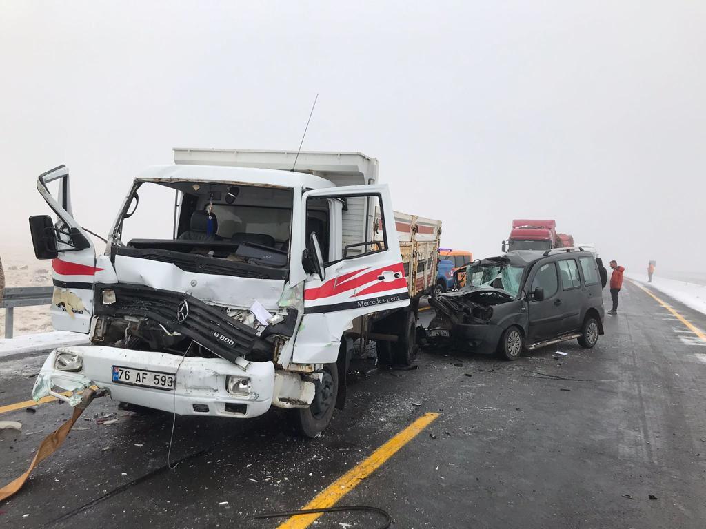 Sis ve buzlanmanın etkili olduğu Digor-Kars kara yolunun Tekneli köyü mevkisinde zincirleme trafik kazası meydana geldi.