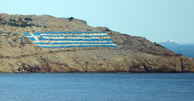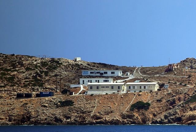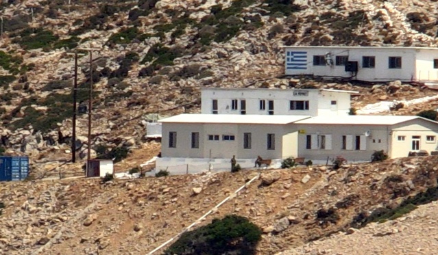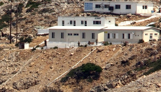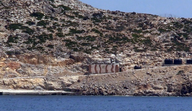 Keçi Adası'ndaki Yunan askerleri ve adaya yerleştirilen ağır silahlar