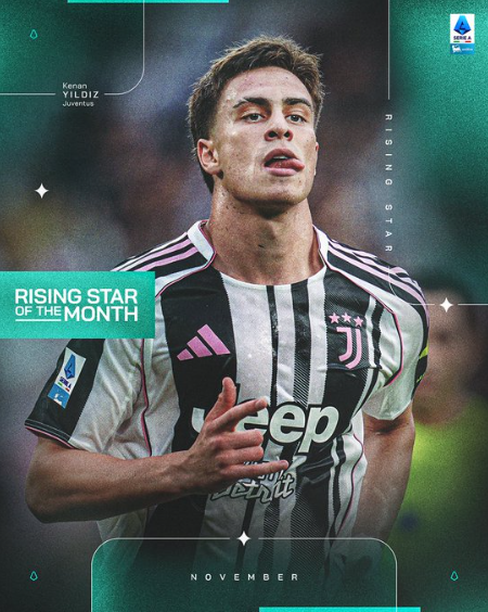 Ligin X hesabından bir fotoğrafı paylaşılan Kenan Yıldız'ı öven açıklamaların yer aldığı bir de video yayımlandı. Video'da, "Kenan Yıldız Kasım ayının 'Yükselen Yıldızı' seçildi. Juventus'un 10 numarası bu ay herkesi inanılmaz yeteneği, olağanüstü zirvedeki performansı ve tabi ki golleriyle afallattı. Acaba gelecek ay da 23 oyuncu arasında yükselen yıldız olarak yerini koruyabilecek mi?" ifadeleri yer aldı.