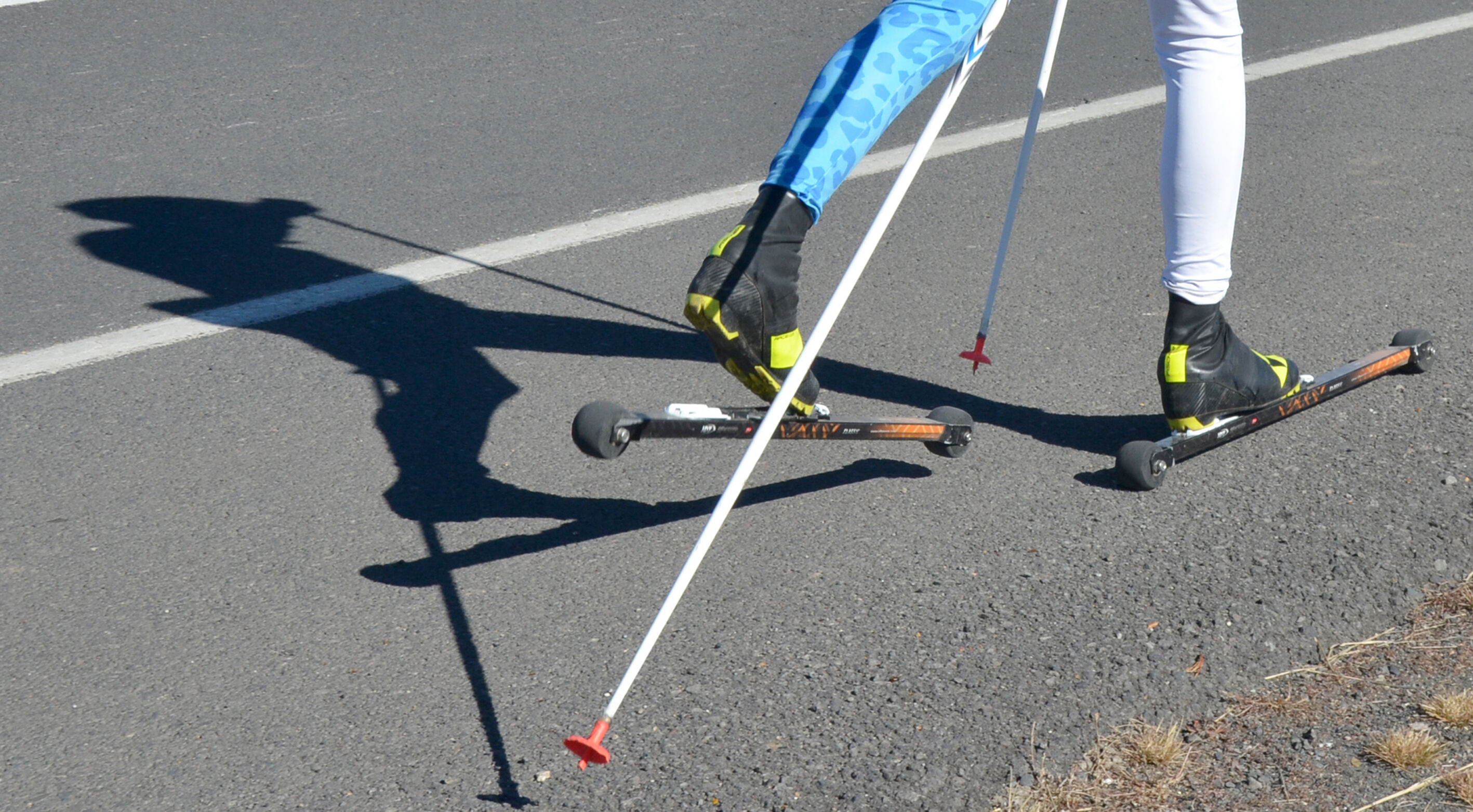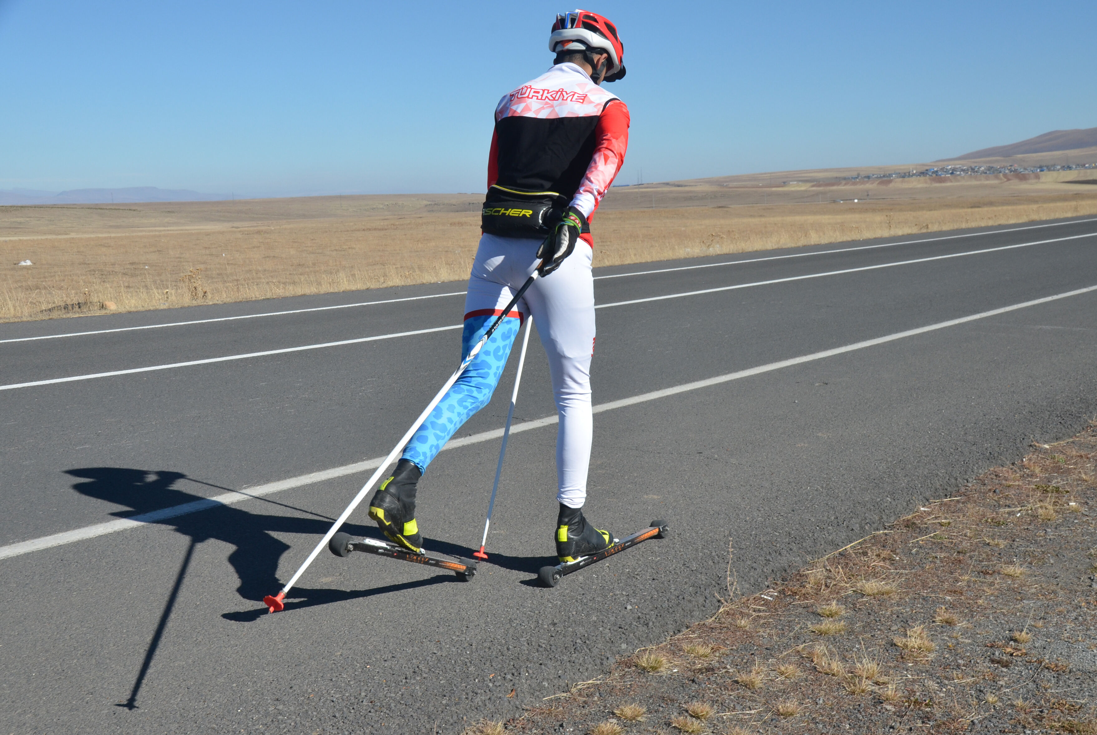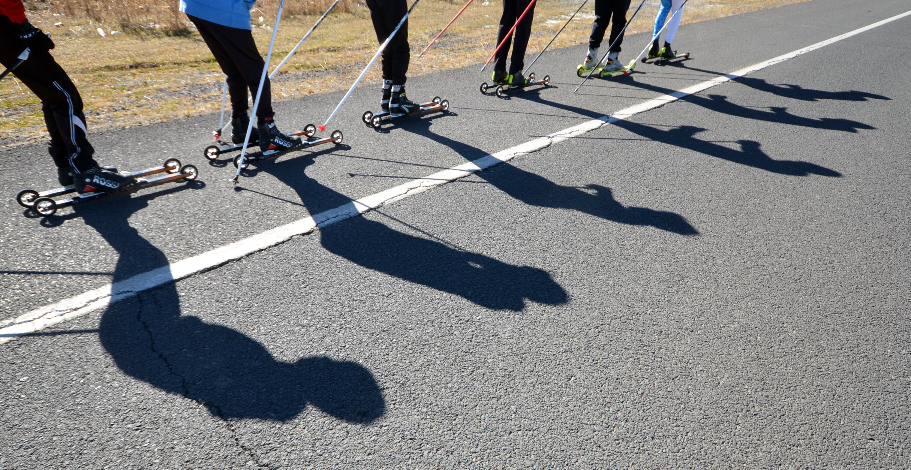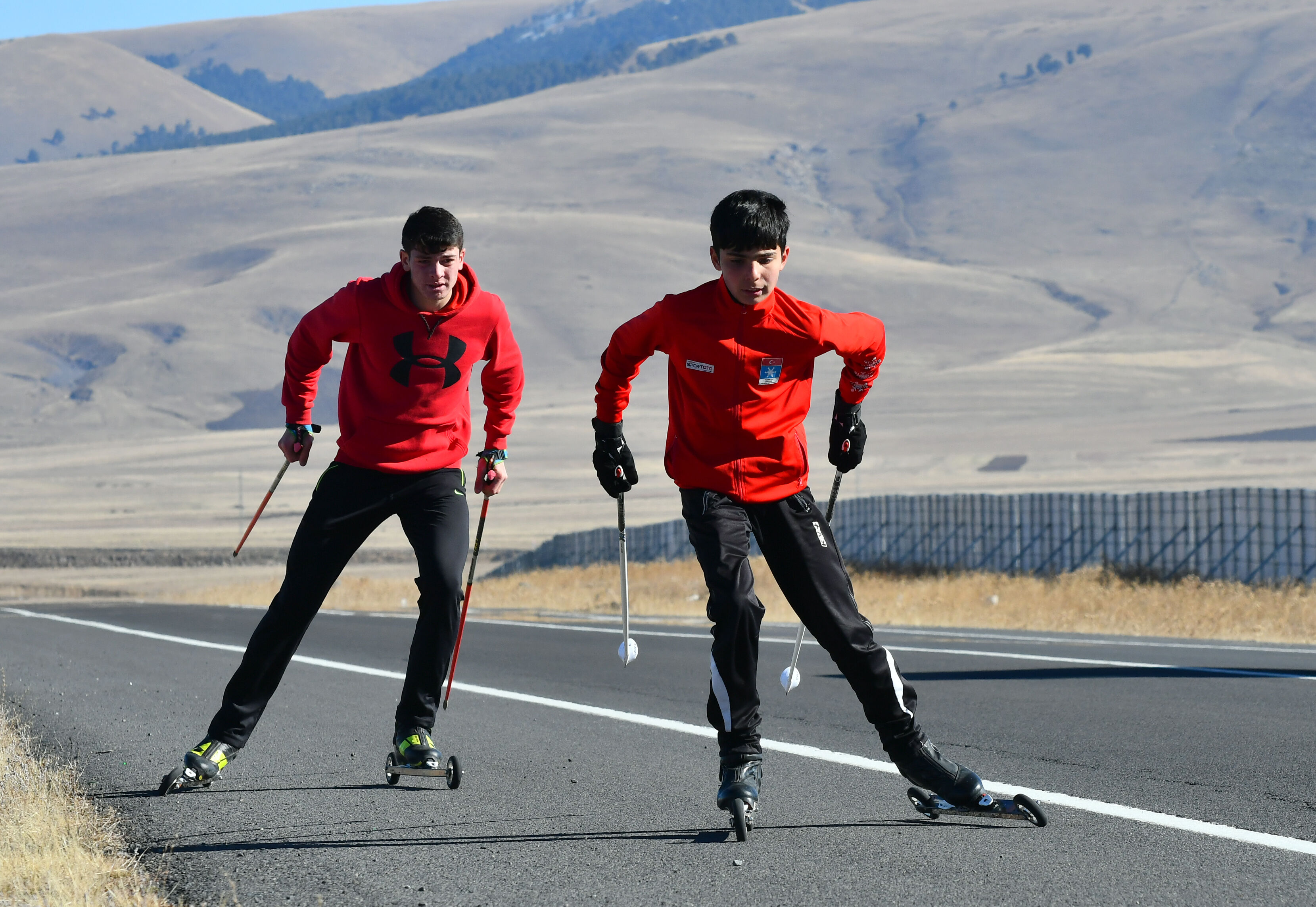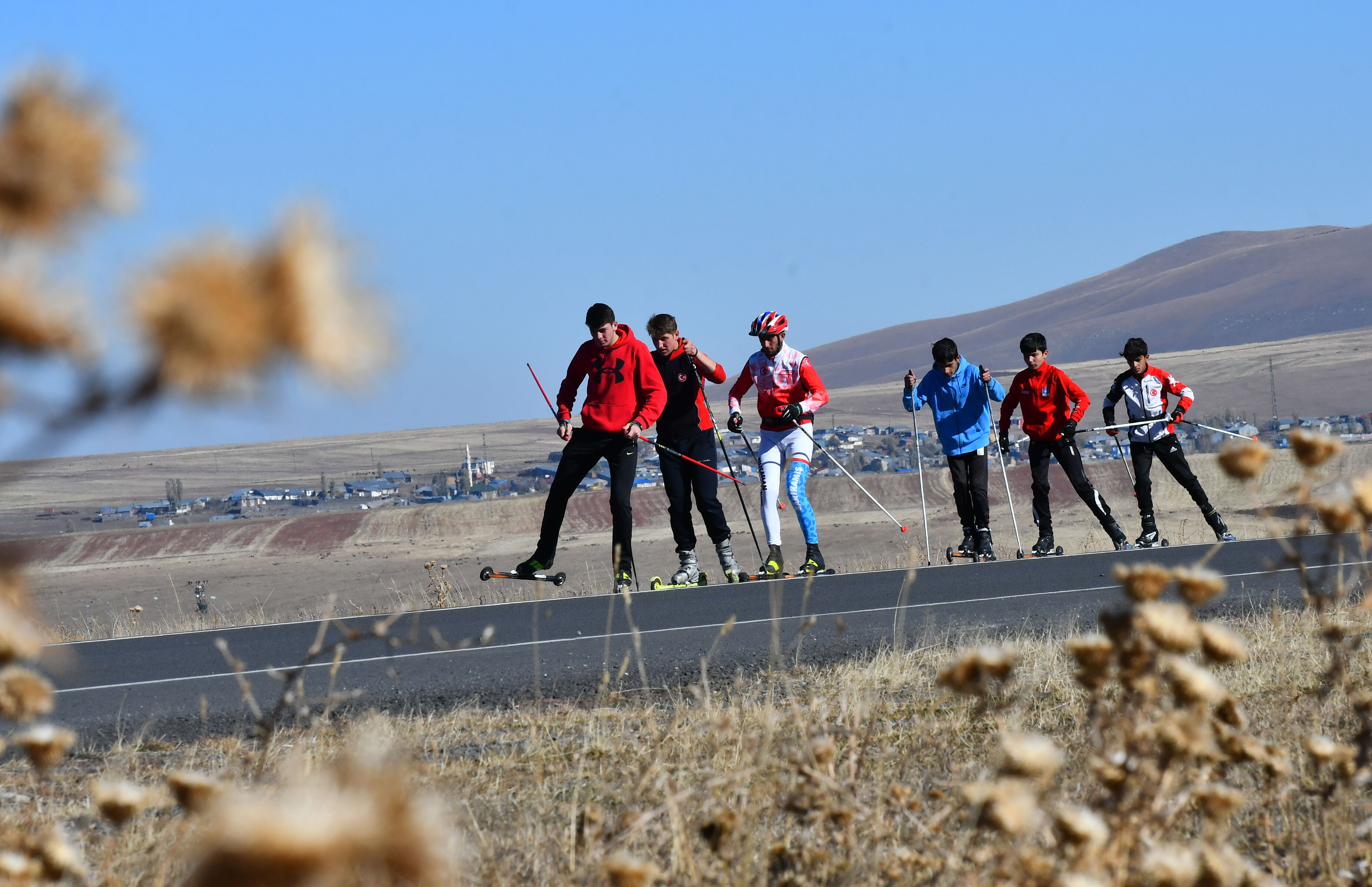 Karslı kayaklı koşu sporcuları, kışın düzenlenecek milli takım seçmelerine asfaltta antrenman yaparak hazırlanıyor.