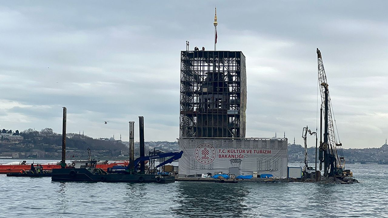 İstanbul’un incisi Kız Kulesi'nde Kültür ve Turizm Bakanlığı tarafından 2021 yılında başlatılan restorasyon çalışmaları hız kesmeden devam ediyor. Restorasyon çalışmaları süren Kız Kulesi’nin son hali havadan görüntülendi. Kurulan iskelede ekiplerin restorasyon çalışmalarına devam ettiği, çevresinde ise alt yapı çalışması için borular bulunduğu görüldü.