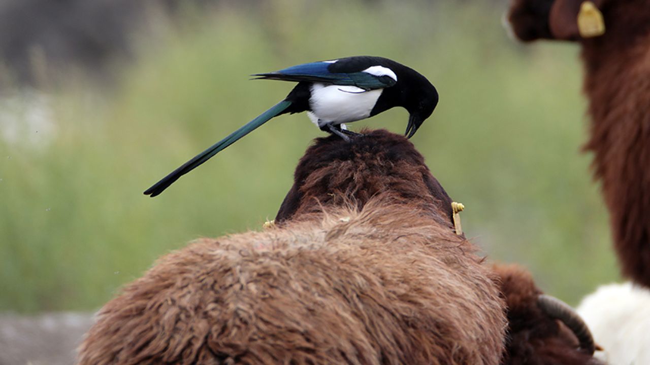 Özellikle sığırcık, küçük karga, leş kargası ve saksağanın koyunların üstündeki böcekleri yeme anı görüntülendi.