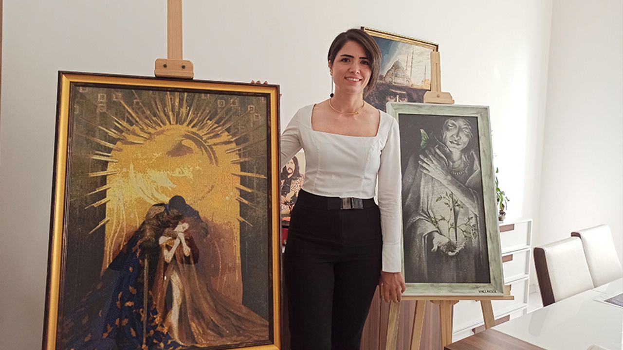 Minimum 30 bin, 70 bin ve üzeri olduğu da oluyor. Ebadına göre değişkenlik gösteriyor. Mozaik taşlarımız çok ufak. Oya boncuğu kadar. Ben bunları bir bir alıp doğru noktaya yapıştırma tekniği ile yapıştırıyorum. Ve sonucunda ortaya muhteşem bir eser çıkıyor. El emeği göz nuru dedikleri bu olsa gerek. Yaptığım hobiyi çok seviyorum ve ek gelir oldu bir yandan. İlerideki en büyük hayalim ise bir atölye sahibi olmak. Yaptığım bu işi dünyaya duyurmak istiyorum" ifadesini kullandı.