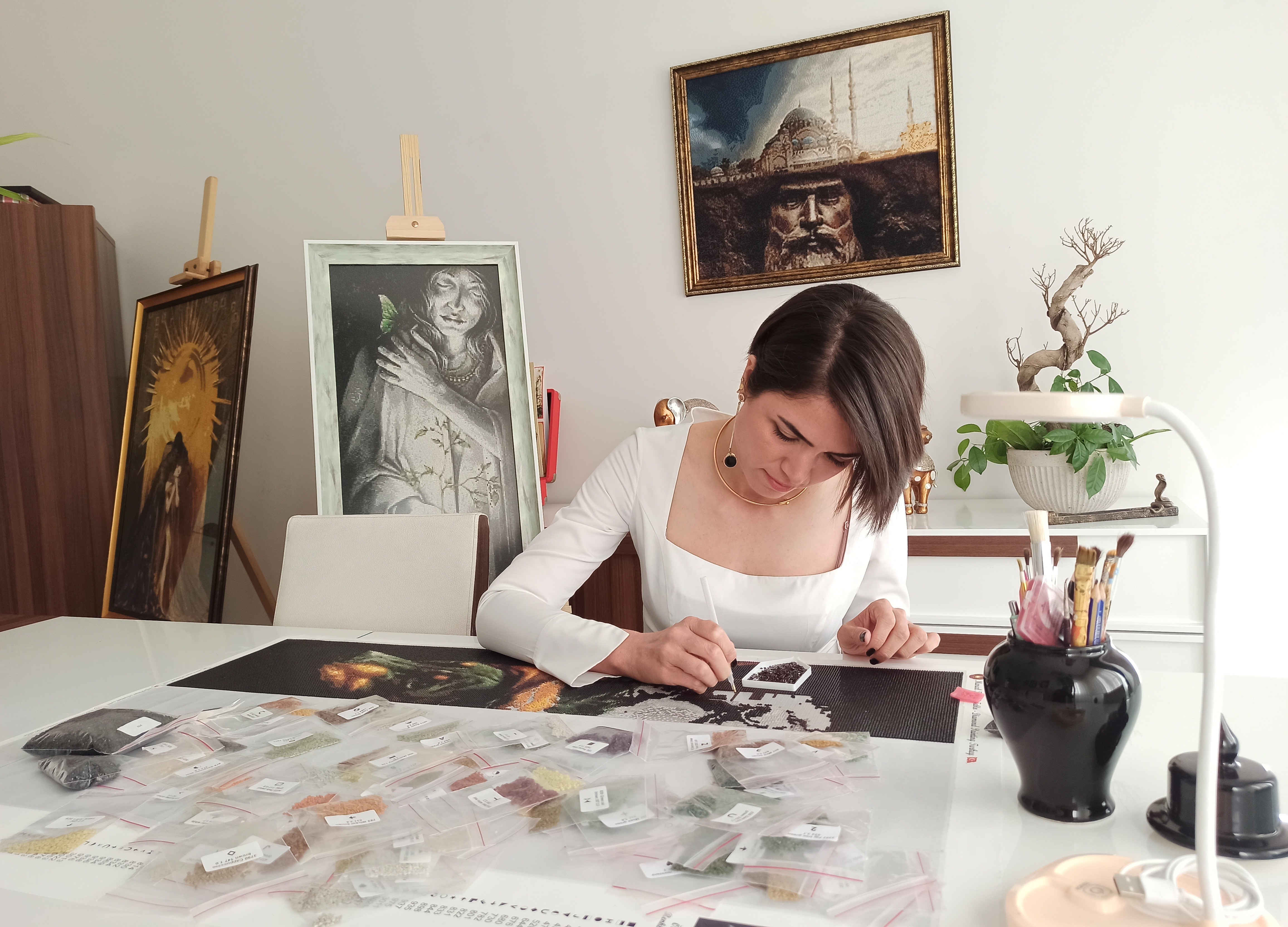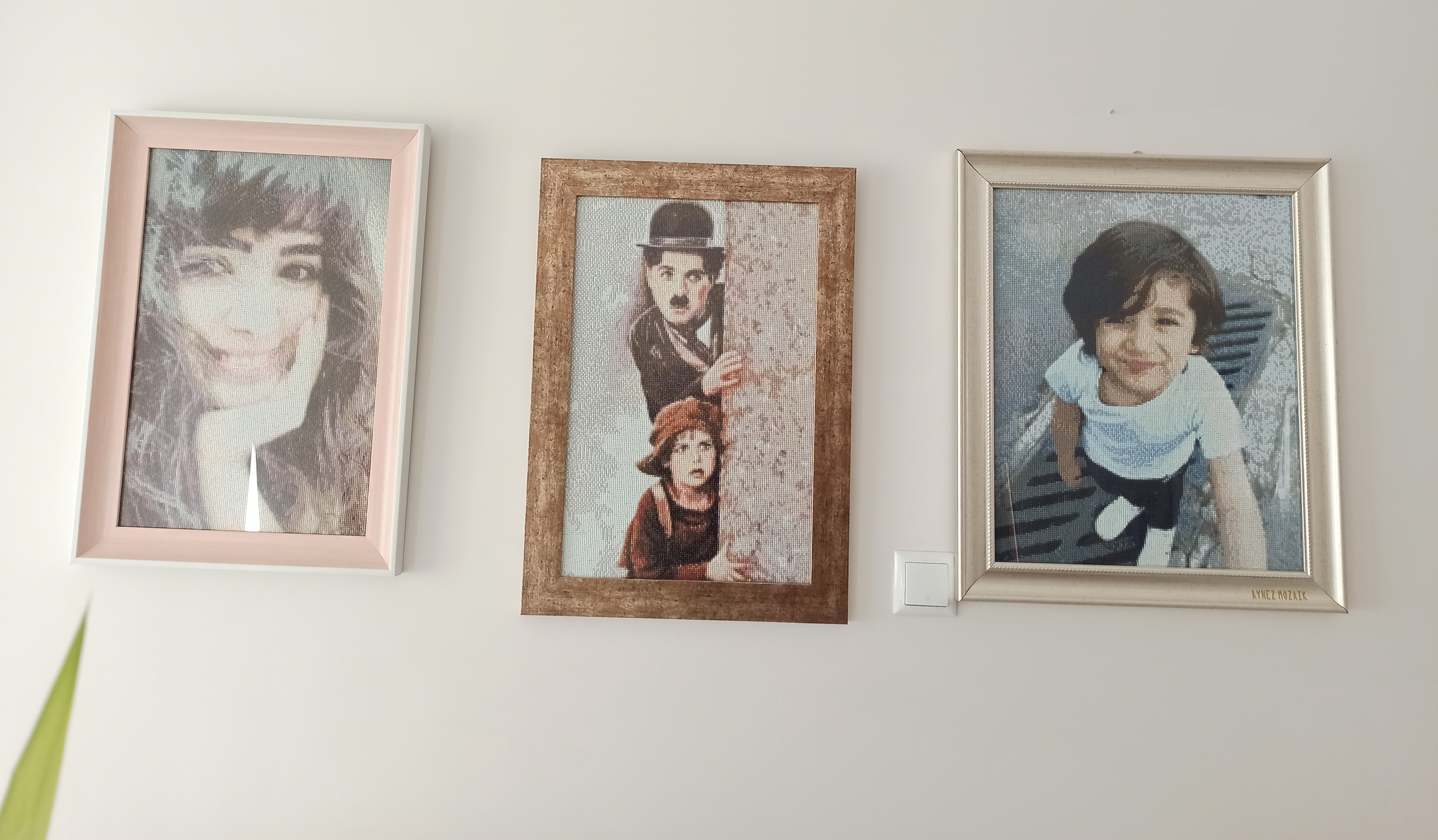Günün tüm stresini atıyorum. Enerji veriyor aslında. Emek isteyen bir uğraş. Akşam yemeğinden sonra oğlumla ödevlerini yaptıktan sonra, oturuyorum masaya ve elime kalemi aldıktan sonra o taşları yerleştirdikten sonra bir bakıyorum ki aradan 3 saat geçmiş. Her tablonun da ebatları var.
