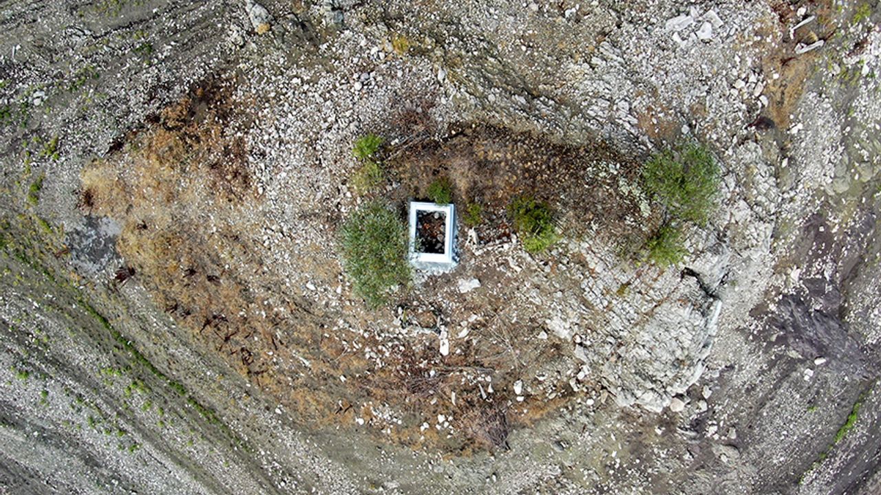 Babası ve annelerinin mezarı. Şimdi güzel karşıdan anne babalarının mezarlarını görebiliyorlar. Öncen mezarın olduğu belli değildi. Şimdi su çekildi, mezarın etrafını çevirdiler. Güzel bir görünüm oldu. Karşıdan anne babalarının mezarını gösterebiliyorlar. Burada köyün yaklaşık 400 mezarı vardı. Şimdi tepenin üzerindekiler belirgin. Suyun içinde kalan bazı mezarlarda görülüyor” ifadelerini kullandı.