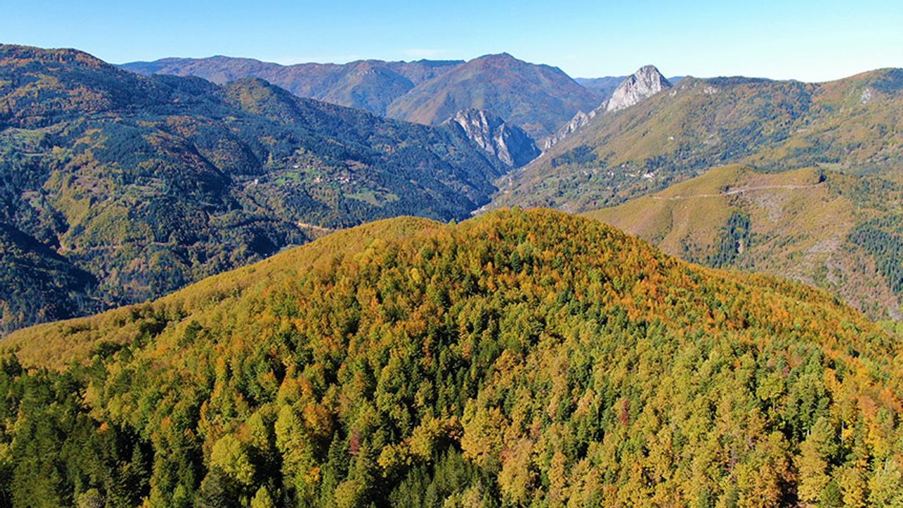 Sonbahar manzarası ile ziyaretçilerini kendisine hayran bırakan Küre Dağları havadan görüntülendi.