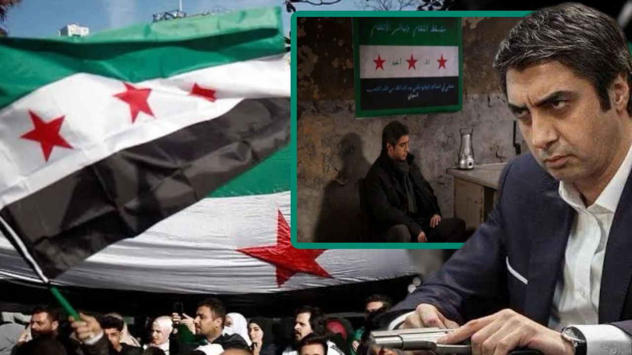 Arka planda ise yeşil, beyaz ve siyah renklerden oluşan, üç kırmızı yıldızlı “Suriye Devrimi Bayrağı” görülüyor. Bu bayrak, Heyet Tahrir el-Şam’ın (HTŞ) Suriye’deki yönetimi ele geçirmesiyle sembol haline gelen bir bayraktı. Ancak sahneyle ilgili o dönemde basına yansıyan haberlerde, Polat Alemdar’ın Suriye’ye giderek ÖSO’ya destek verdiği ifade edilmişti.