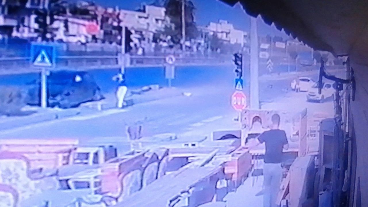 İş yerinin güvenlik kamerasına yansıyan kaza görüntülerinde, takla atmaktan son anda kurtulup refüjde kalan aracın sürücüsünün araçtan çıkma anı, yaşanan panik ve yardıma koşanlar yer aldı.