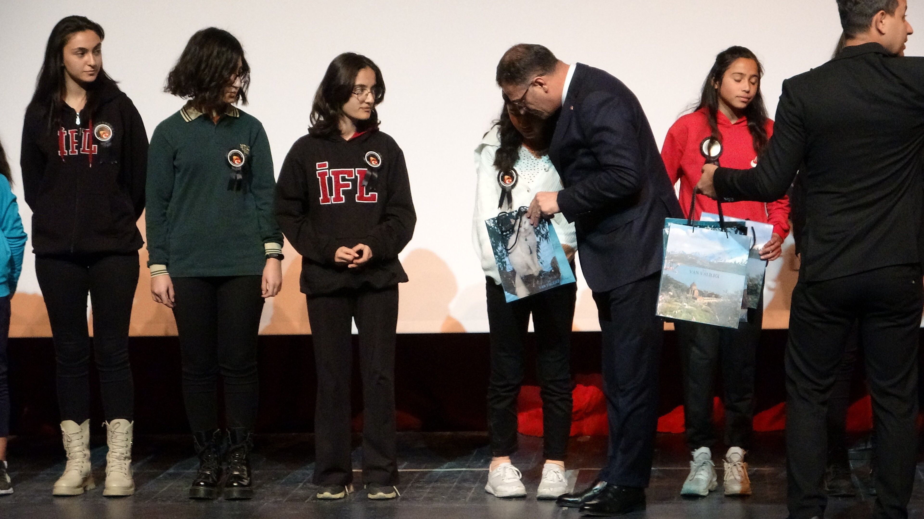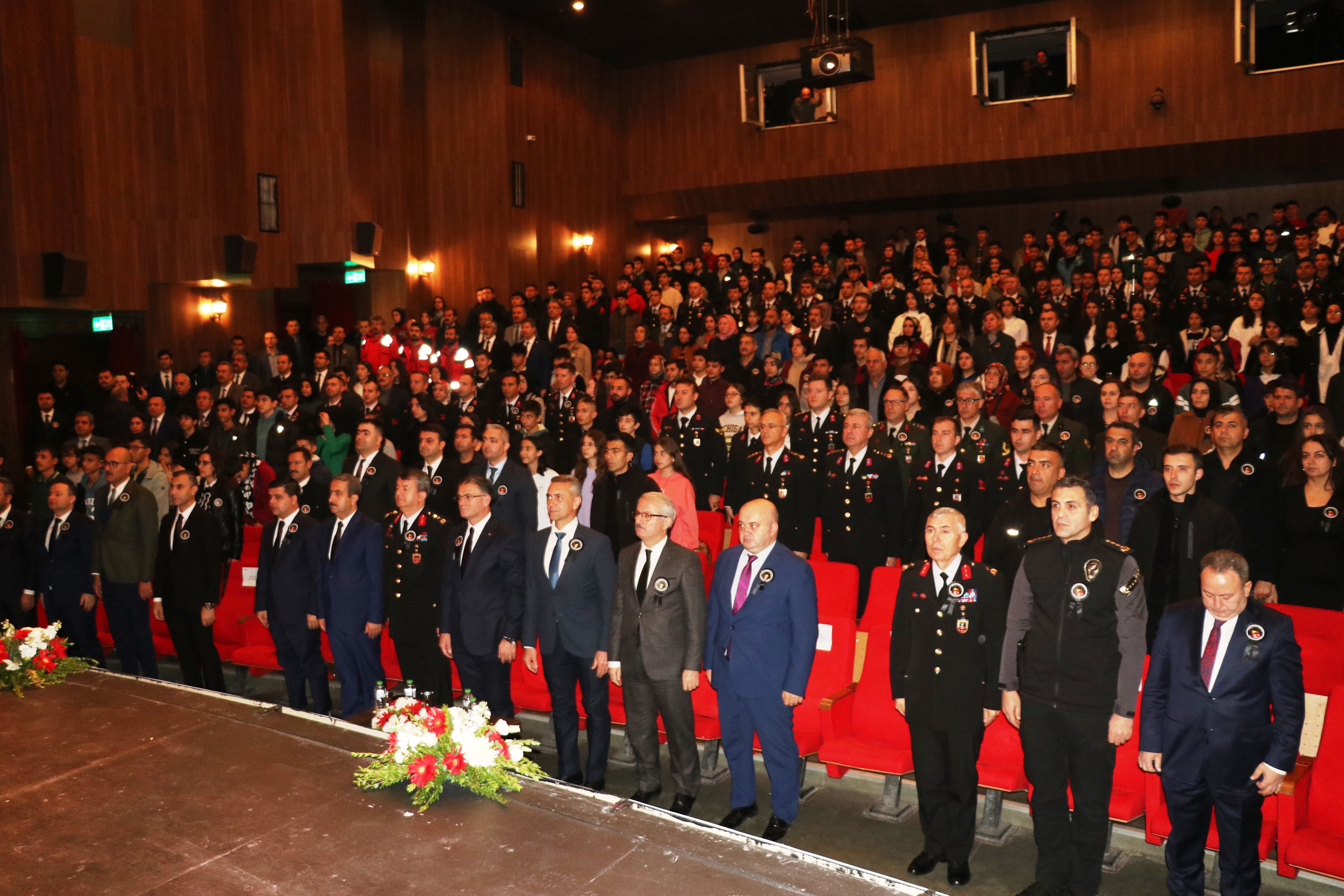Saat 09.05'te sirenlerin çalması, saygı duruşunda bulunulması ve İstiklal Marşı'nın okunmasının ardından program, Van Devlet Tiyatrosu salonunda devam etti.