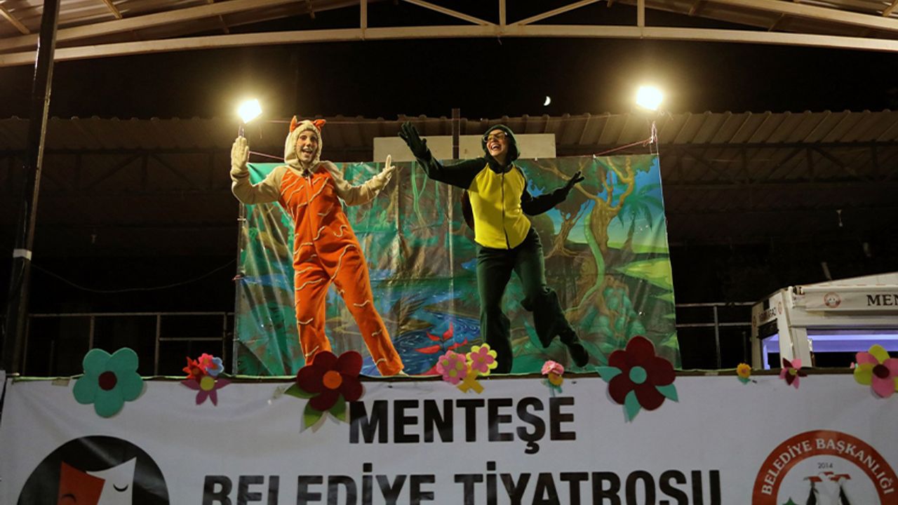 Neşeli Orman isimli müzikli çocuk tiyatrosunu aileleri ile birlikte ilgiyle izleyen her yaştan çocuklar, oyun sırasında çalan şarkılar ile de bol bol dans ederek gönüllerince eğlenirken; tiyatro gösterimi boyunca izleyicilere Menteşe Belediyesi ikram aracı ile meyve suyu ve kek ikram edildi.