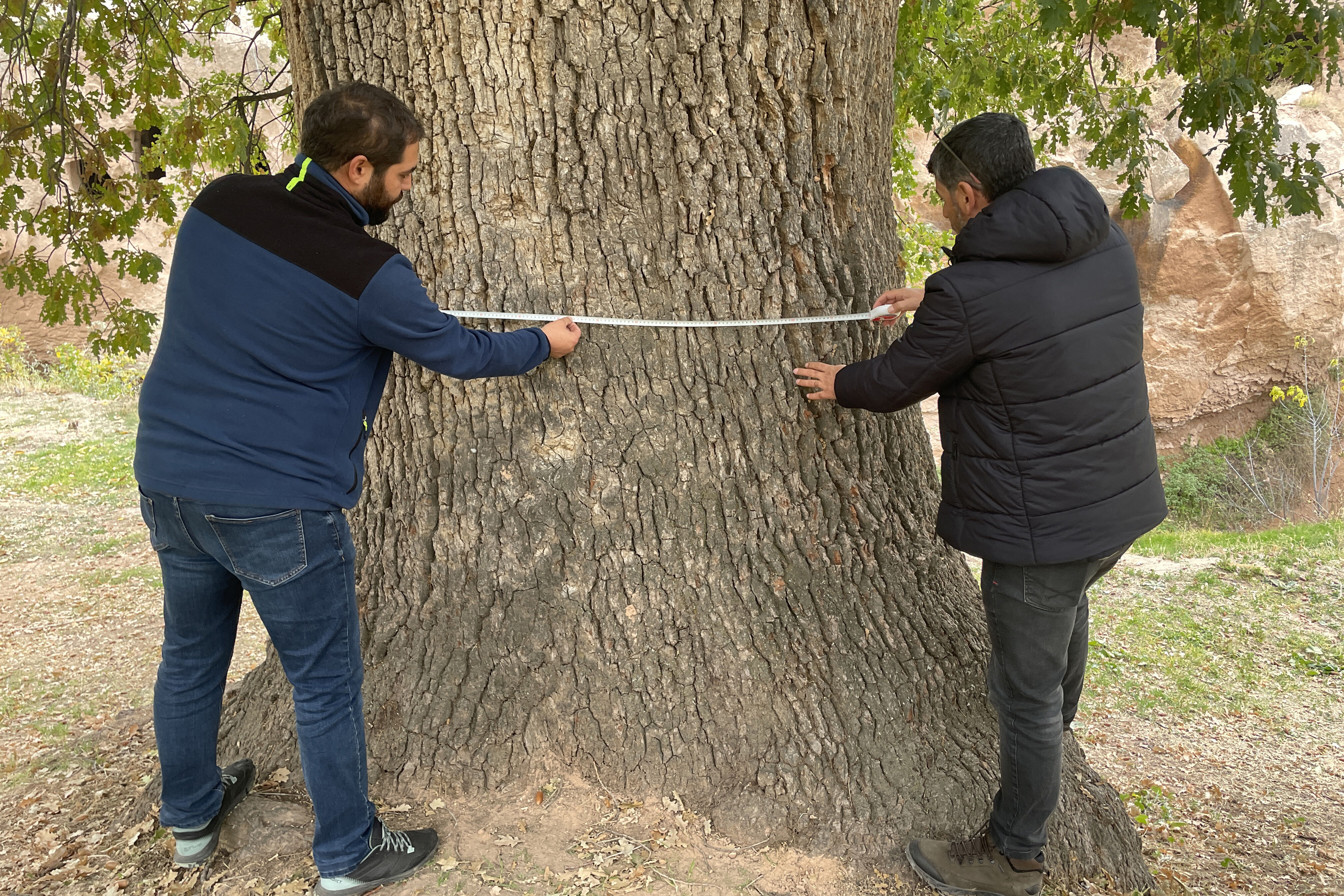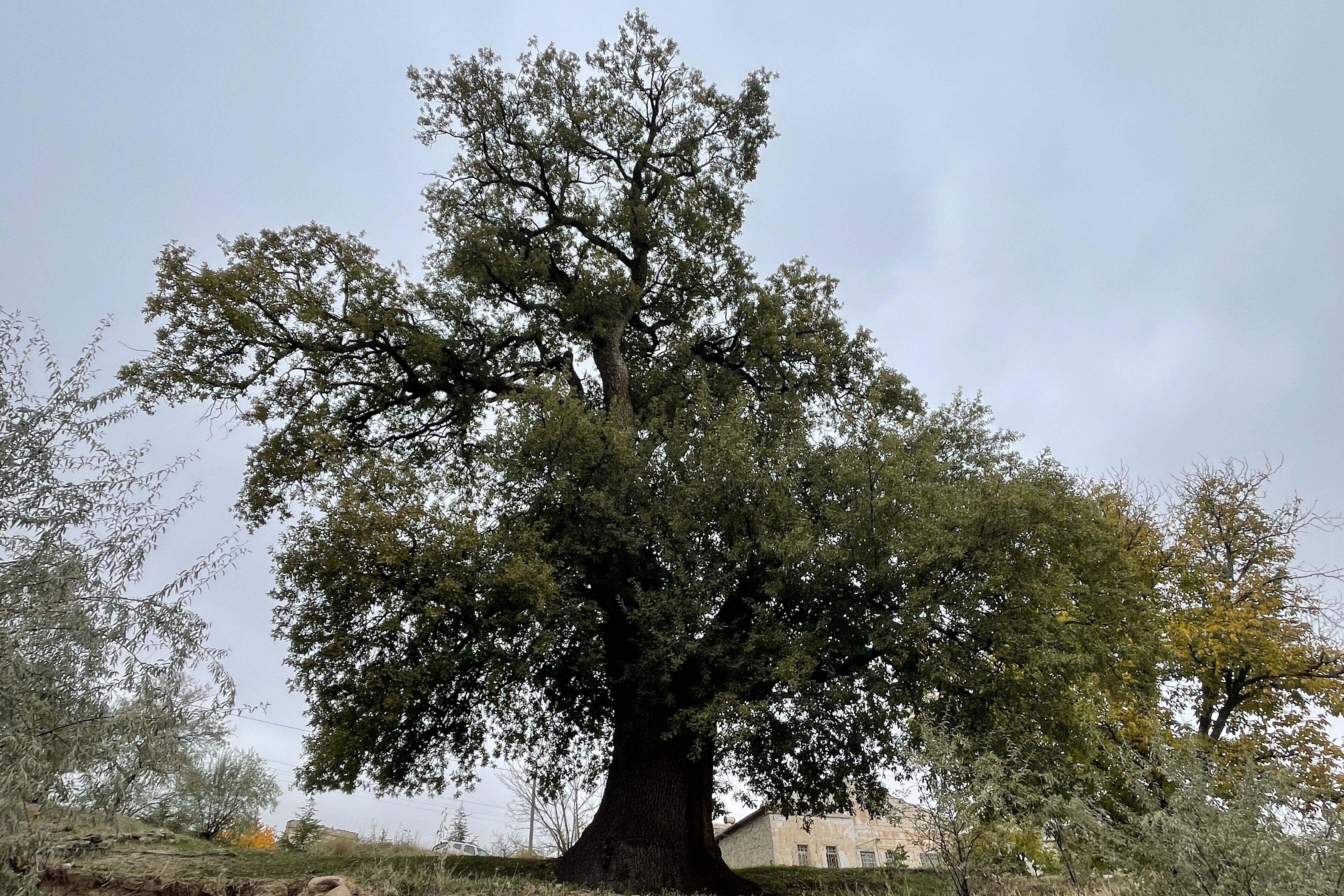Kayadan oyma tarihi yer altı şehrinin bulundu Ceneviz Vadisi'nin hemen yanı başında yer alan meşe, çevresindeki diğer ağaçlar arasında göze çarpıyor.