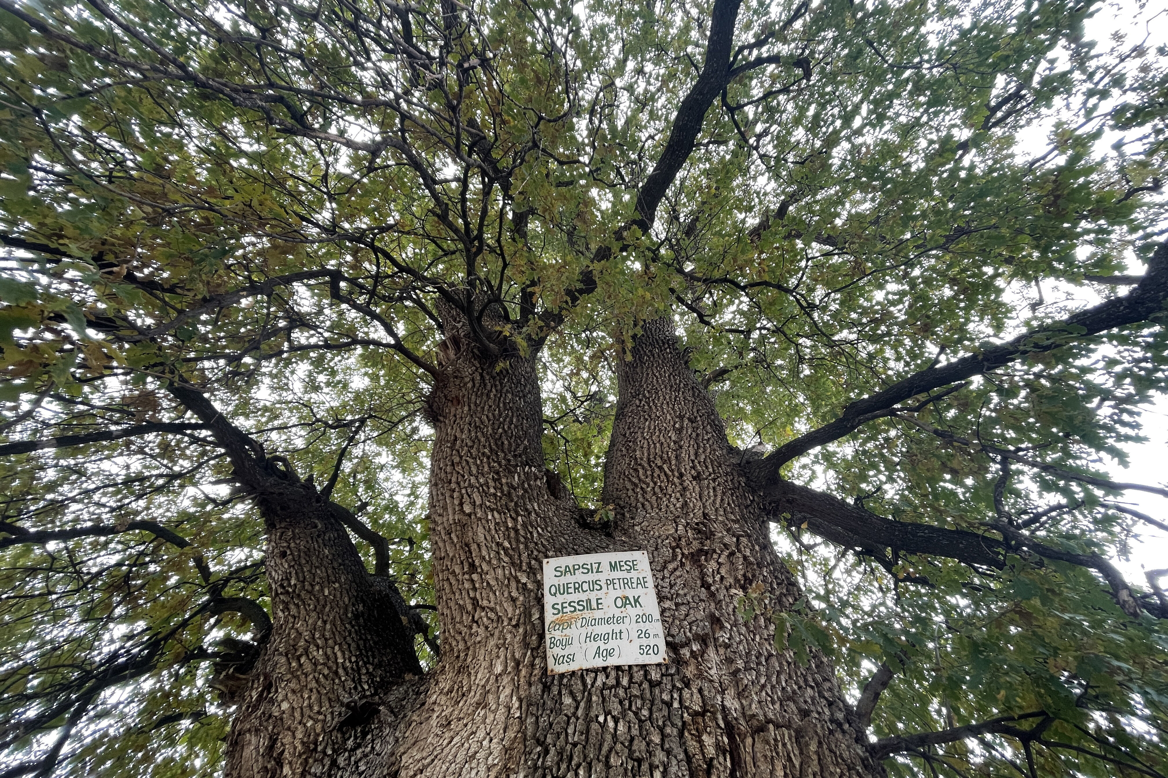 Nevşehir'in Avanos ilçesine bağlı Özkonak beldesinde bulunan ve Anıt Ağaç olarak tescillenen 530 yaşındaki sapsız meşe, geniş gövdesinin kabuklarında ve görkemli dallarında asırların izini taşımaya devam ediyor.