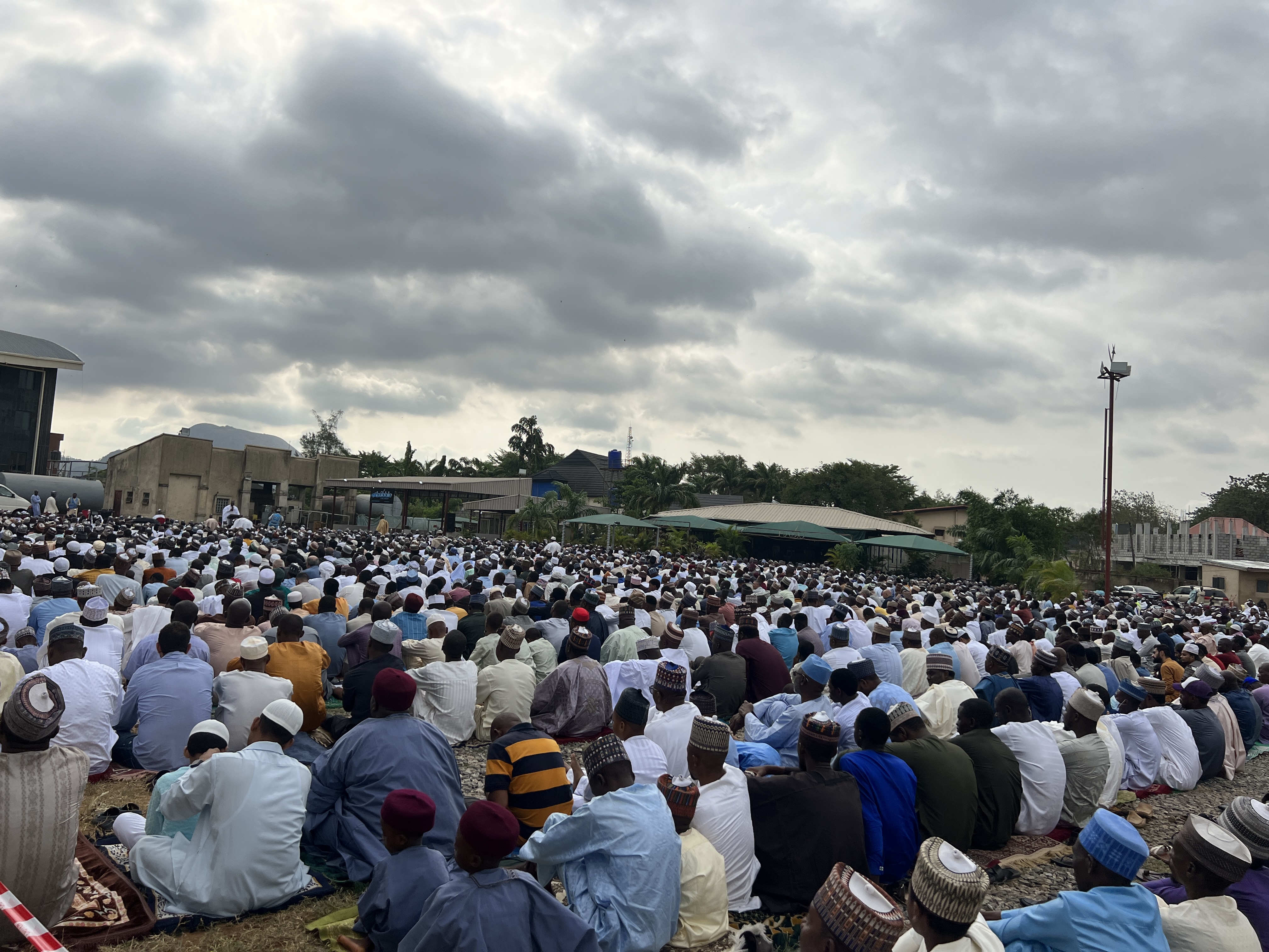 Afrika'nın en fazla Müslüman nüfusa sahip ülkesi Nijerya'da, Ramazan Bayramı namazı eda edildi. Başkent Abuja'da yaşayan binlerce Müslüman, bayram namazı için açık alanda saf tuttu. (AA)